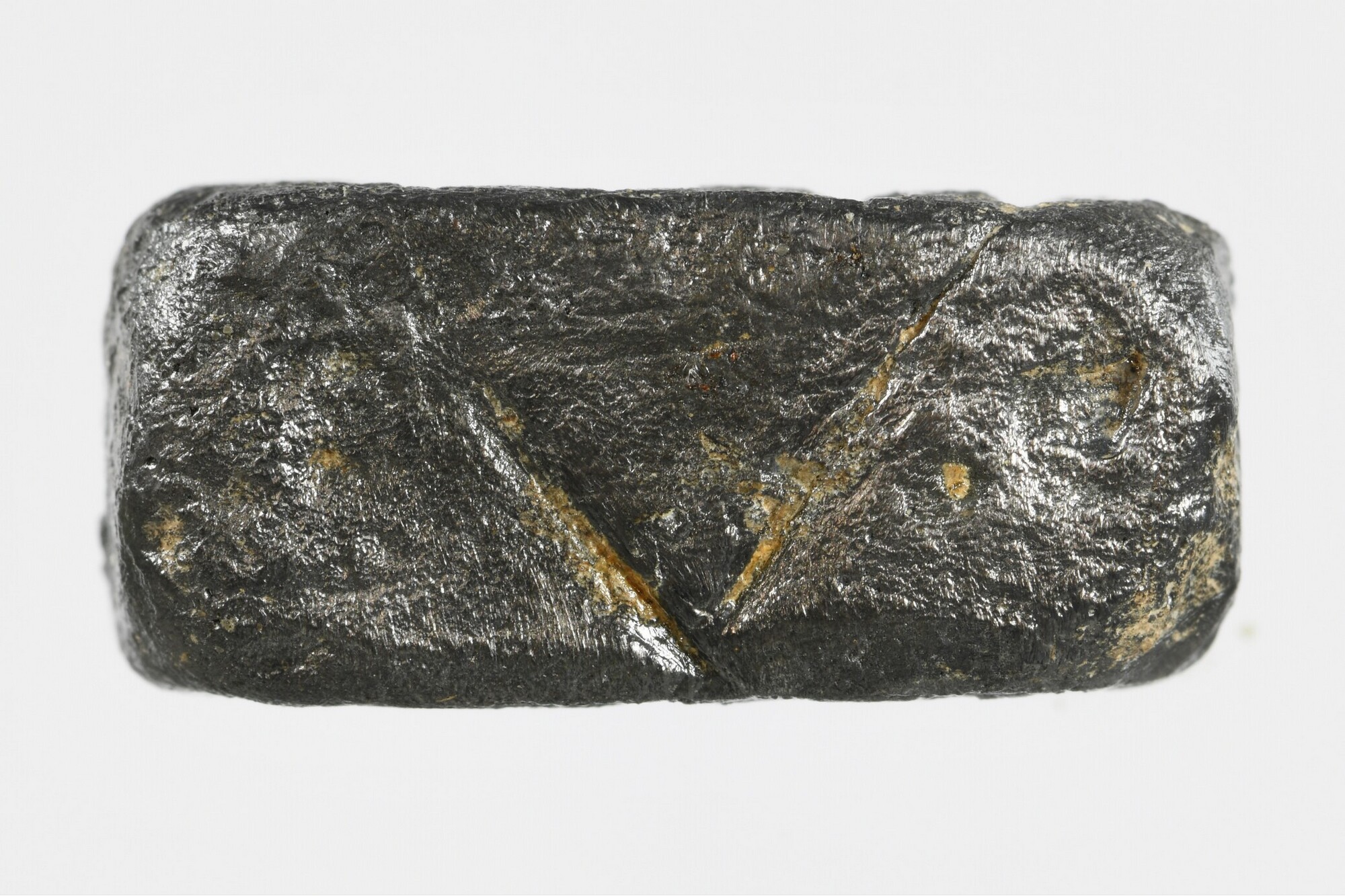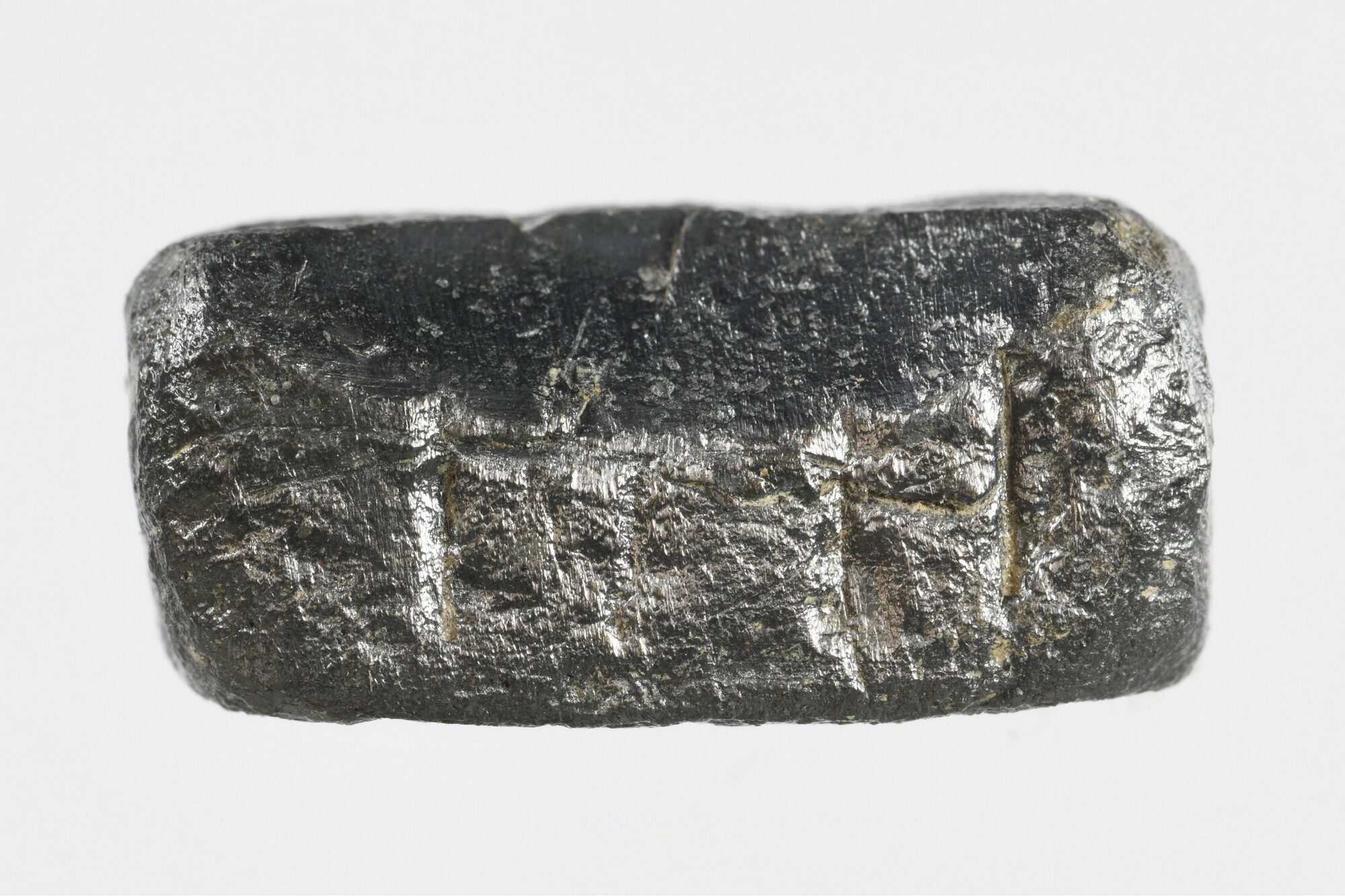 Dobbelsteen?; rechthoekige vorm; tegenoverliggende langewerpige zijden genummerd II - V en III - IIII; gewicht: 24.83 gram