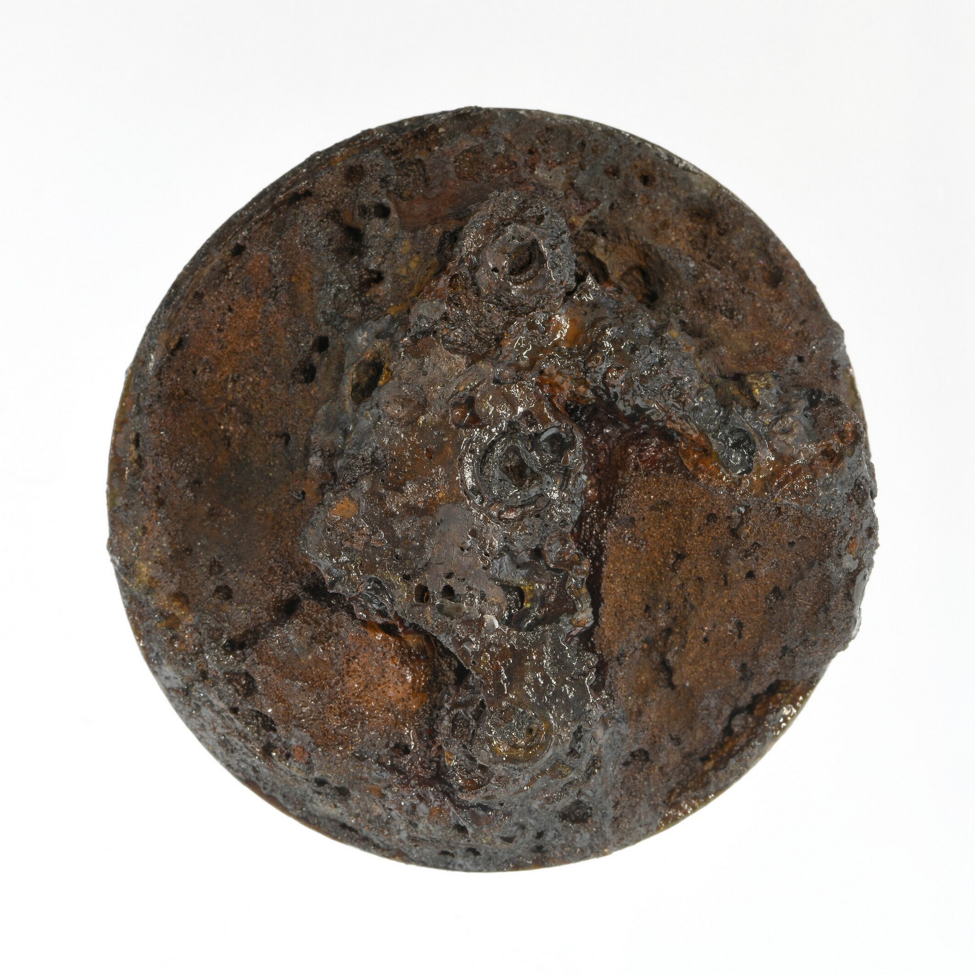 Fietsbel; ronde bolle bel; zwaar gecorrodeerd belmechanisme nog aanwezig