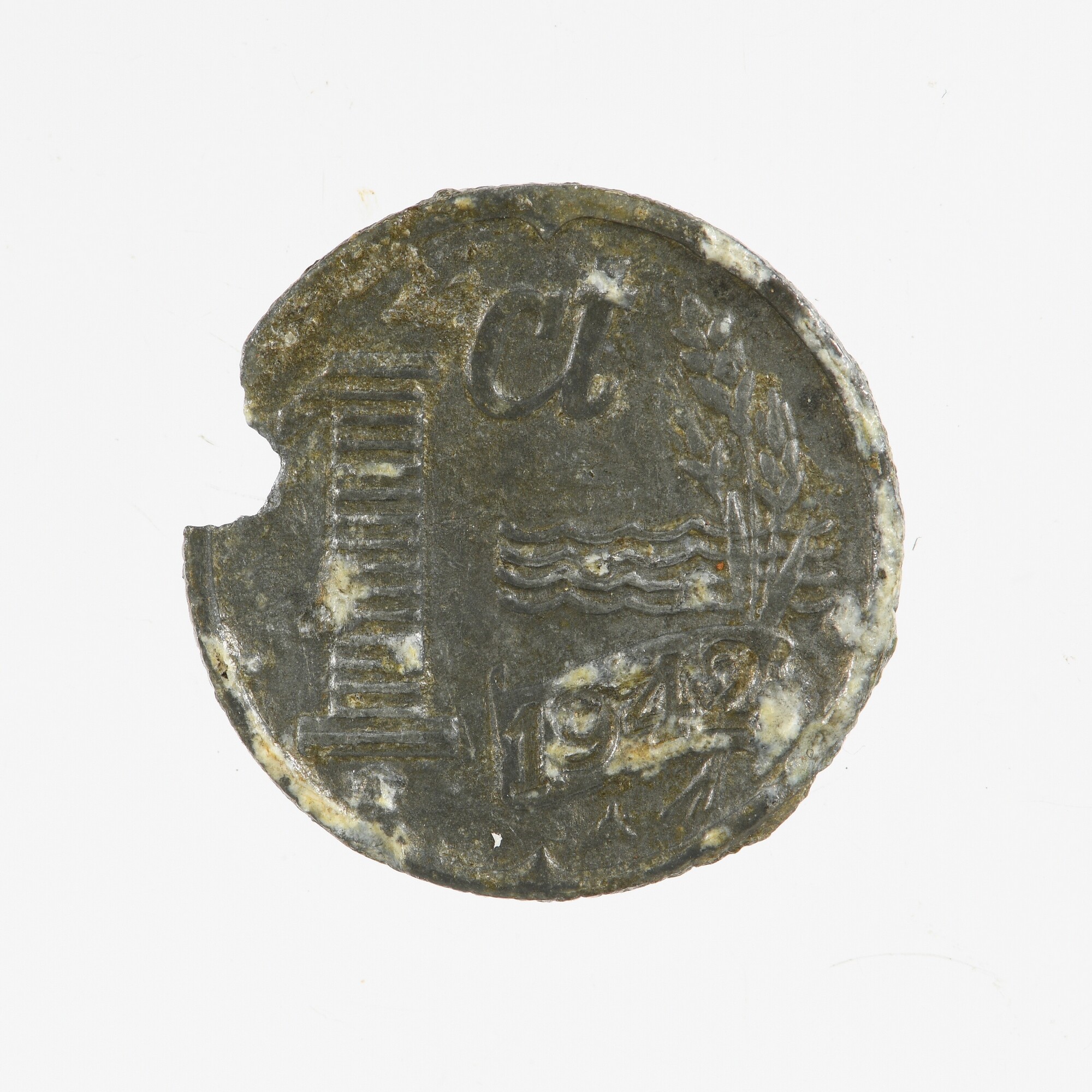 Cent; Nederland Koninkrijk (1813-heden); Wilhelmina (1890-1948); vz.: opschrift 1 CT met vier golven en drie korenaren en het jaartal 1942; kz.: Friese ûleboerd met onderaan de tekst [NEDER]LAND; muntplaats: Utrecht; gewicht: 1.81 gram
