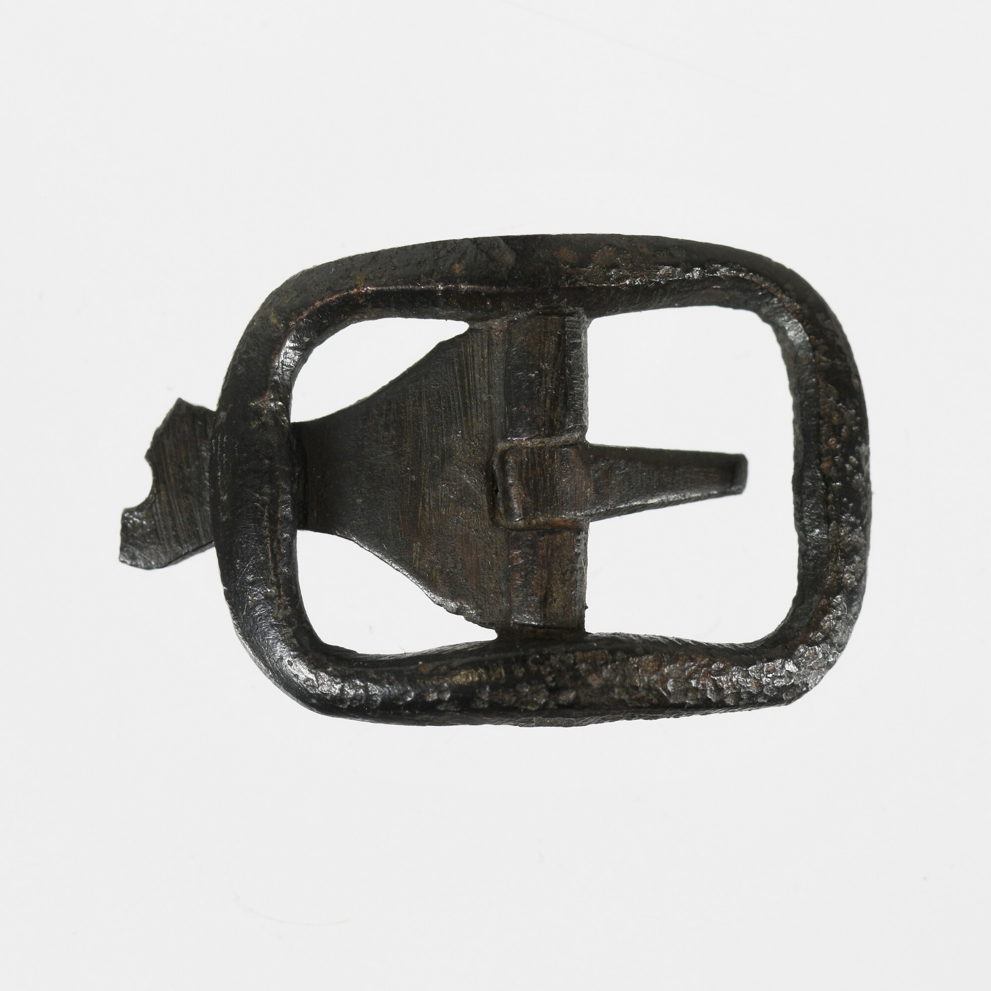 Schoengesp; beslagplaat met ontbrekend uiteinde; middenstijl met angel
