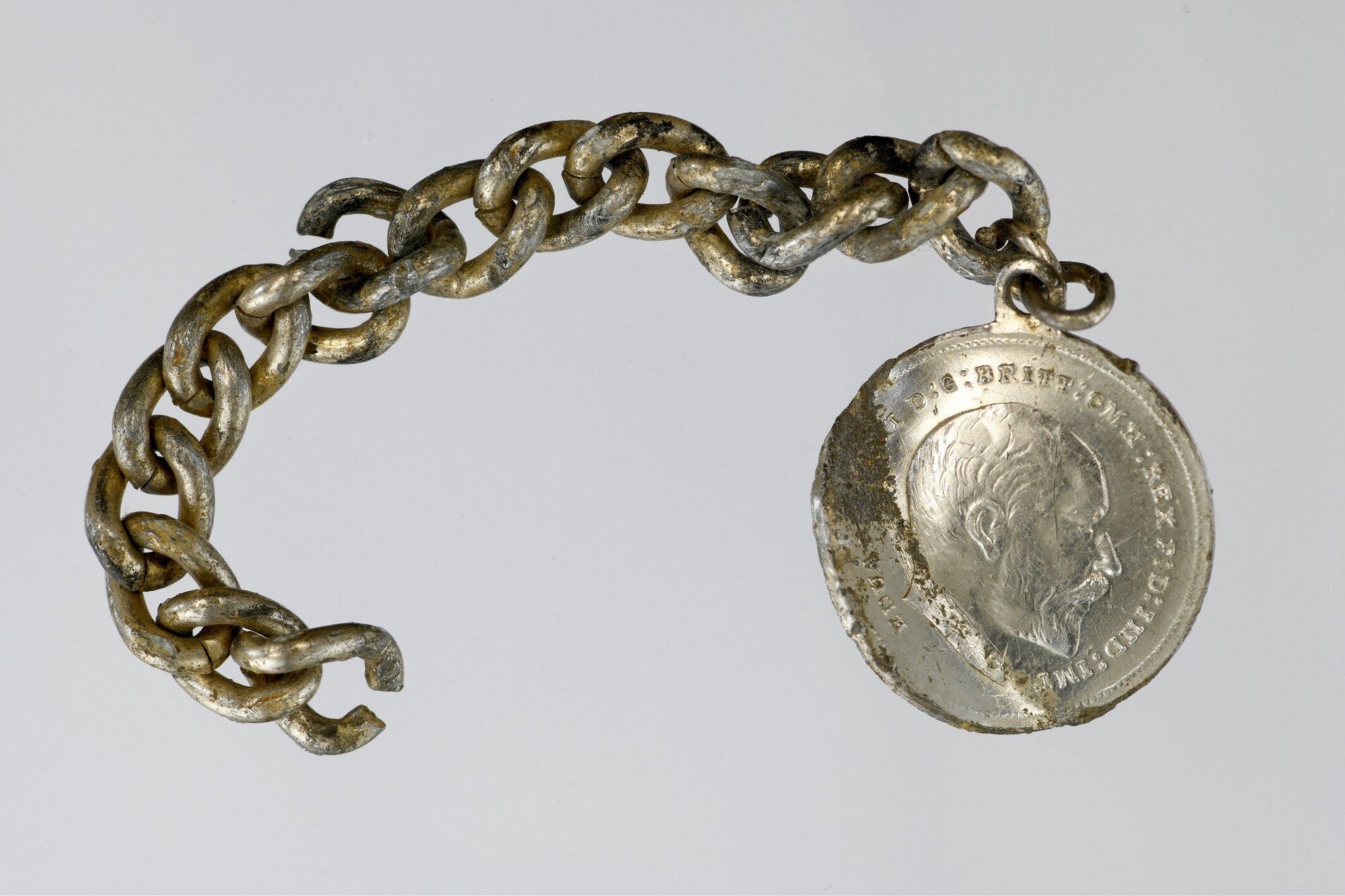 Hanger met schakelketting; vz.: portret van Edward VII (1901-1910) met omschrift: EDUARDUS:VII:D:G:BRITT:OMN:REX:F:D:IND:IMP; kz.: St. George die een draak doodt (Sint Joris en de draak), 1908