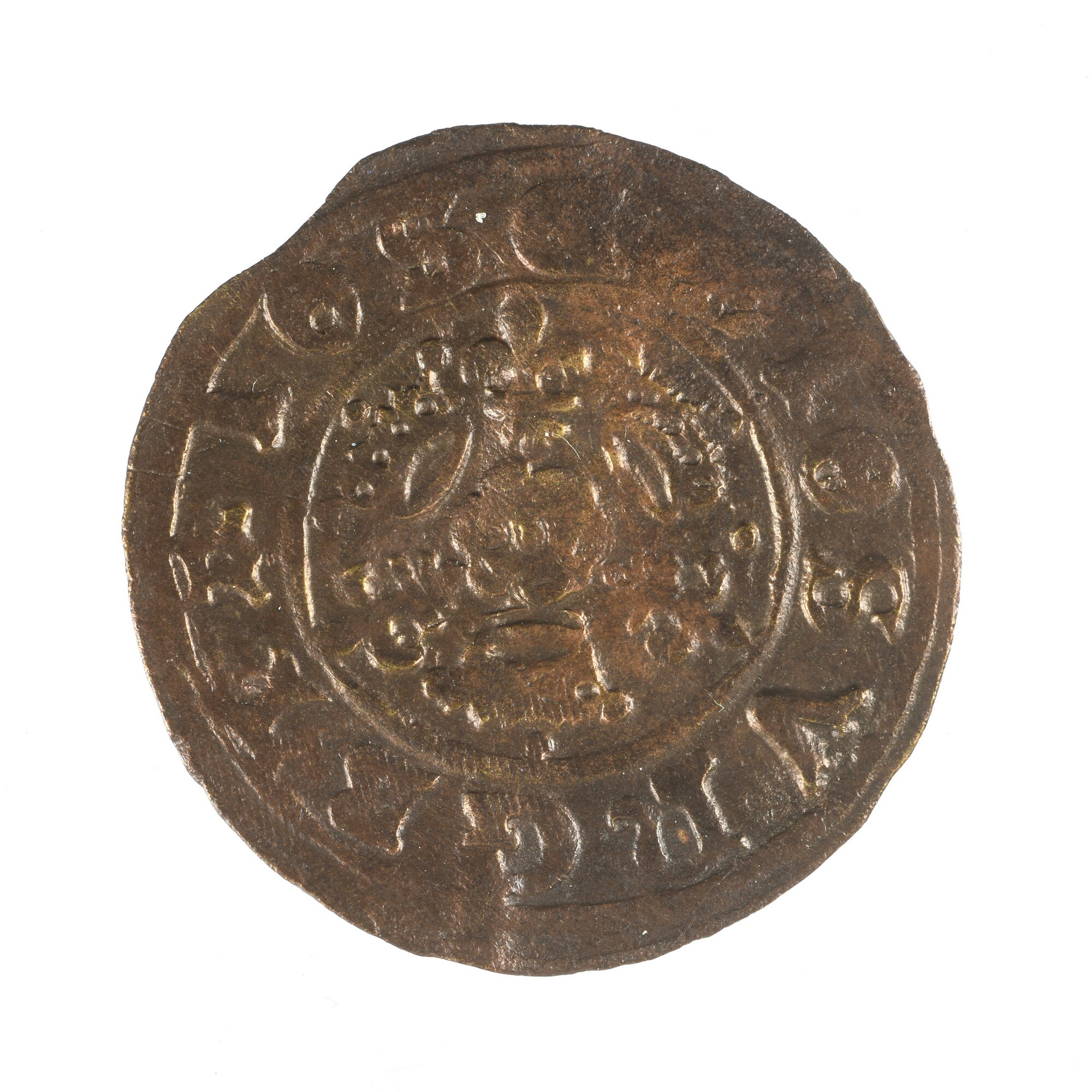 Rekenpenning; vz.: drie kronen en Franse lelies binnen cirkel; kz.: rijksappel in driepas binnen cirkel; herkomst: Neurenberg; gewicht: 1.55 gram