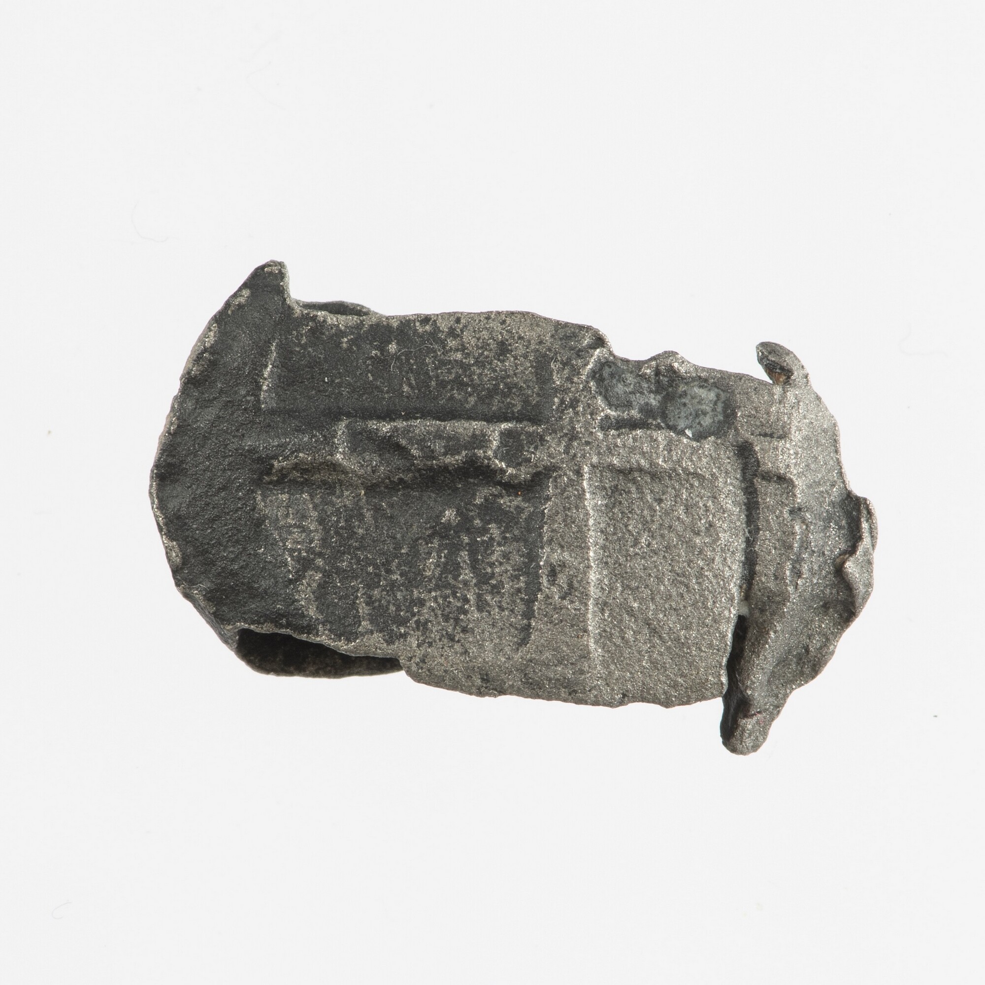 Pijplood; vz en kz.: ronde stempel met patriarchaal kruis (het wapen van Ieper) binnen een cirkel; herkomst: Ieper?