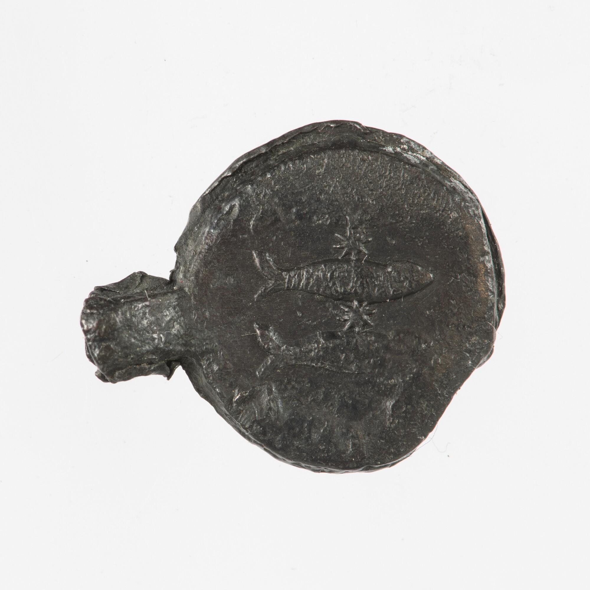 Haringnetlood; vz.: drie haringen en twee sterren; kz.: 1685; herkomst: Enkhuizen