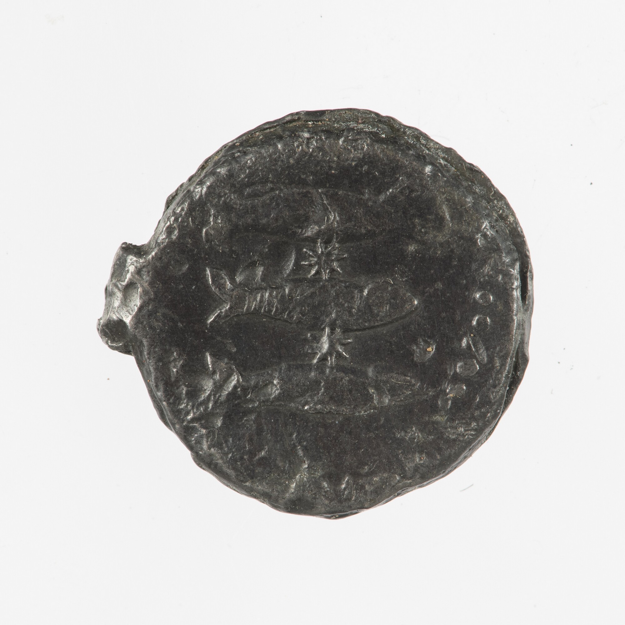 Haringnetlood; vz.: drie haringen en twee sterren; kz.: 1685; herkomst: Enkhuizen