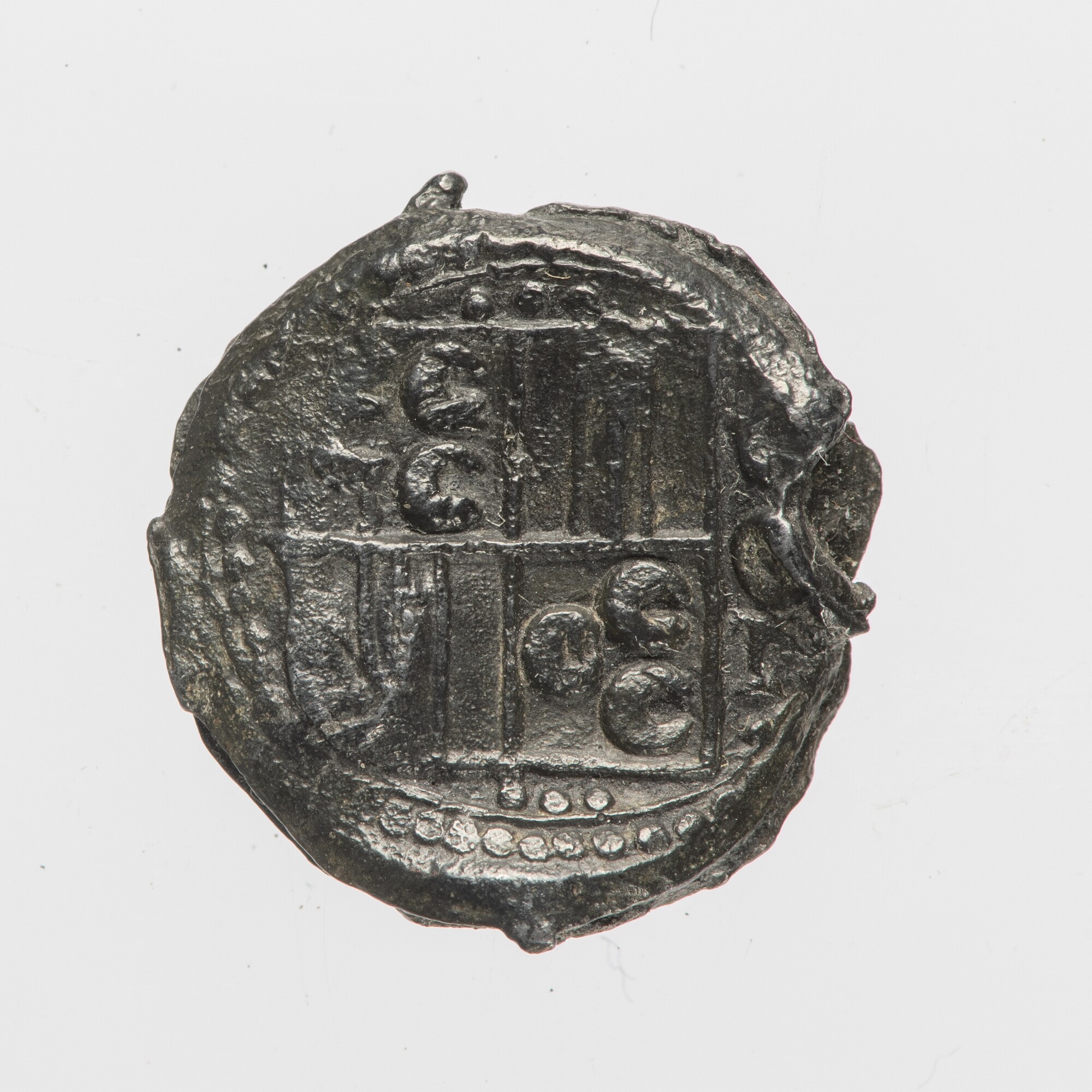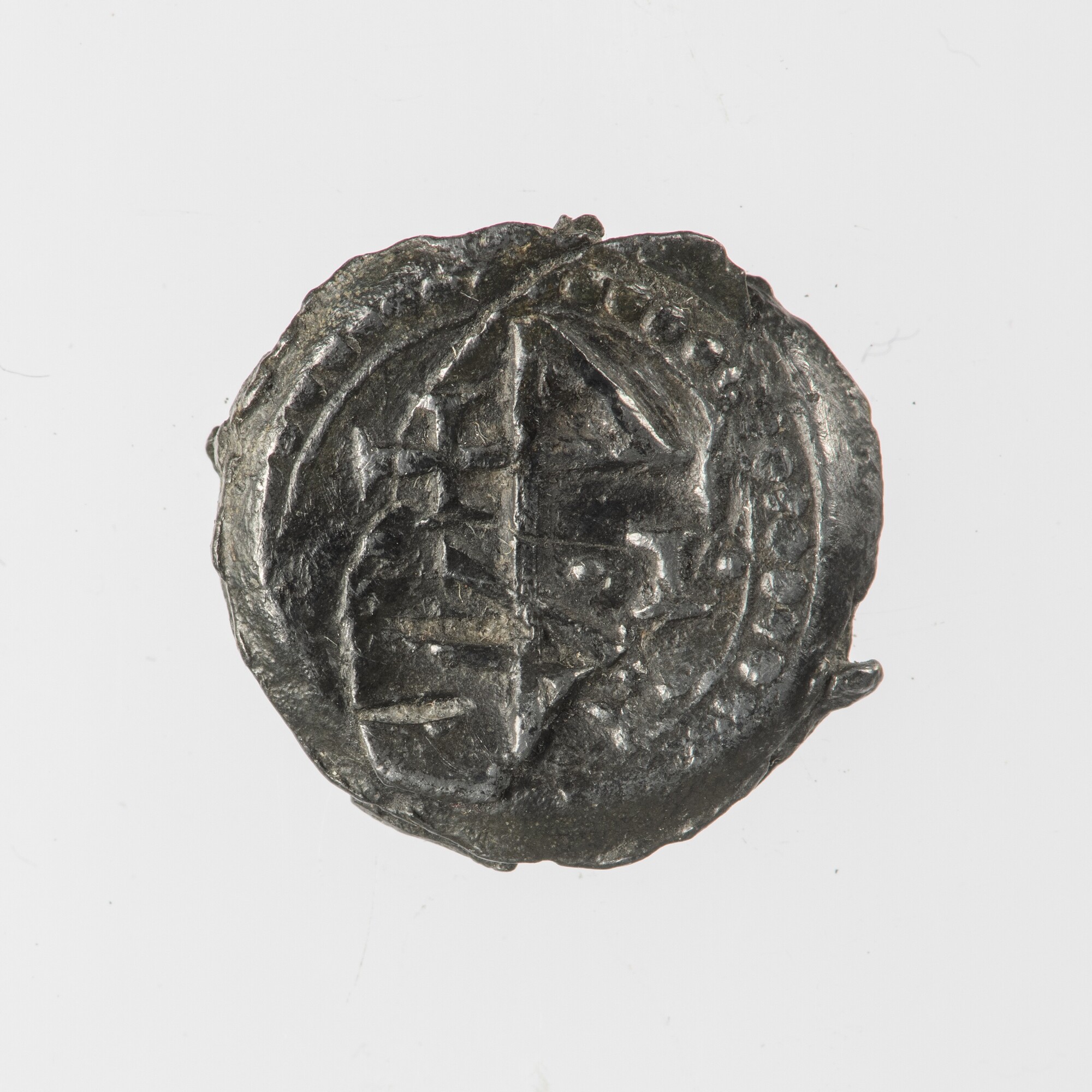 Haringnetlood?; textiellood?; vz.: gespiegeld wapen van Wassenaar binnen parelrand; kz.: huismerk binnen parelrand; herkomst: Wassenaar?