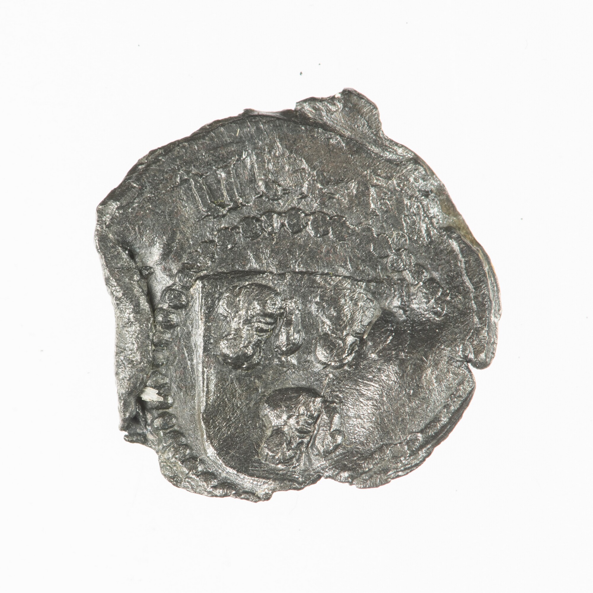 Textiellood?; vz.: wapenschild met drie onduidelijke elementen binnen parelrand met omschrift [...] U; kz.: ontbreekt