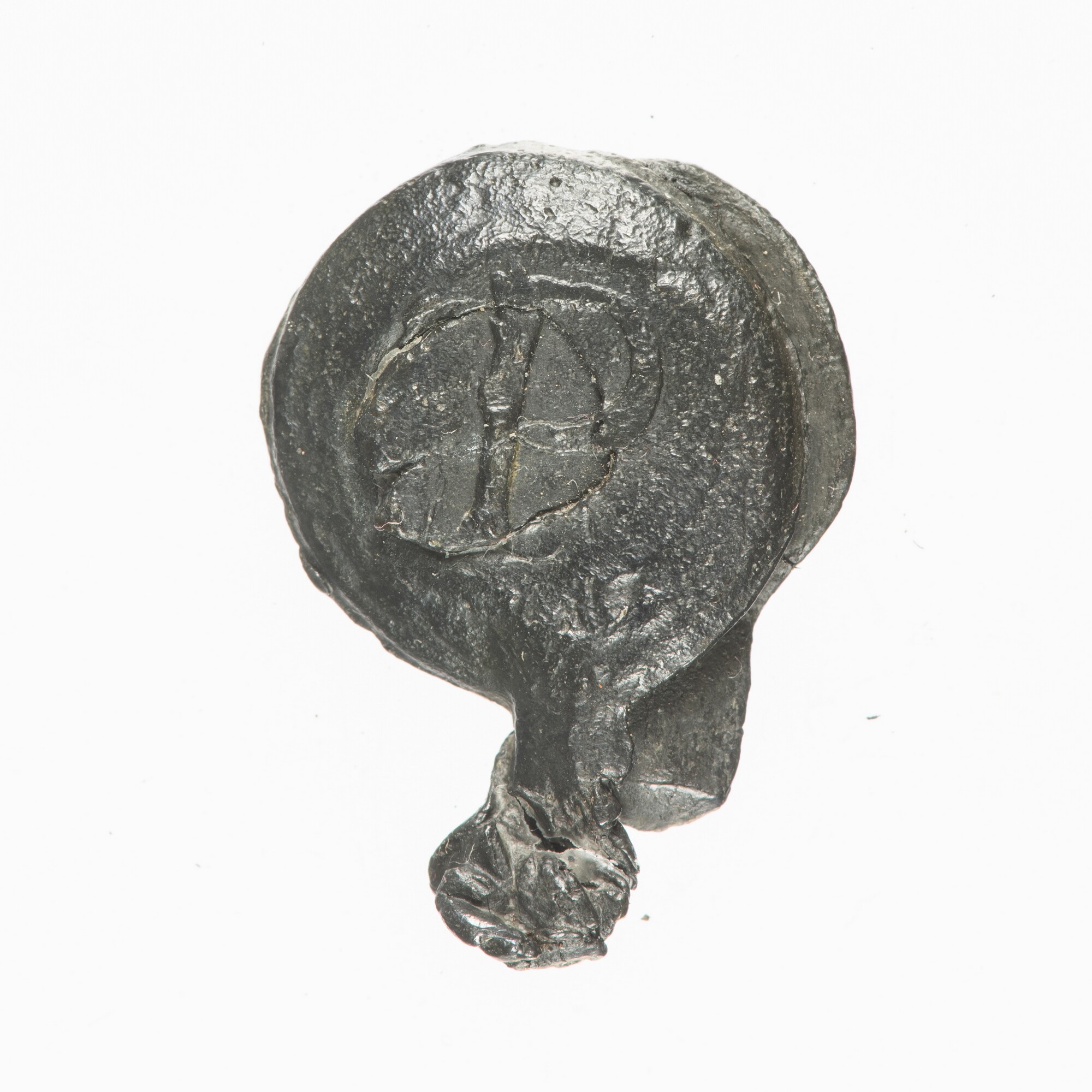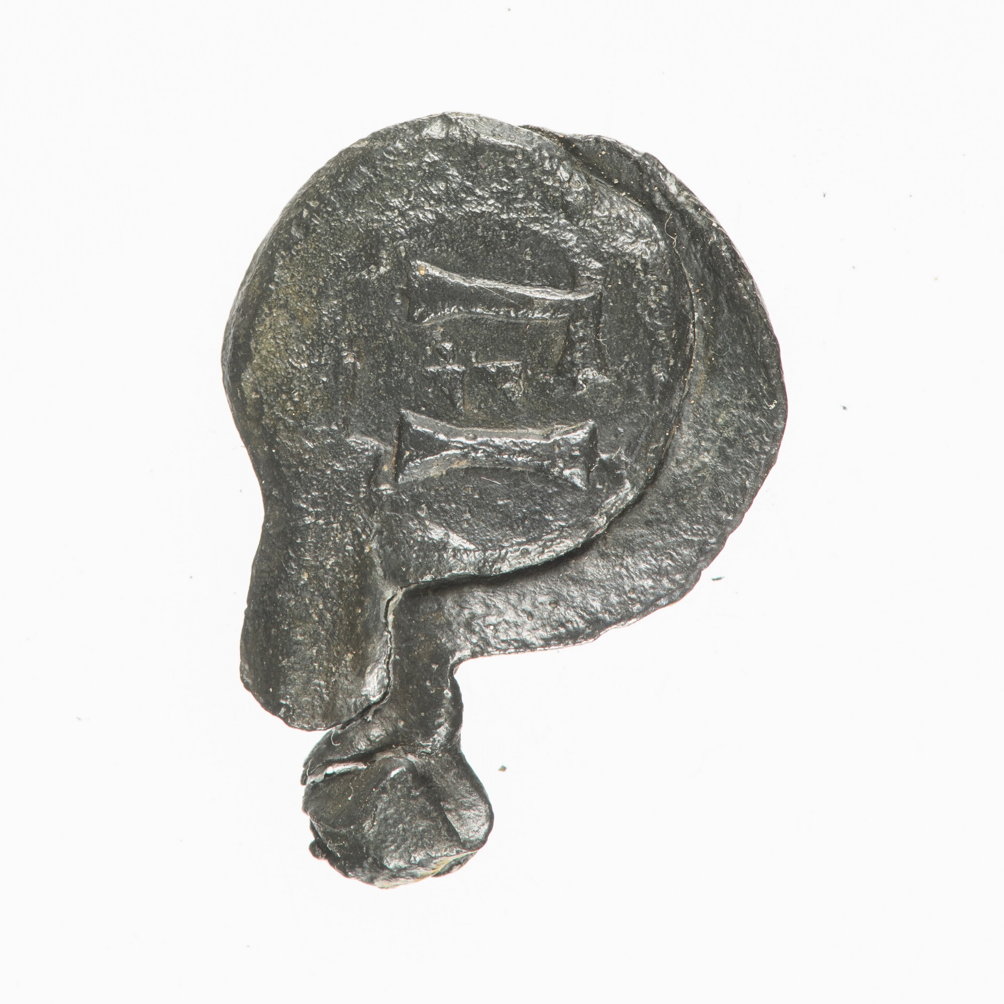 Textiellood?; haringnetlood?; vz.: T (twee driehoekjes) I; kz.: letter P