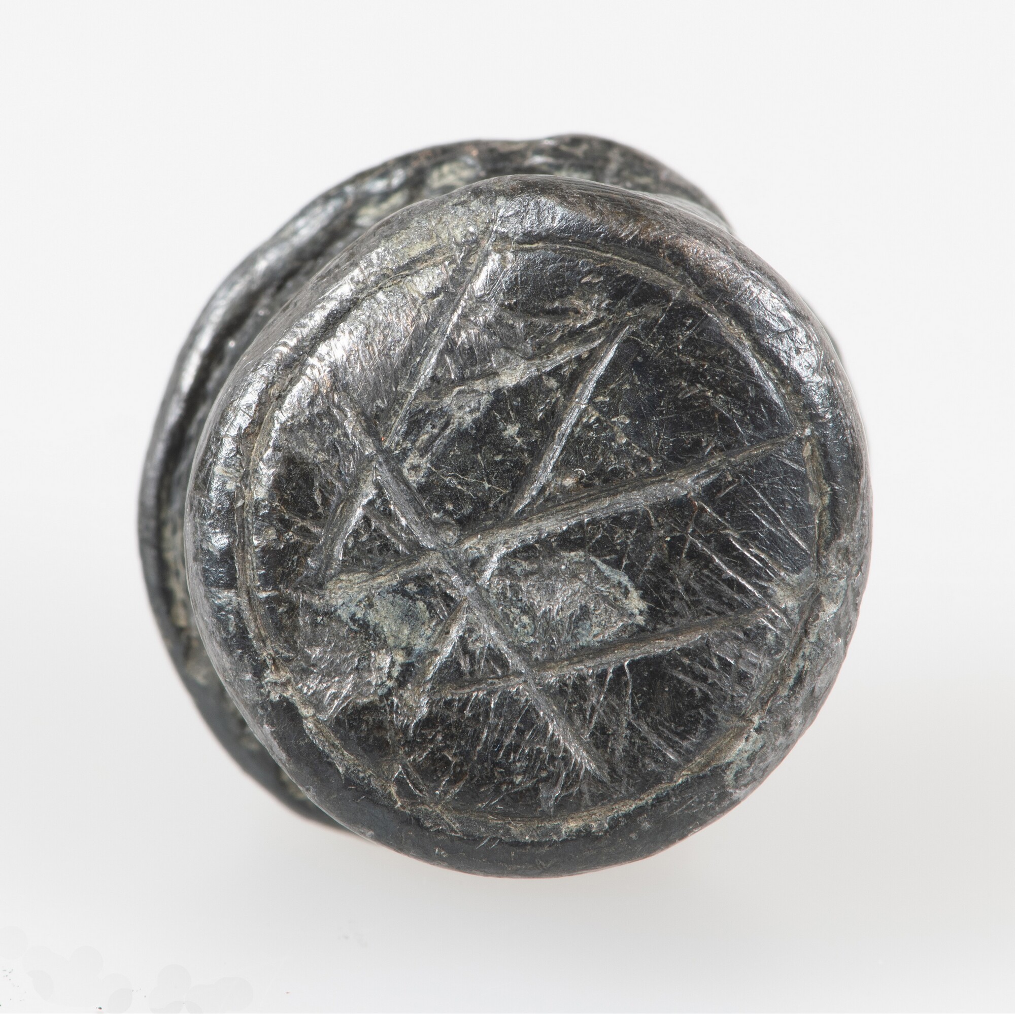 Dop; schroefdop glazen fles; verticale groeven rand; ingekrast huismerk of monogram
