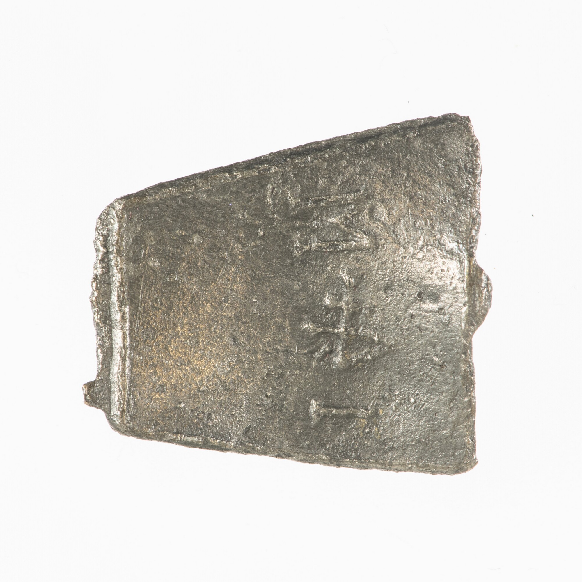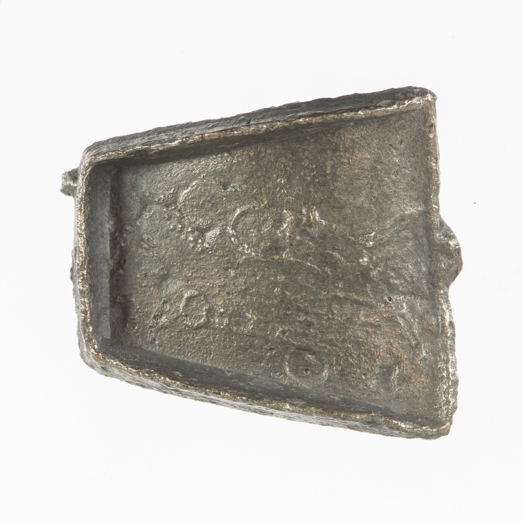 Miniatuur asschep; steel ontbreekt; vz.: hoorn (en ster?); kz.: I (huismerk) W of M (huismerk) I