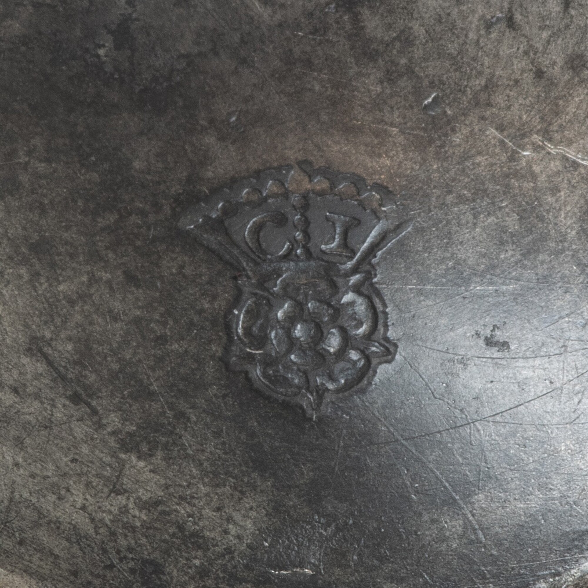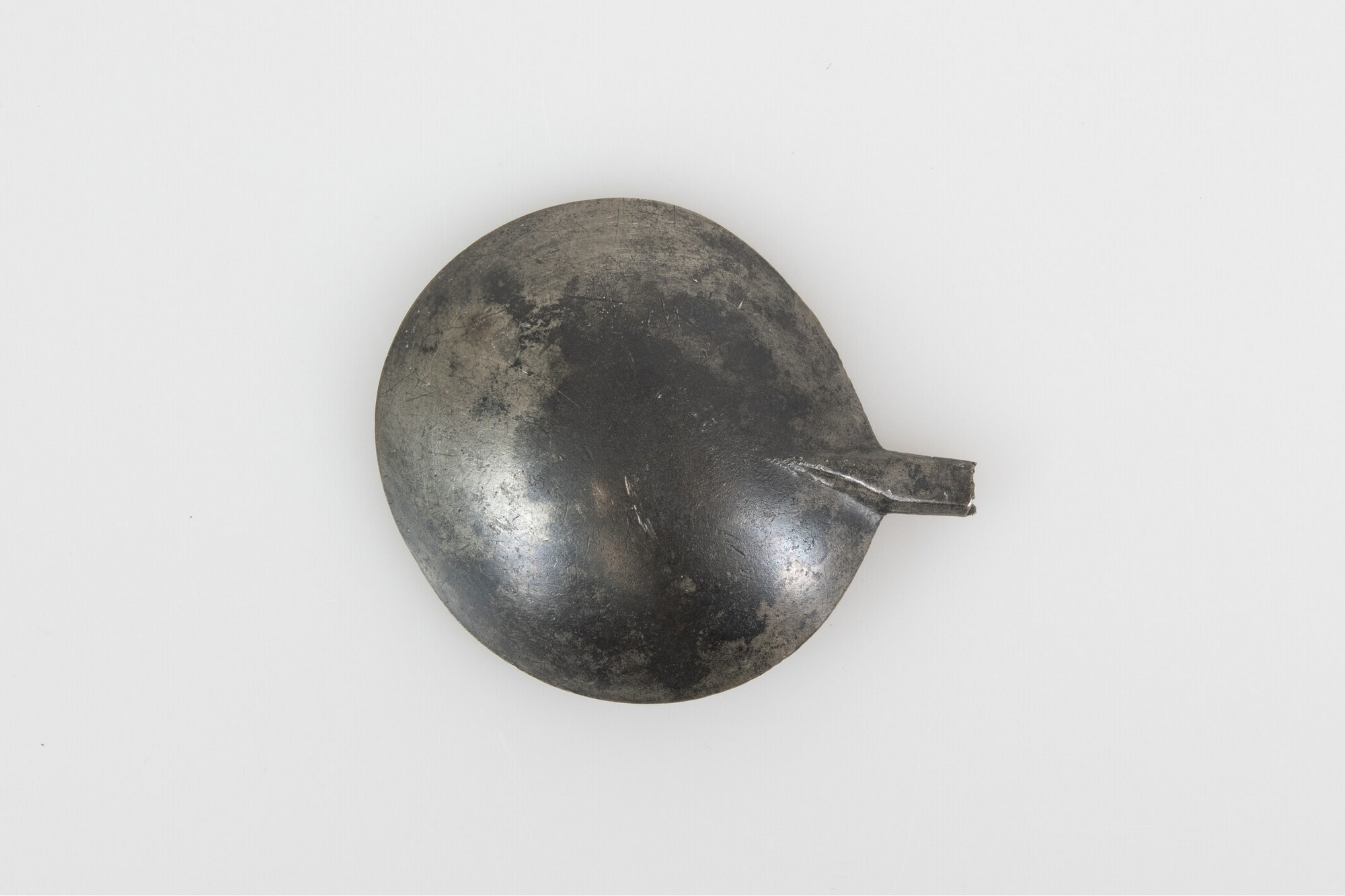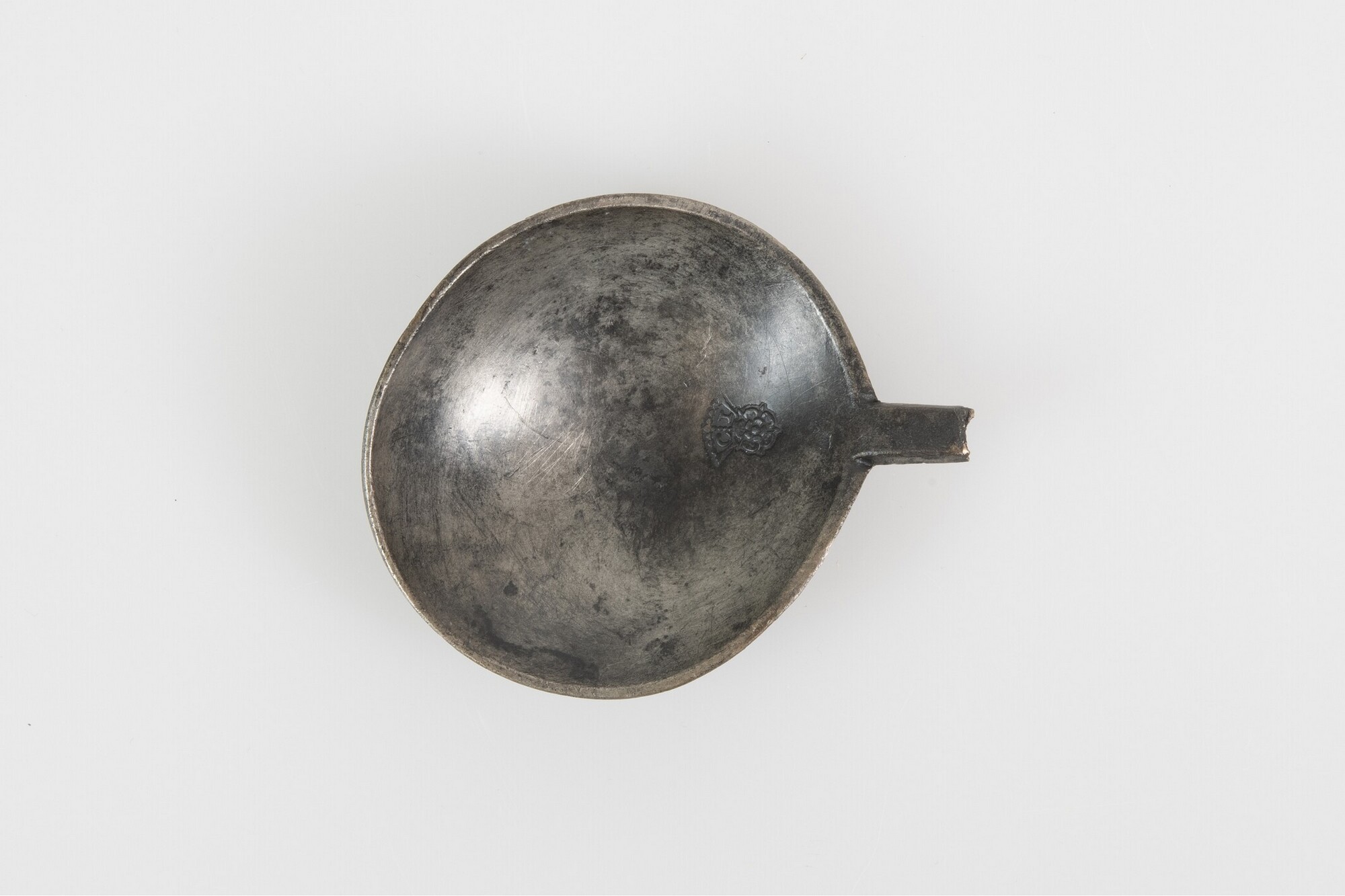 Lepel; lepel met ronde bak, zeshoekige steelfragment; merkteken op bak: gekroonde roos met letters CI