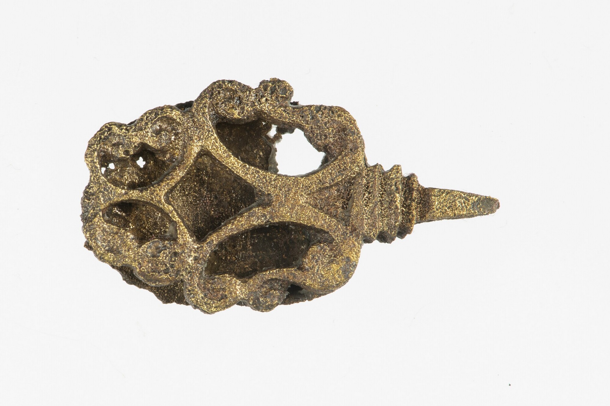 Riemtong; vz.: opengewerkte takkenversiering; getrapte punt aan uiteinde; kz.: onversierd