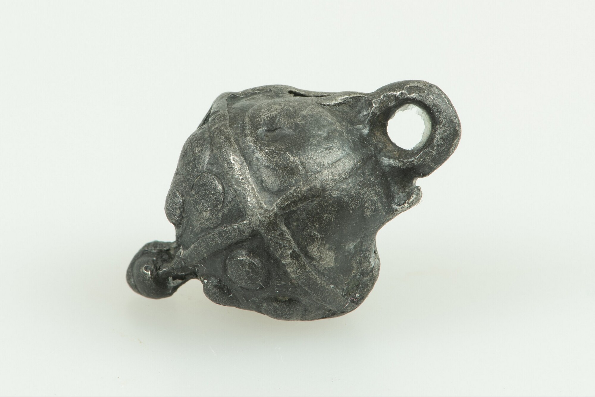 Knoop; bolvormig; ophangoog; ribben verdelen het lichaam in acht vlakken met daarin bolletjes als versiering; bolletje onderaan