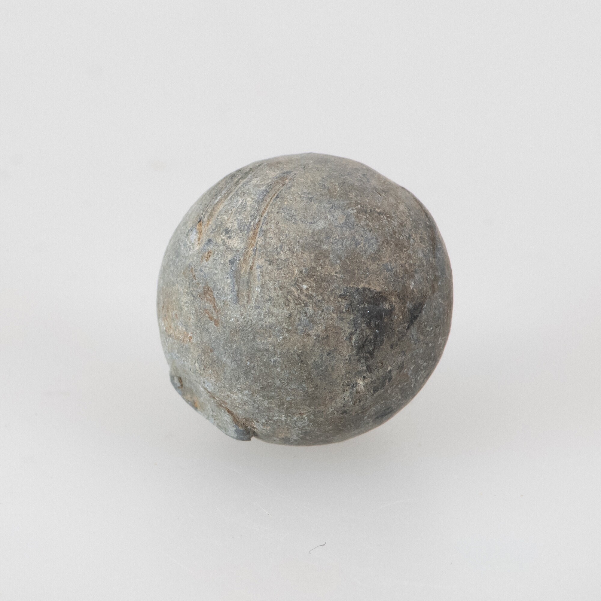 Kogel; musketkogel met gietnaad en afgeplatte gietprop; gewicht: 29.26 gram