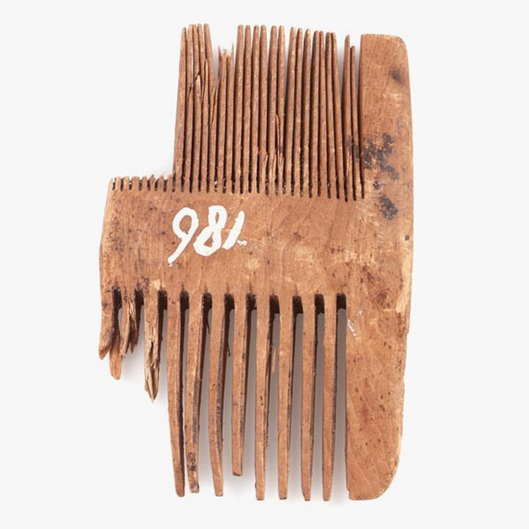 Kam, buxushout; dubbelzijdig, grove/fijne tanden, vondstdatum: 07-08-1934