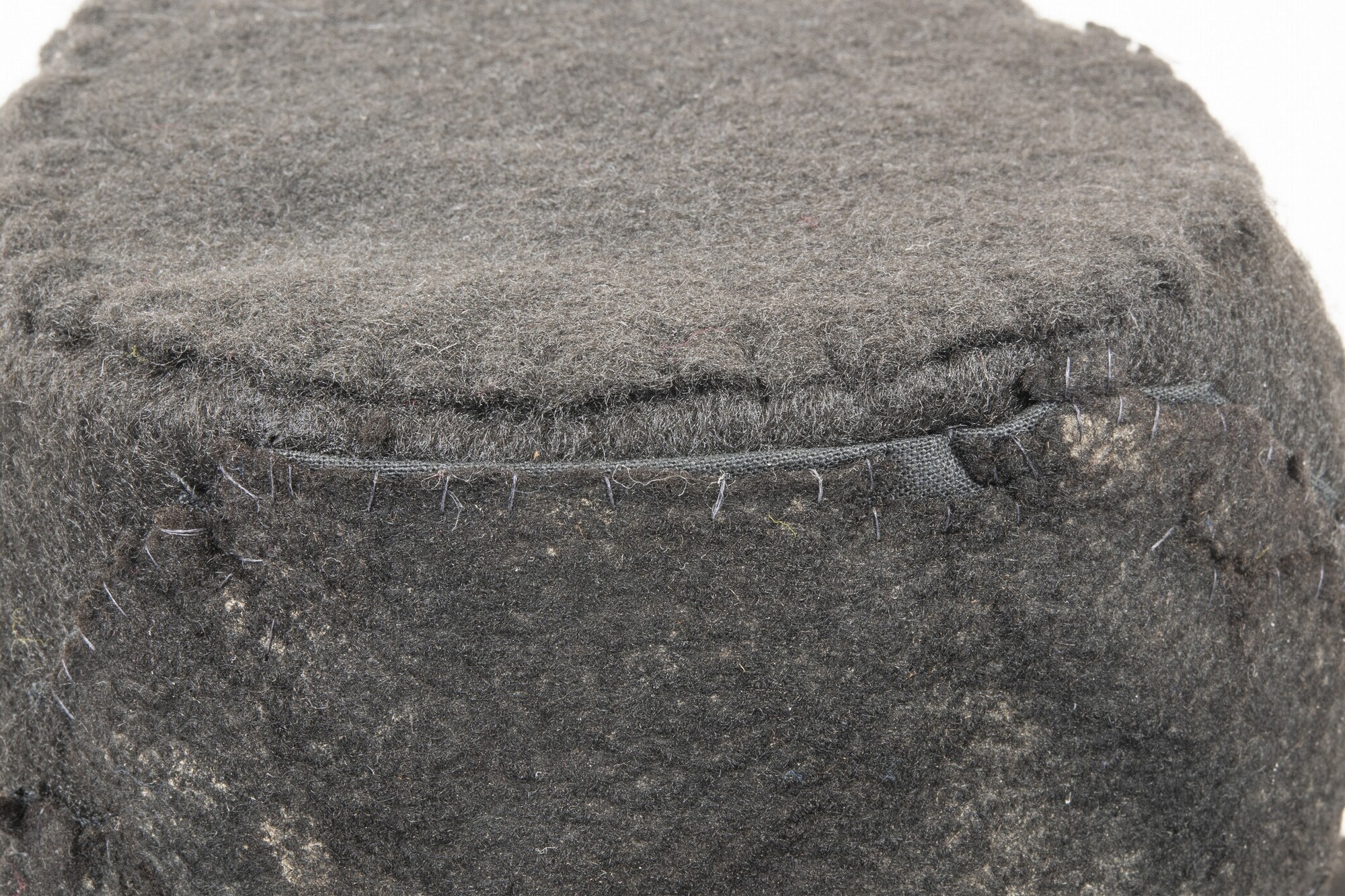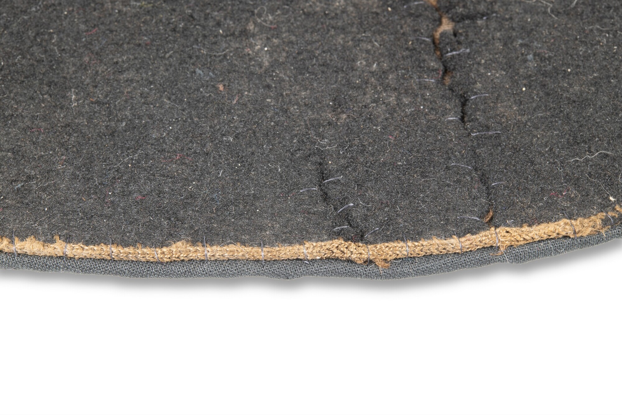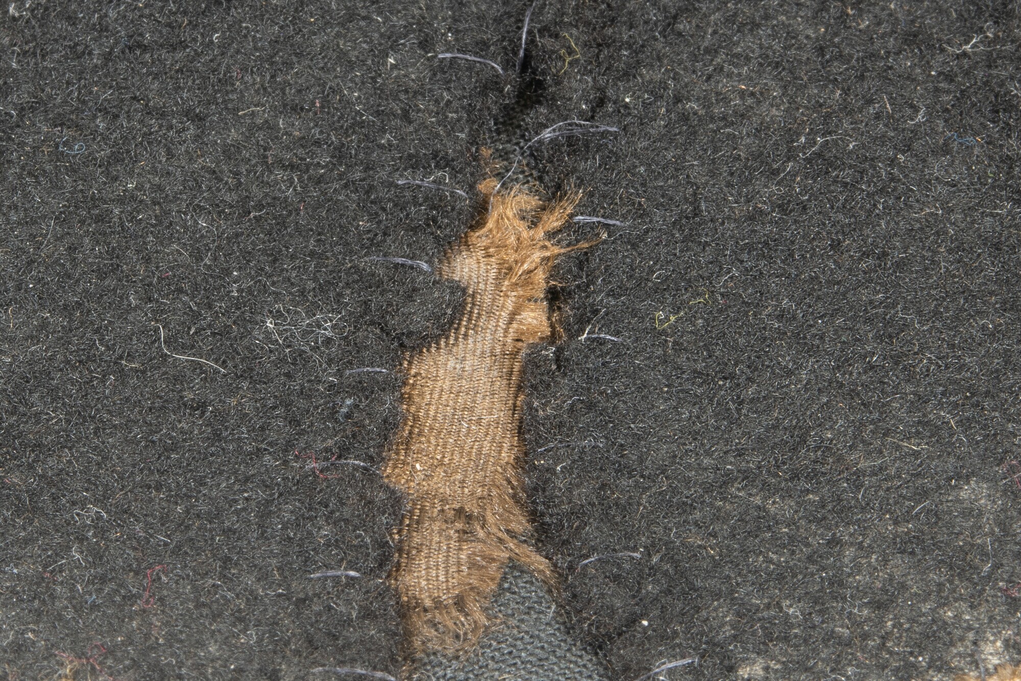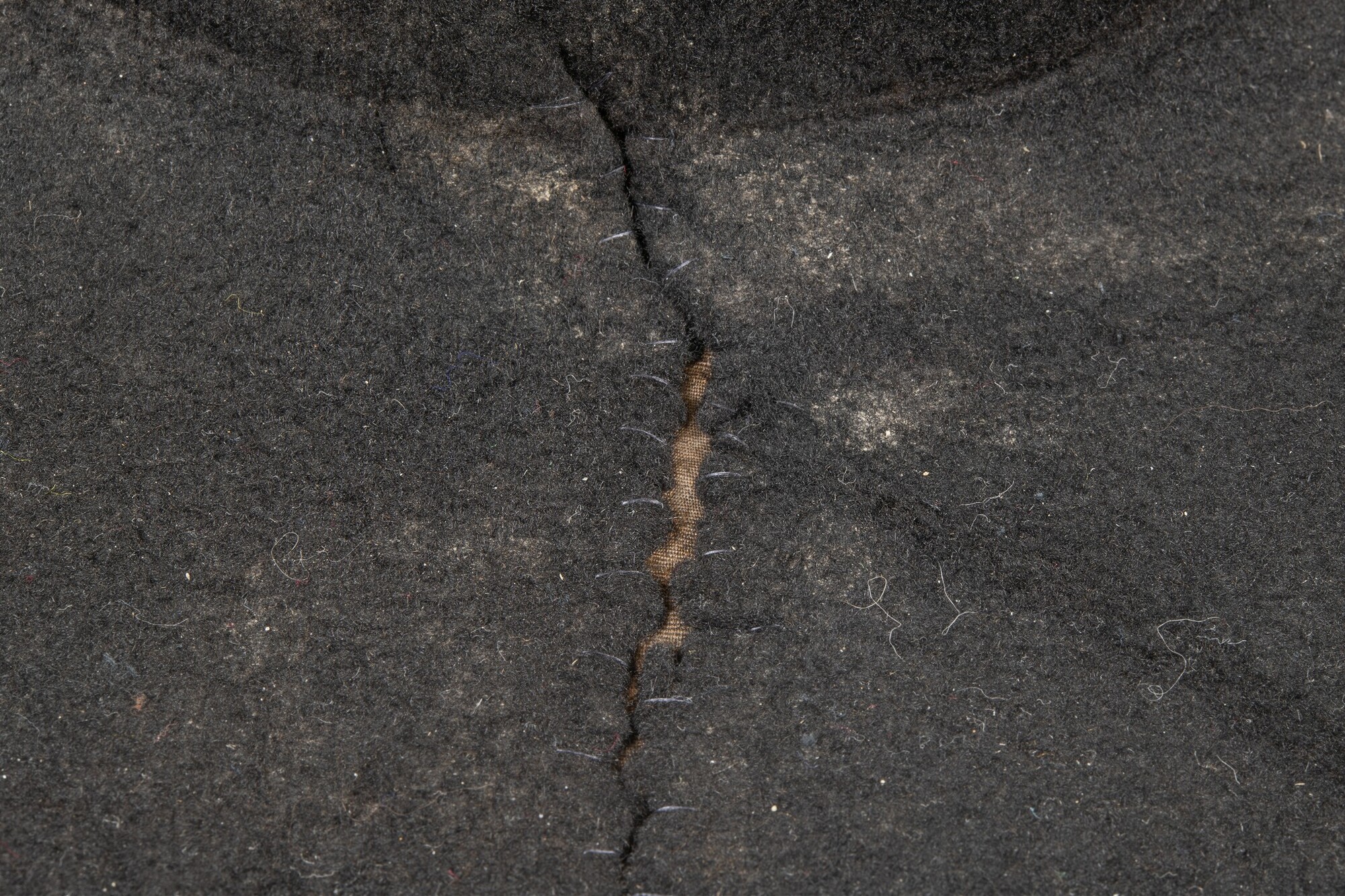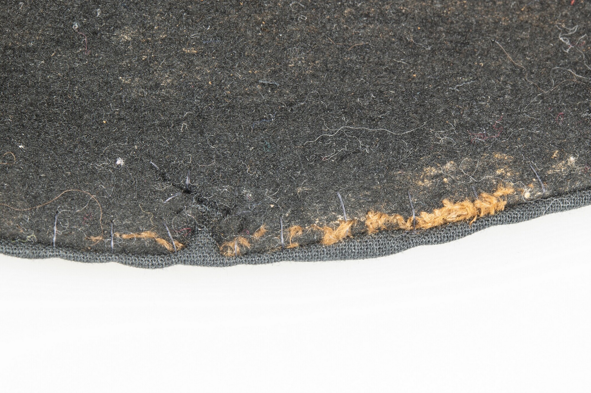 Vilten hoed met resten van een zijden voering in de binnenzijde. In de stof een afdruk van een hoedenlint