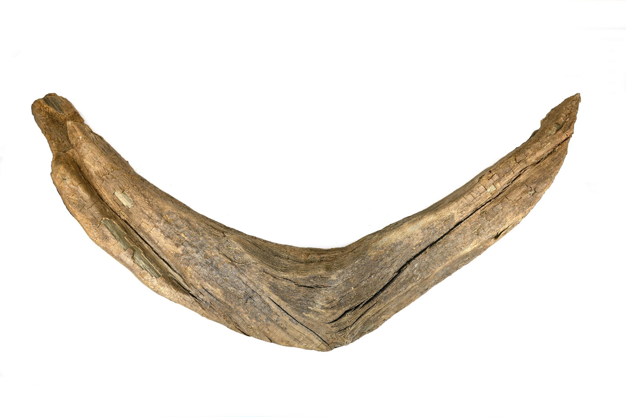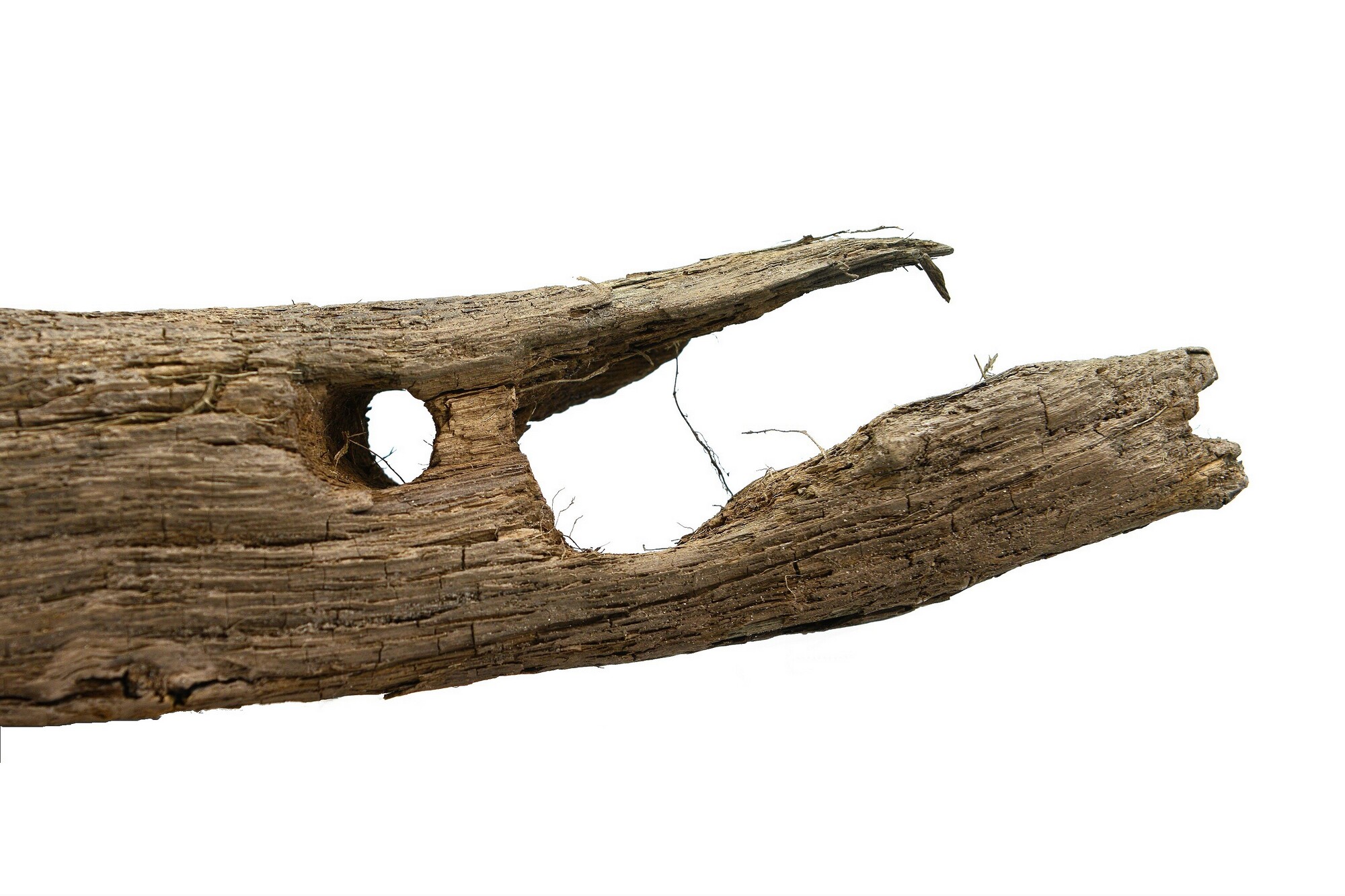 Kromhout van vaartuig; ronde doorboring aan bovenzijde