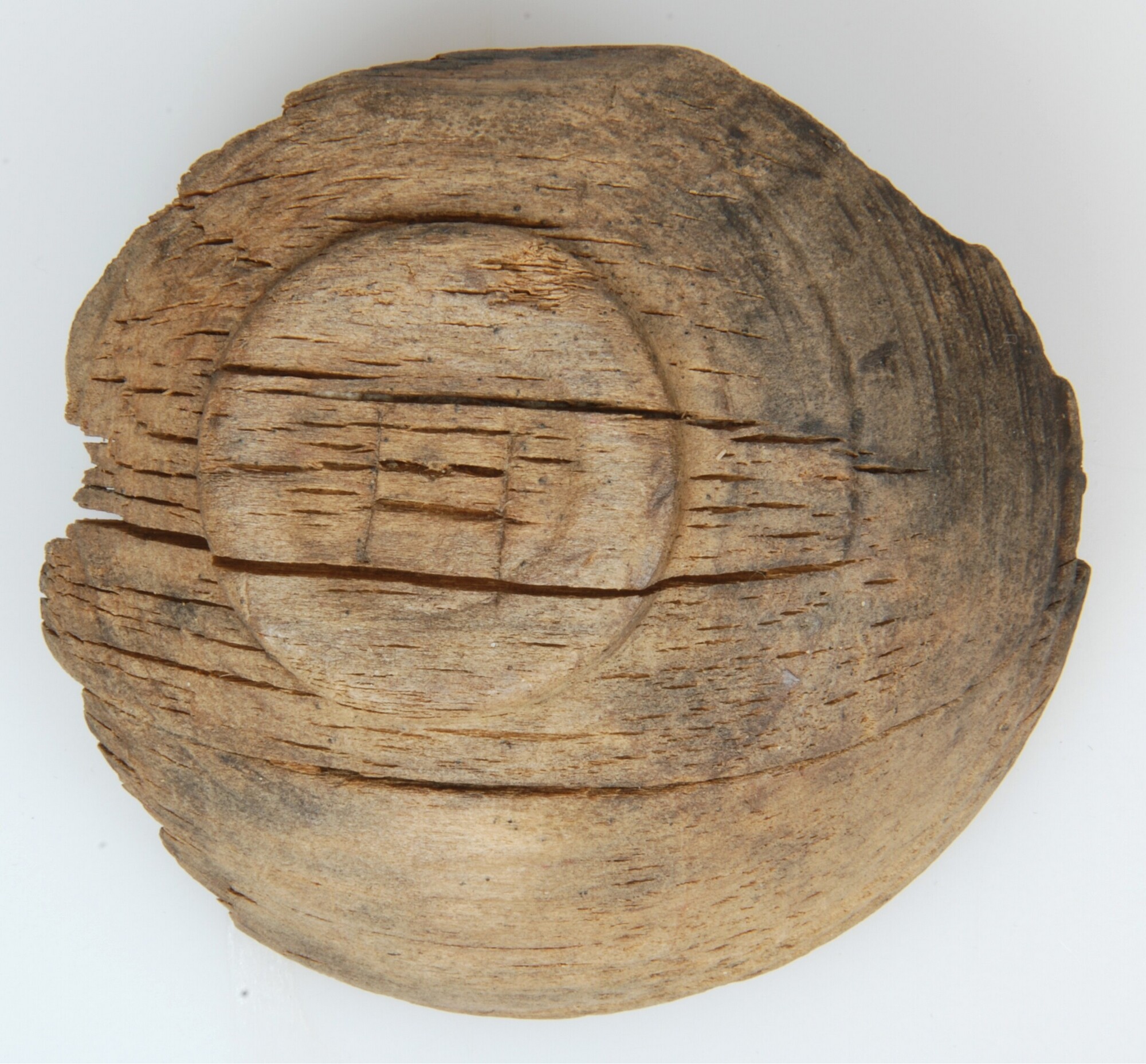Kom; elzenhout; archeologisch compleet; inscriptie op de onderzijde van de bodem die mogelijk verwijst naar de maker of eigenaar; standvlak