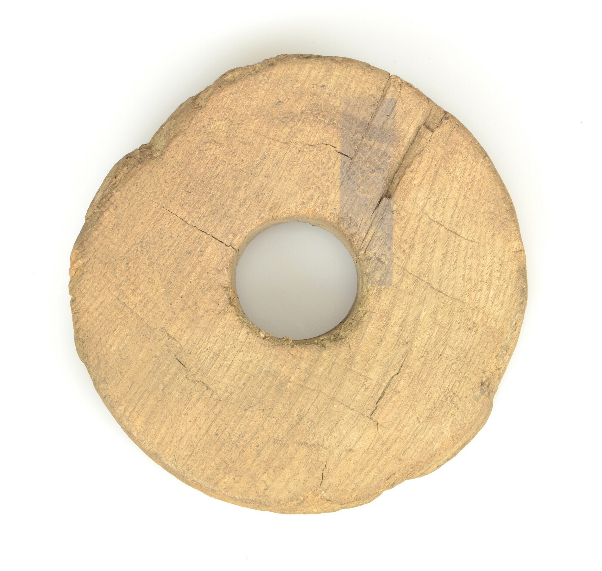 Katrol; essenhout; centraal gat dat niet uitgesleten is; uitgespaarde baan op de rand
