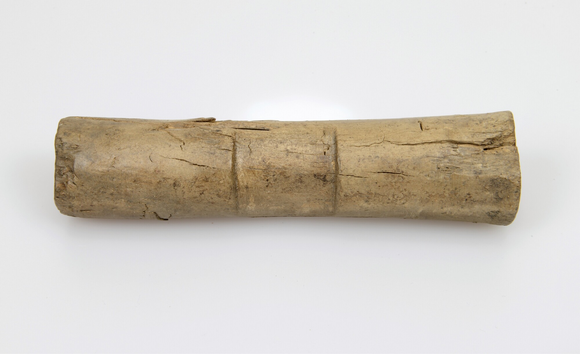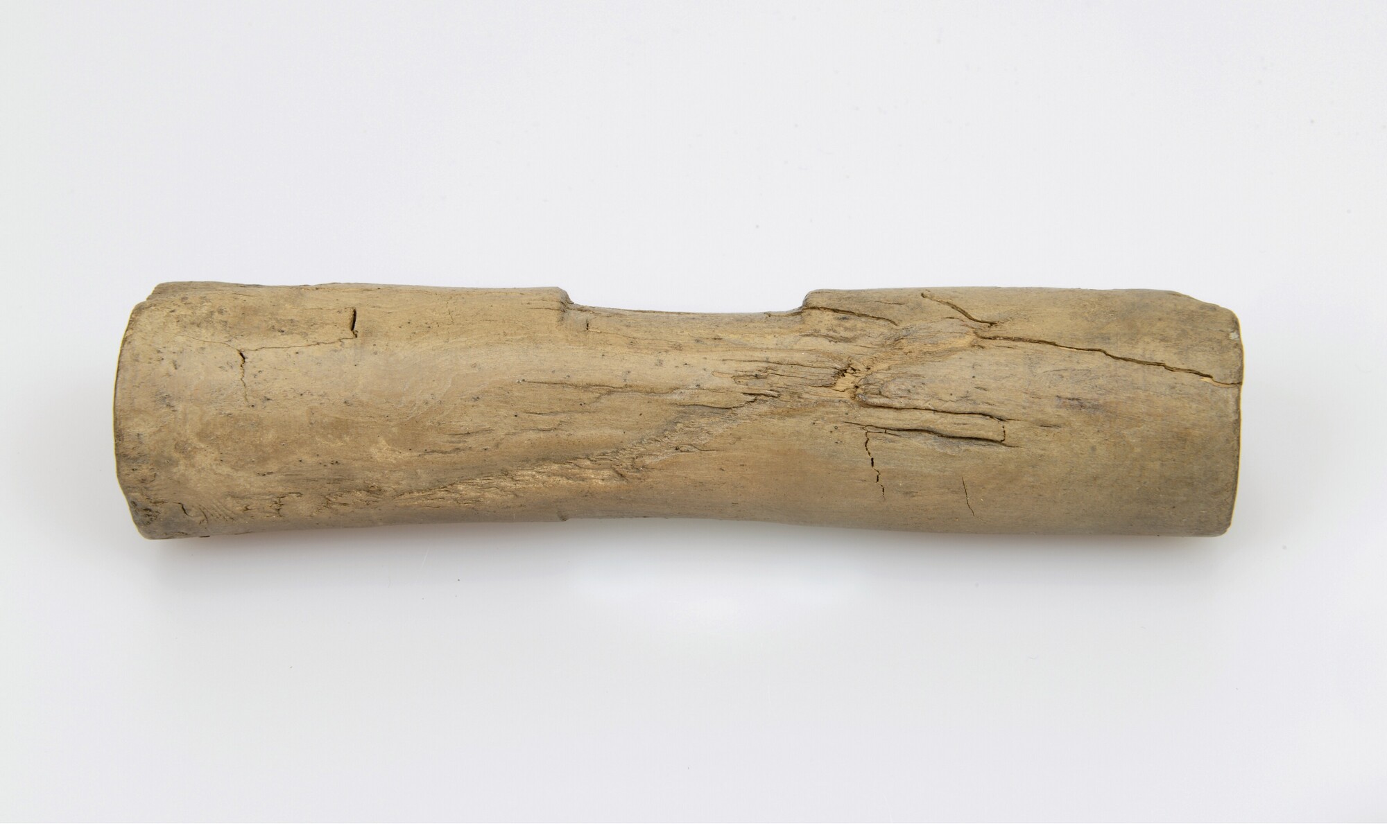 Katrol-as; buisvormig met uitgesneden middenstuk; gebruikt voor katrollen met een enkel gat; vak 8, vondstdatum: 22-2-2007