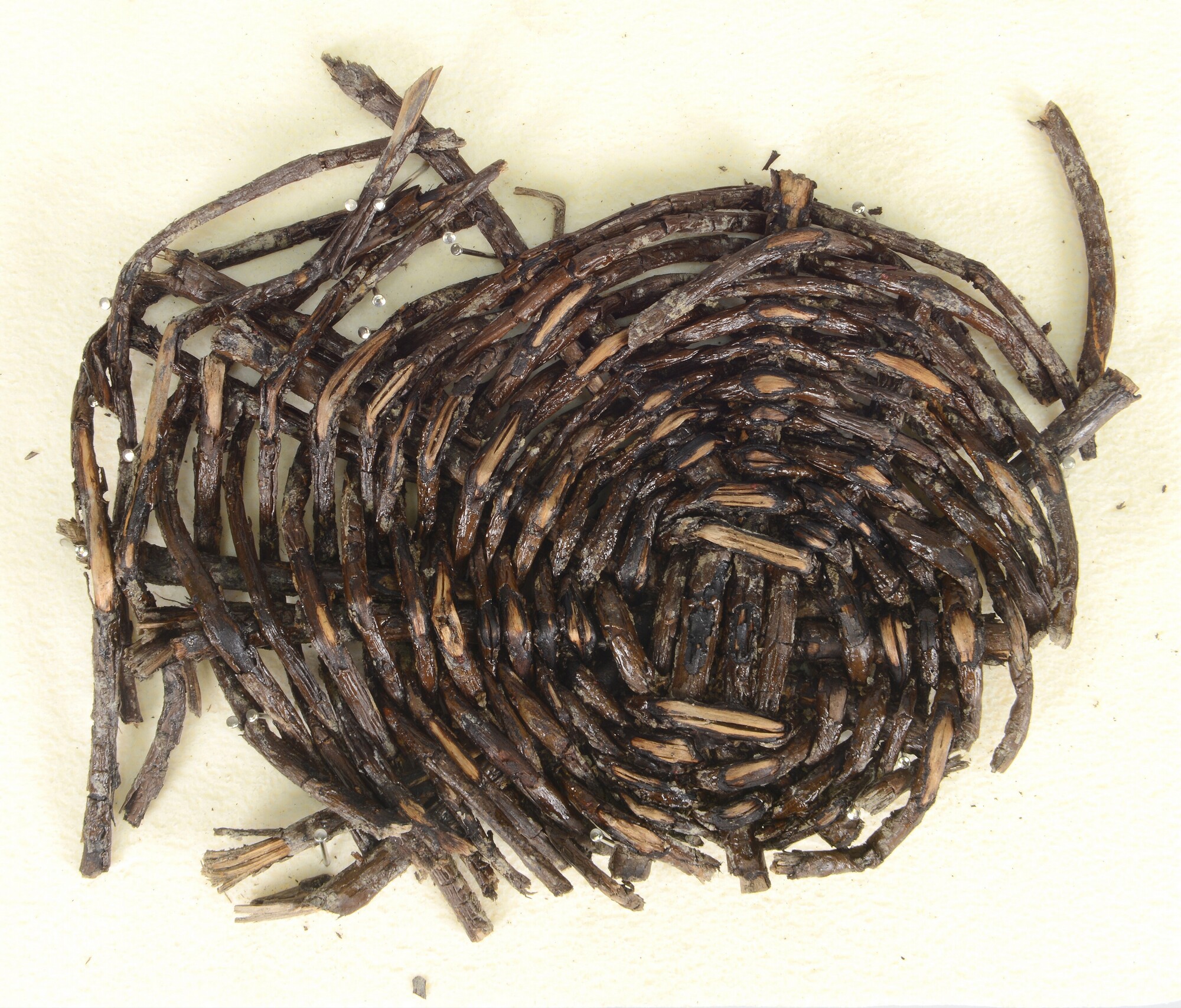 Mand; deel van de bodem; frame van staken met 1 vlechter tussendoor gevlochten