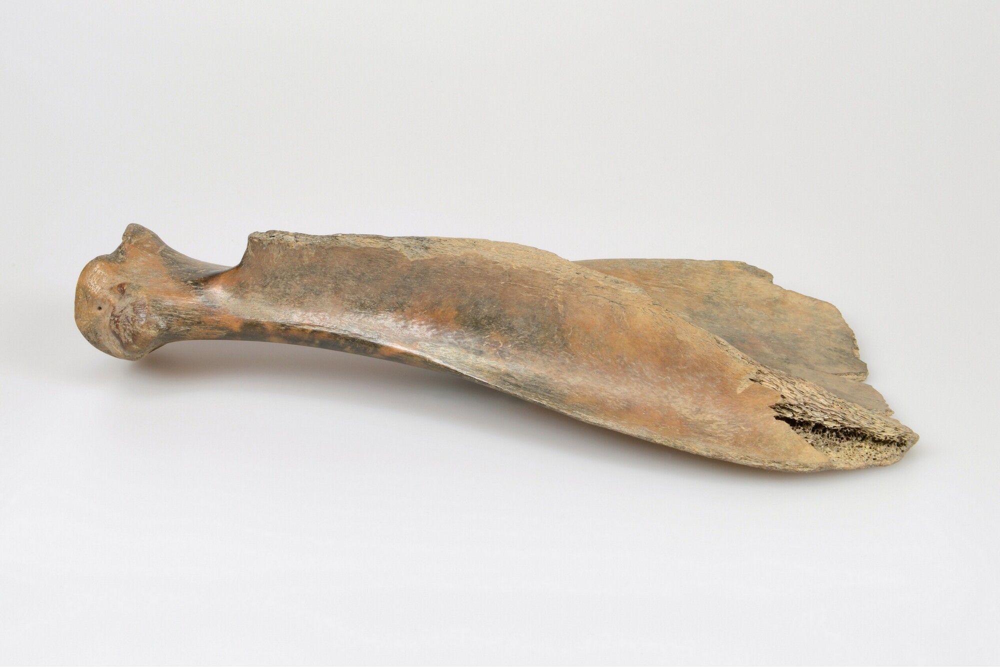 Spade uit schouderblad rund; schouderblad type I; het gehele schouderblad is intact en rondom de ''nek'' volledig gepolijst als gevolg van geregeld gebruik