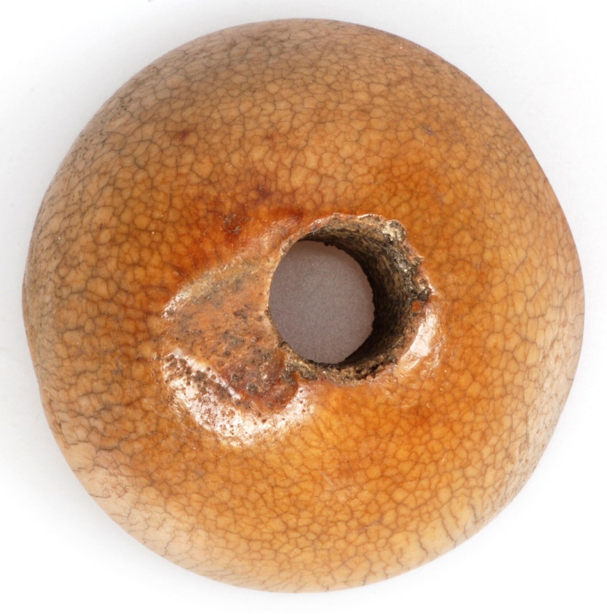 Oesdop; bot; gat in midden en gepolijst; vondstgegevens: verdiepen vlak tot veen