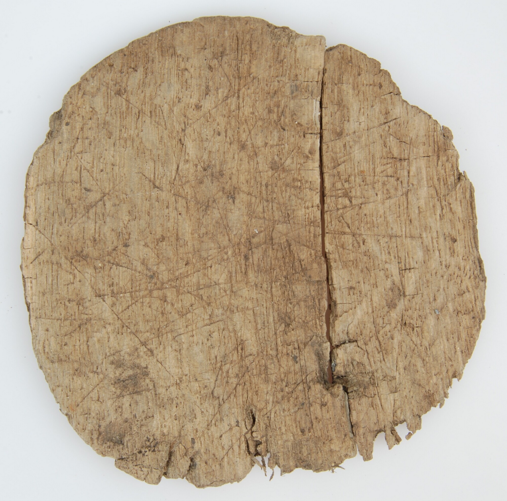 Deksel; eikenhout; rond met snijsporen