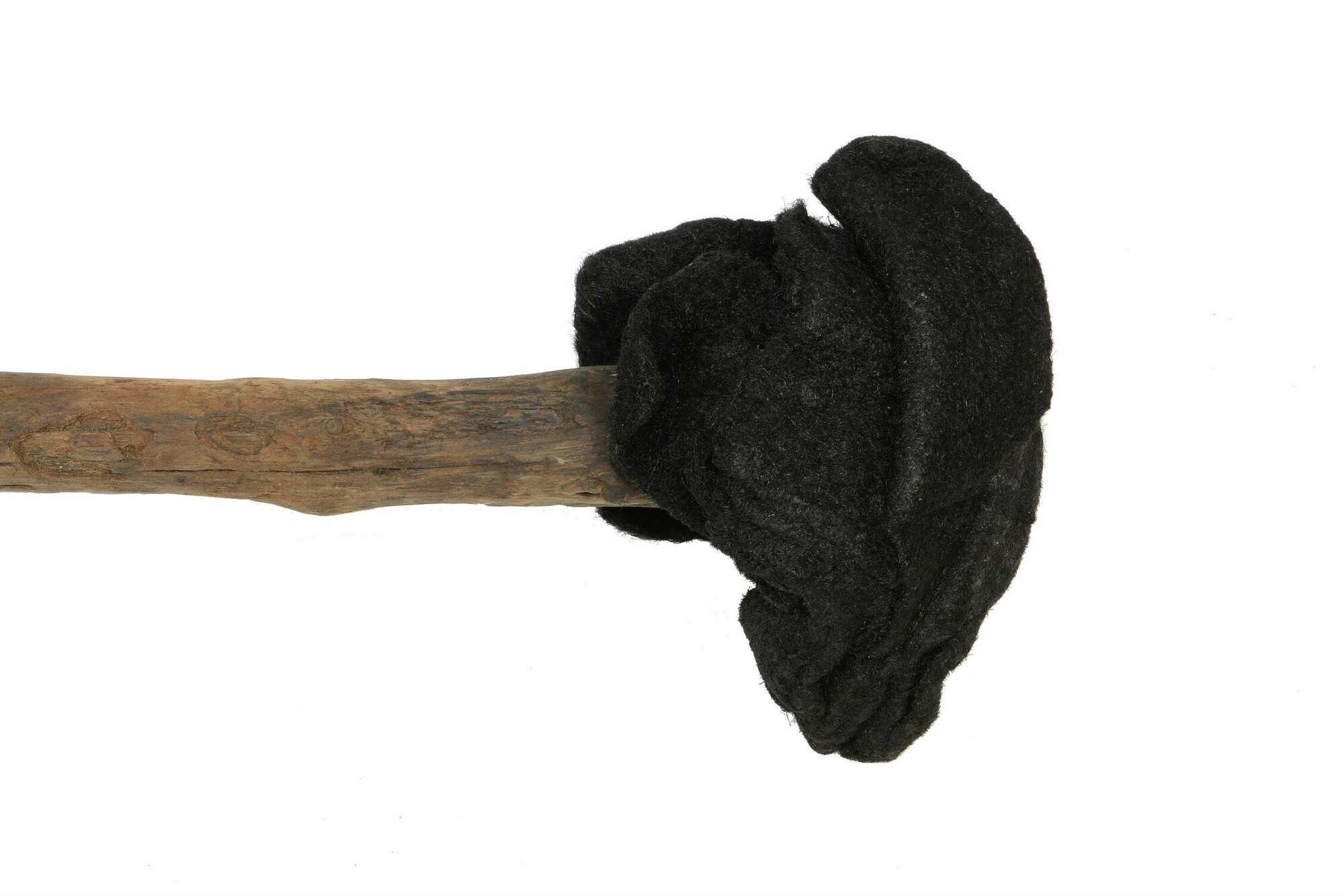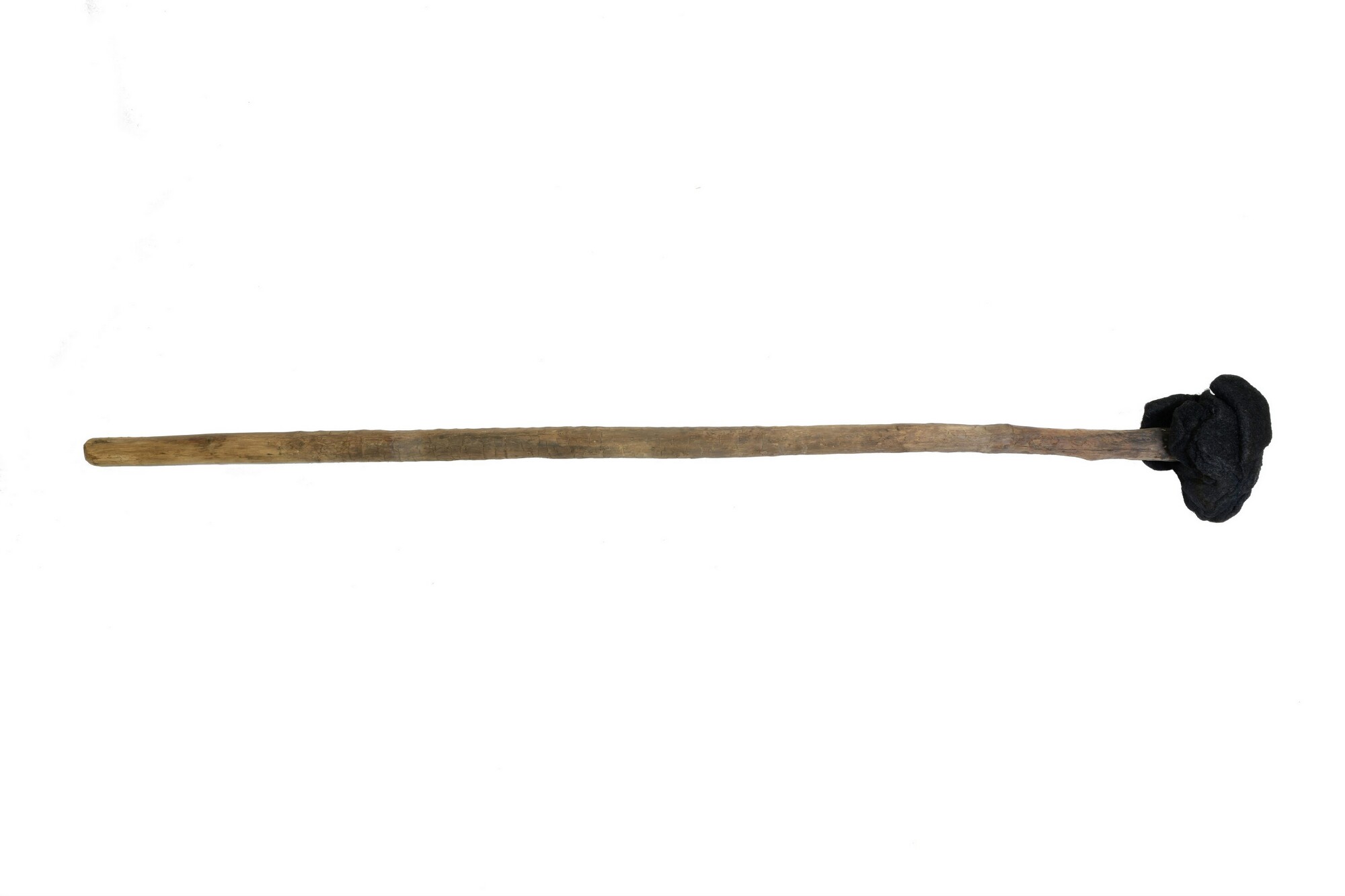 Teerstok of lapzwans; de leerprop is met een spijker op de stok bevestigd
