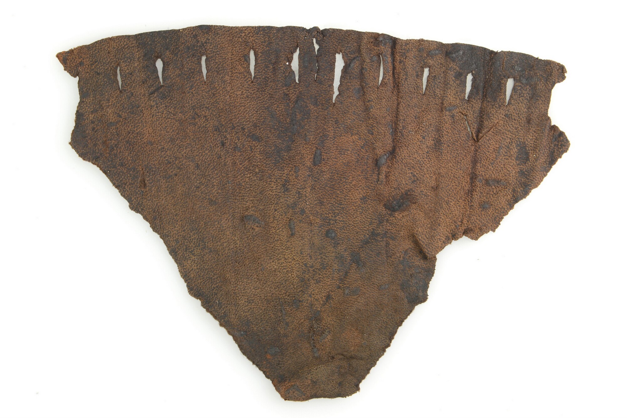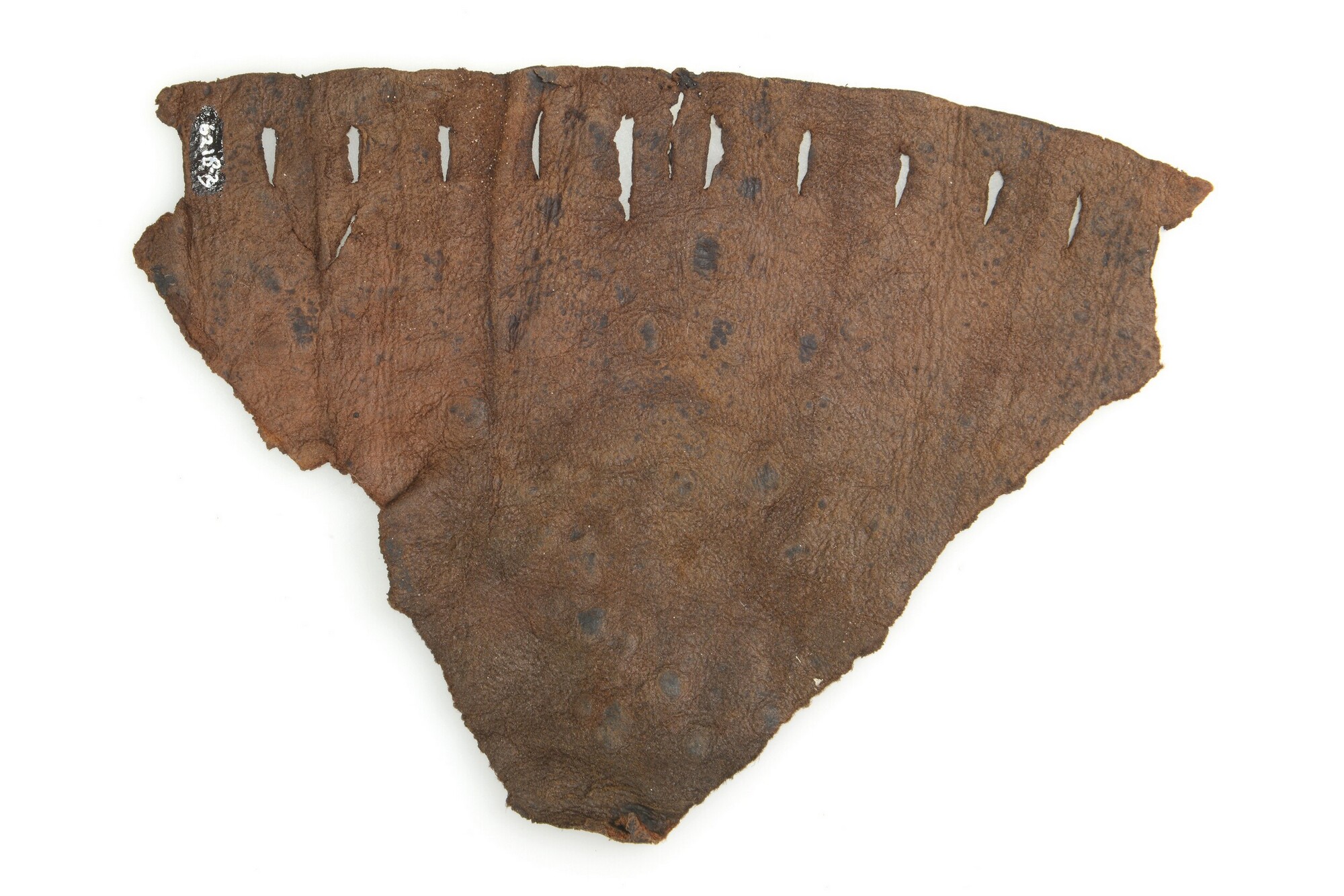 Beurs; fragment; waaiervormig met rechthoekige perforaties