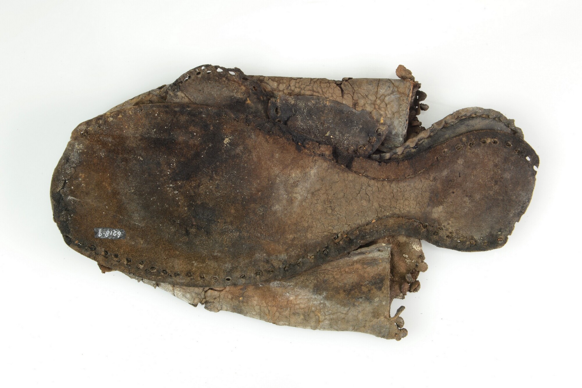 Schoen; Goubitz type 130; versierd: voorblad ingesneden en gekerf lijnen en zigzag