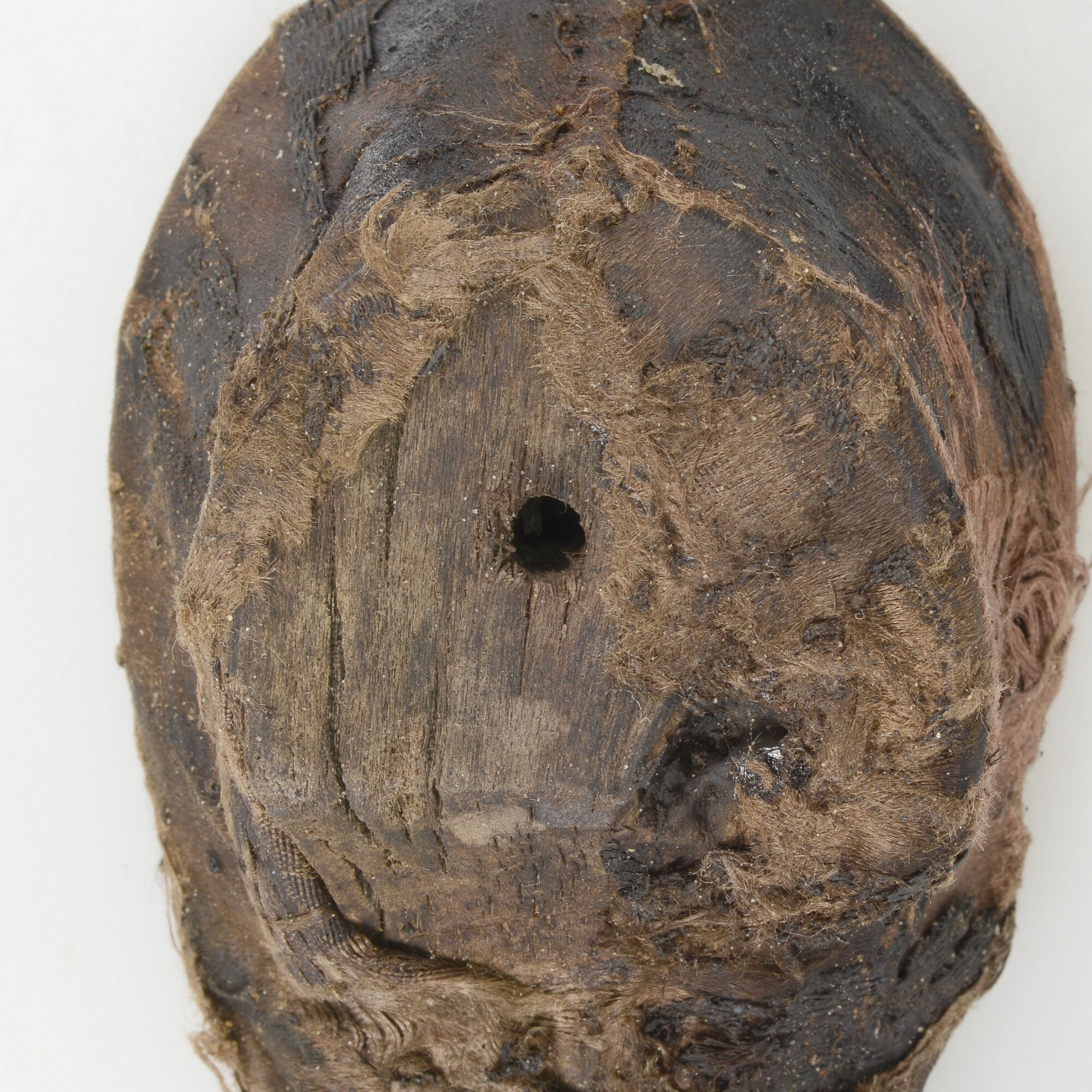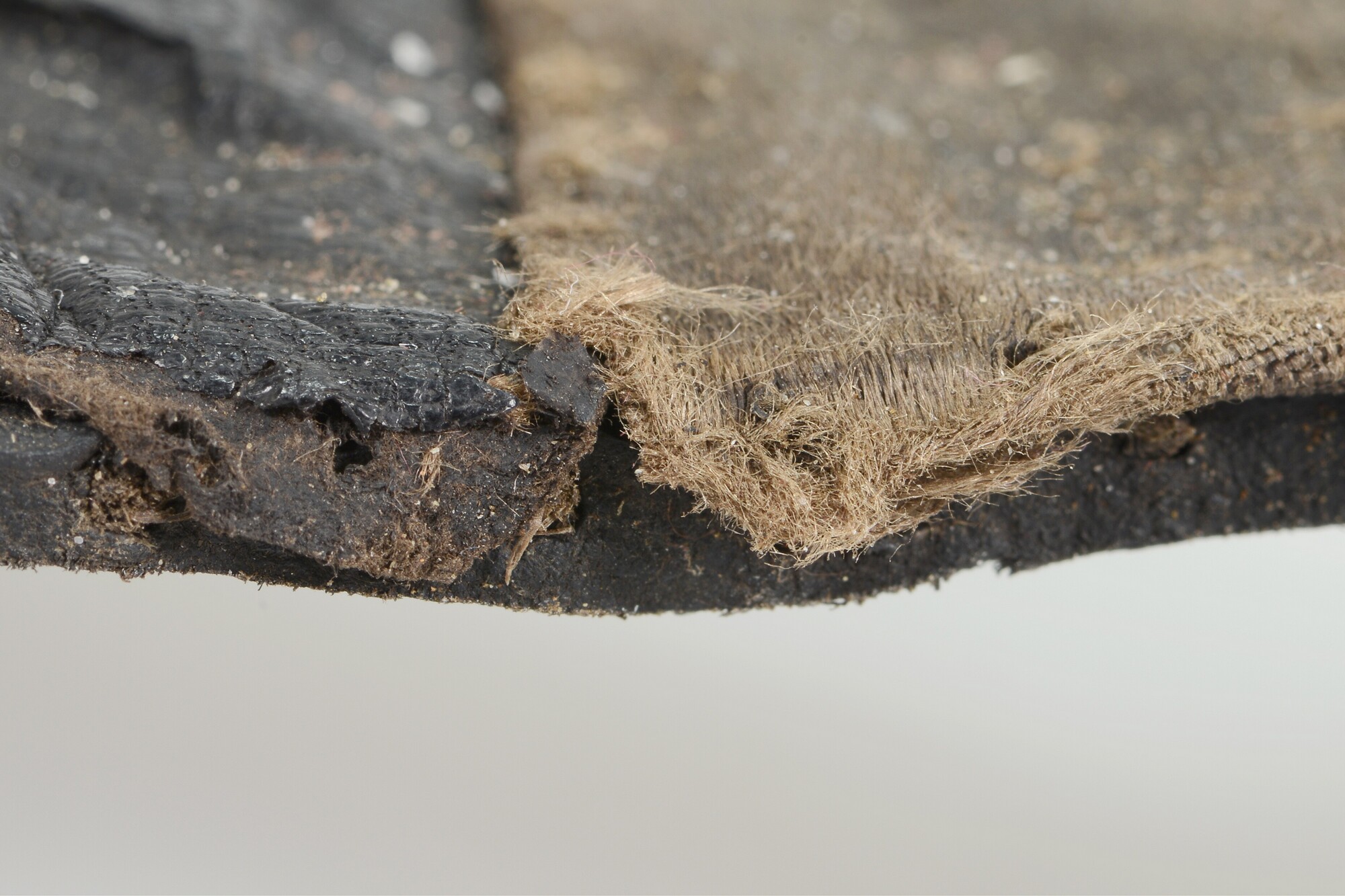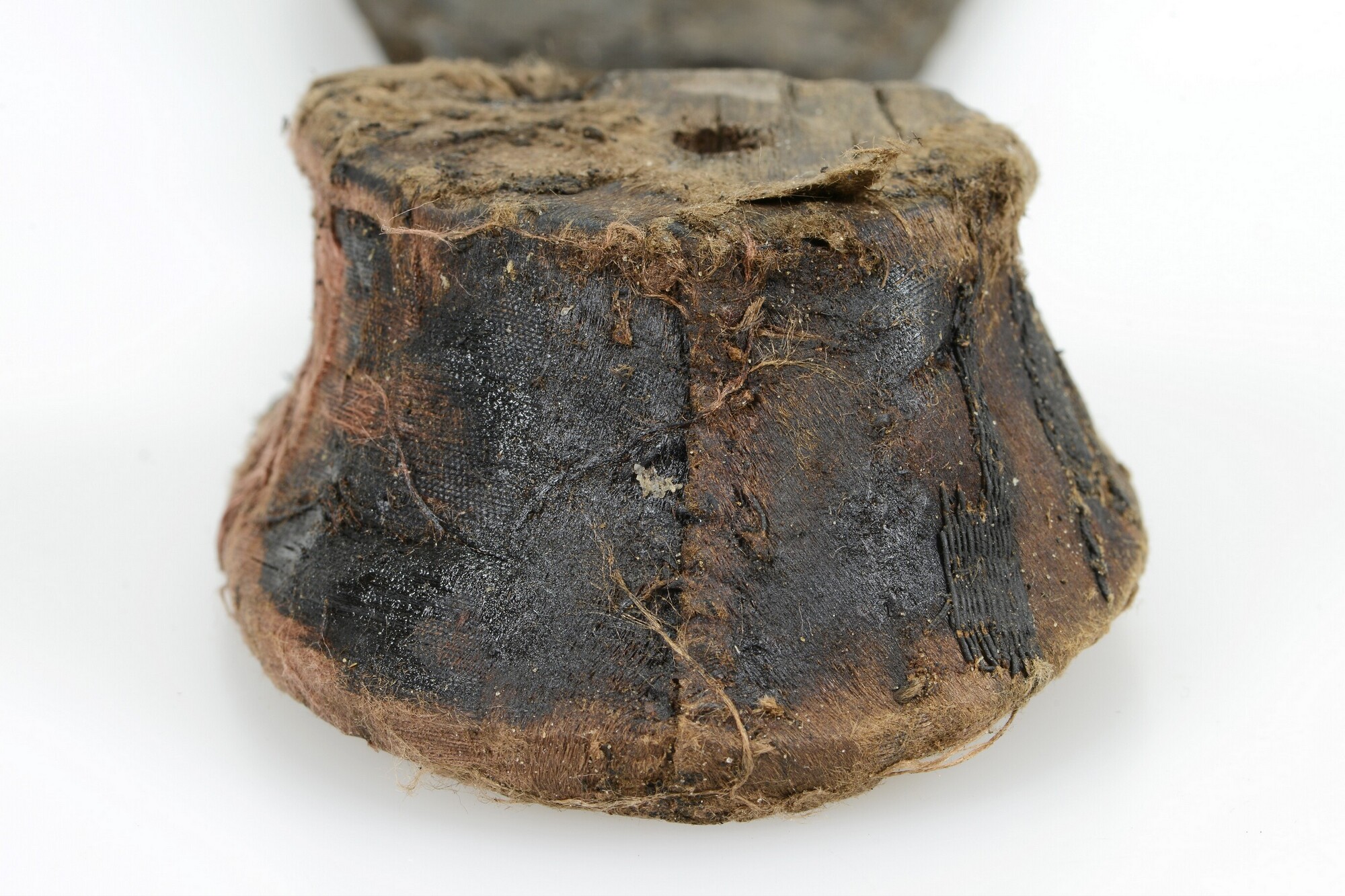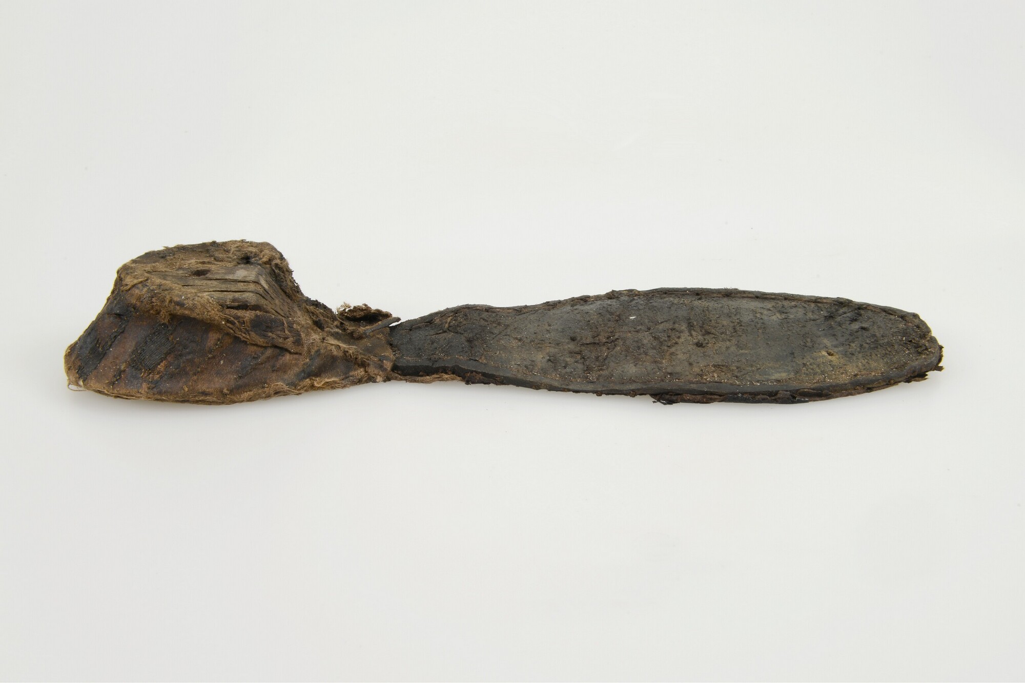 Binnenzool van leer met houten hak en resten zijden bekleding