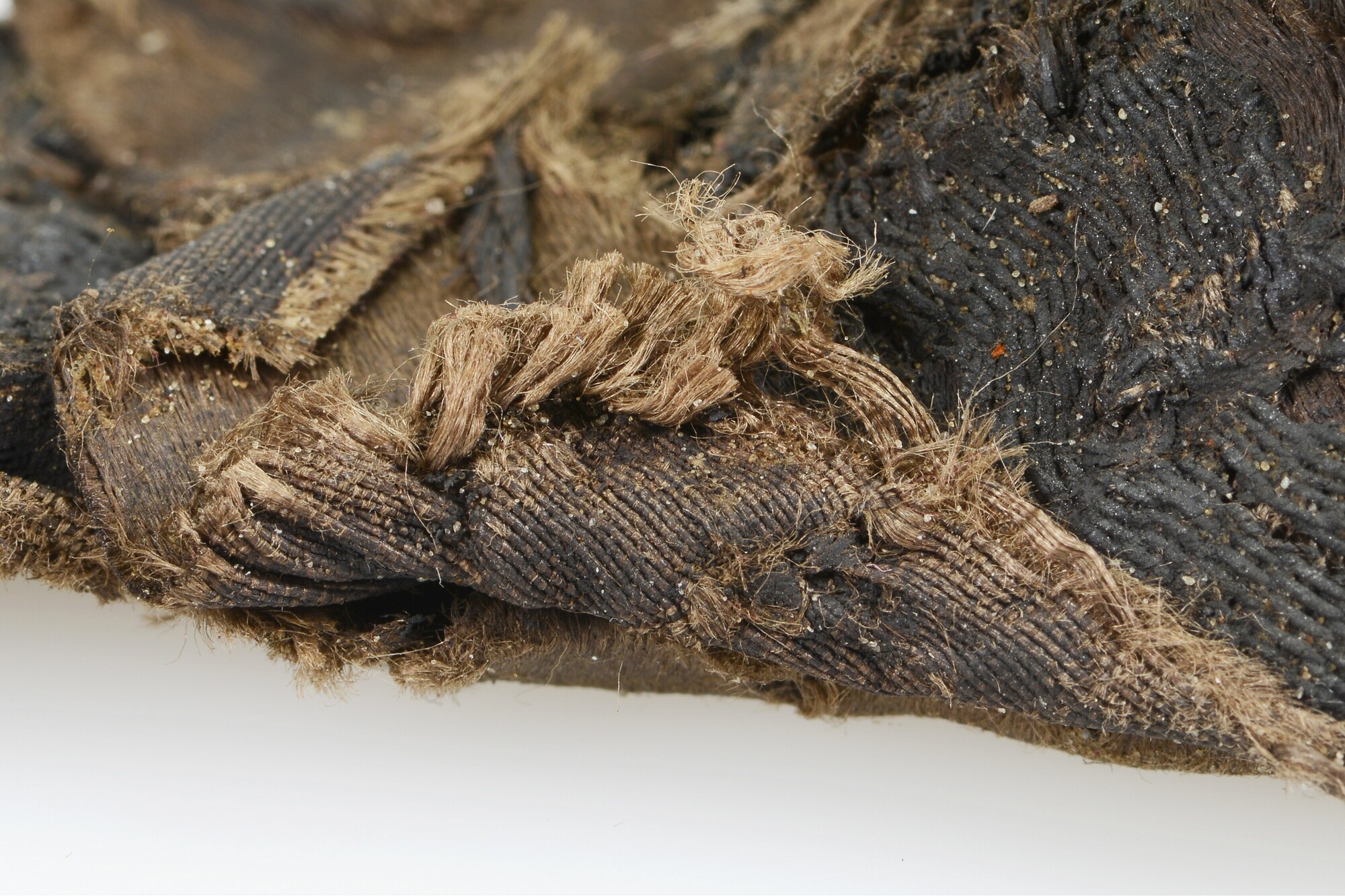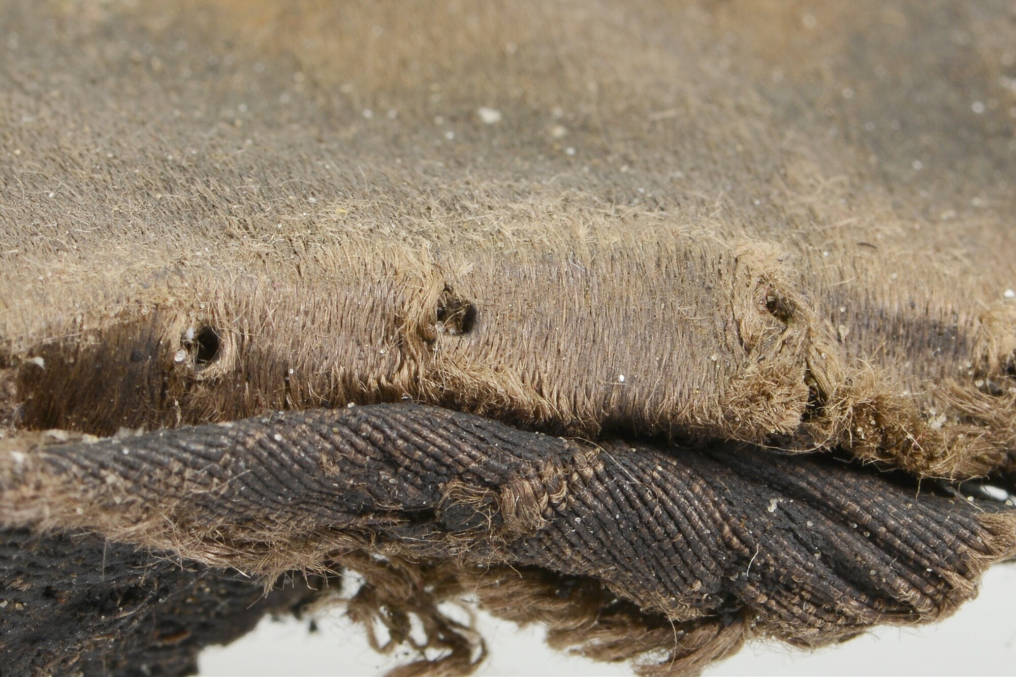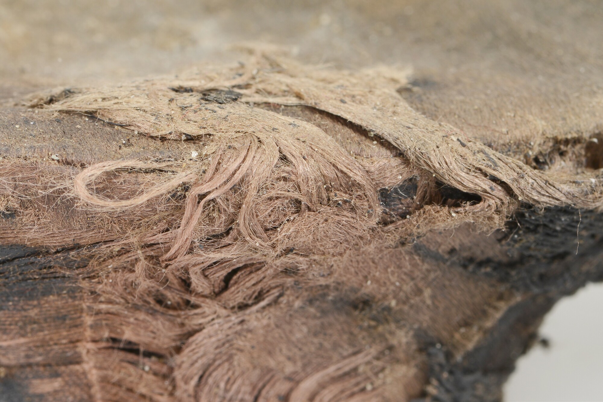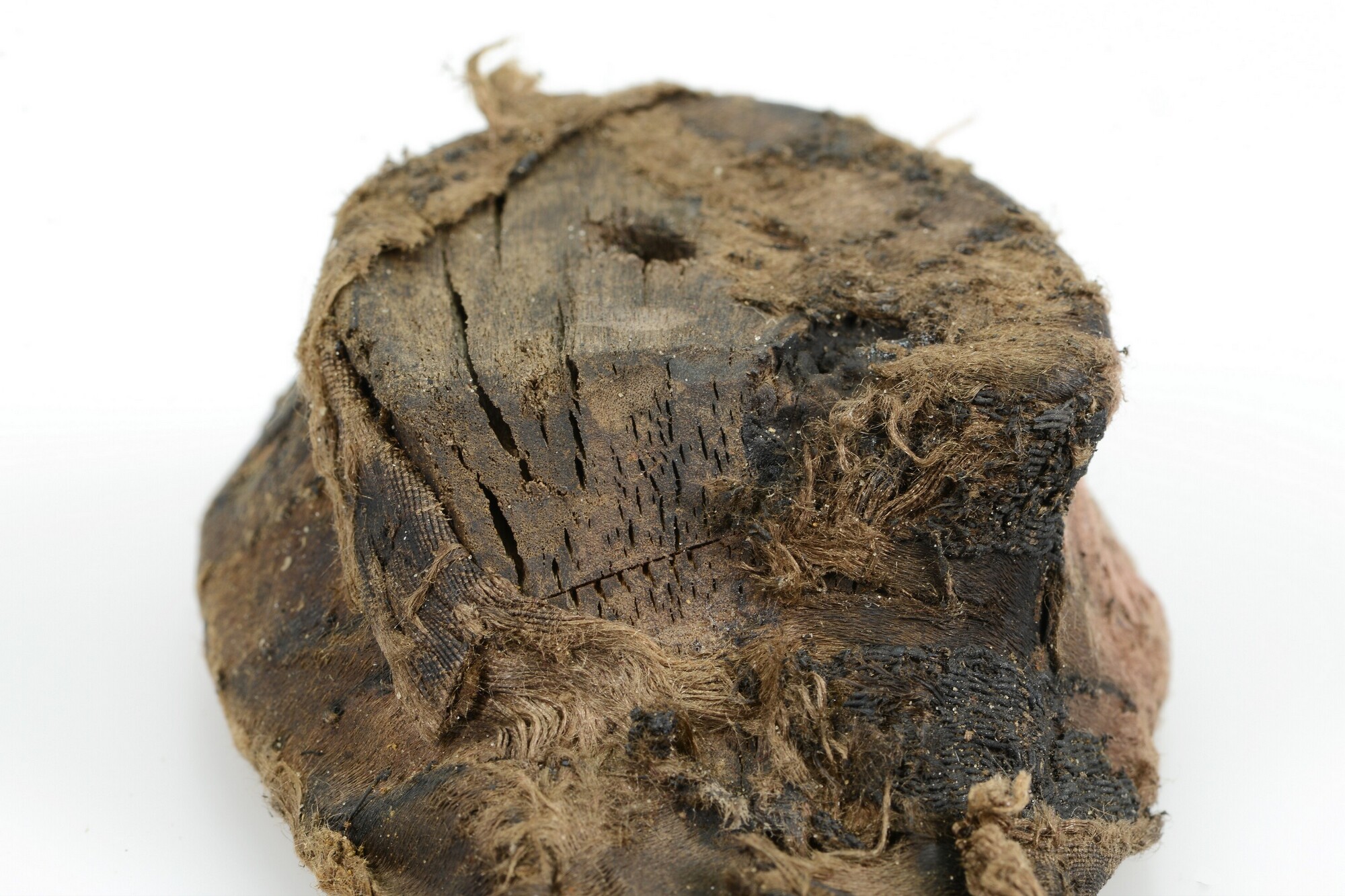 Binnenzool van leer met houten hak en resten zijden bekleding
