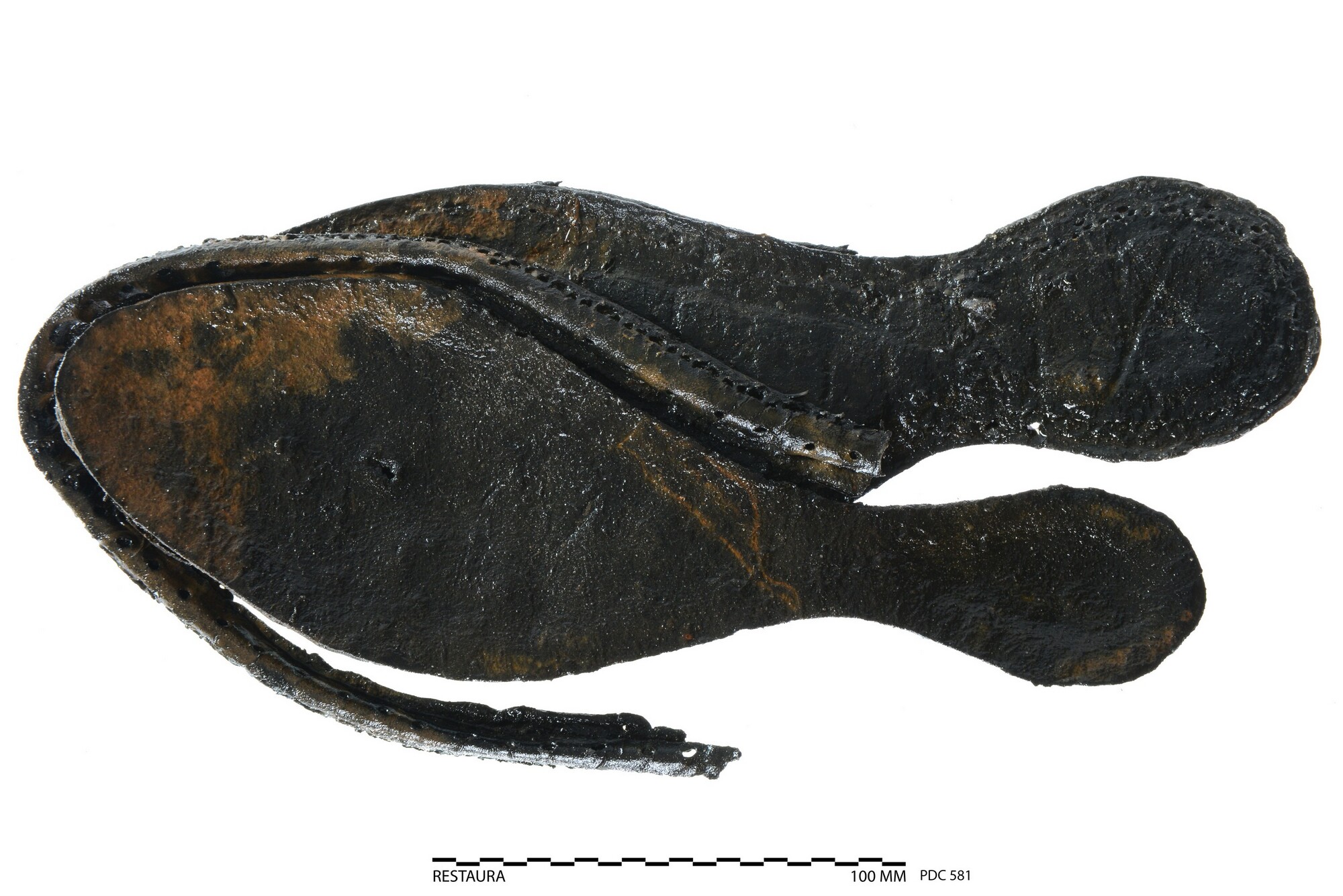 Schoenzool; drie fragmenten van een linkerschoen; tussenrand