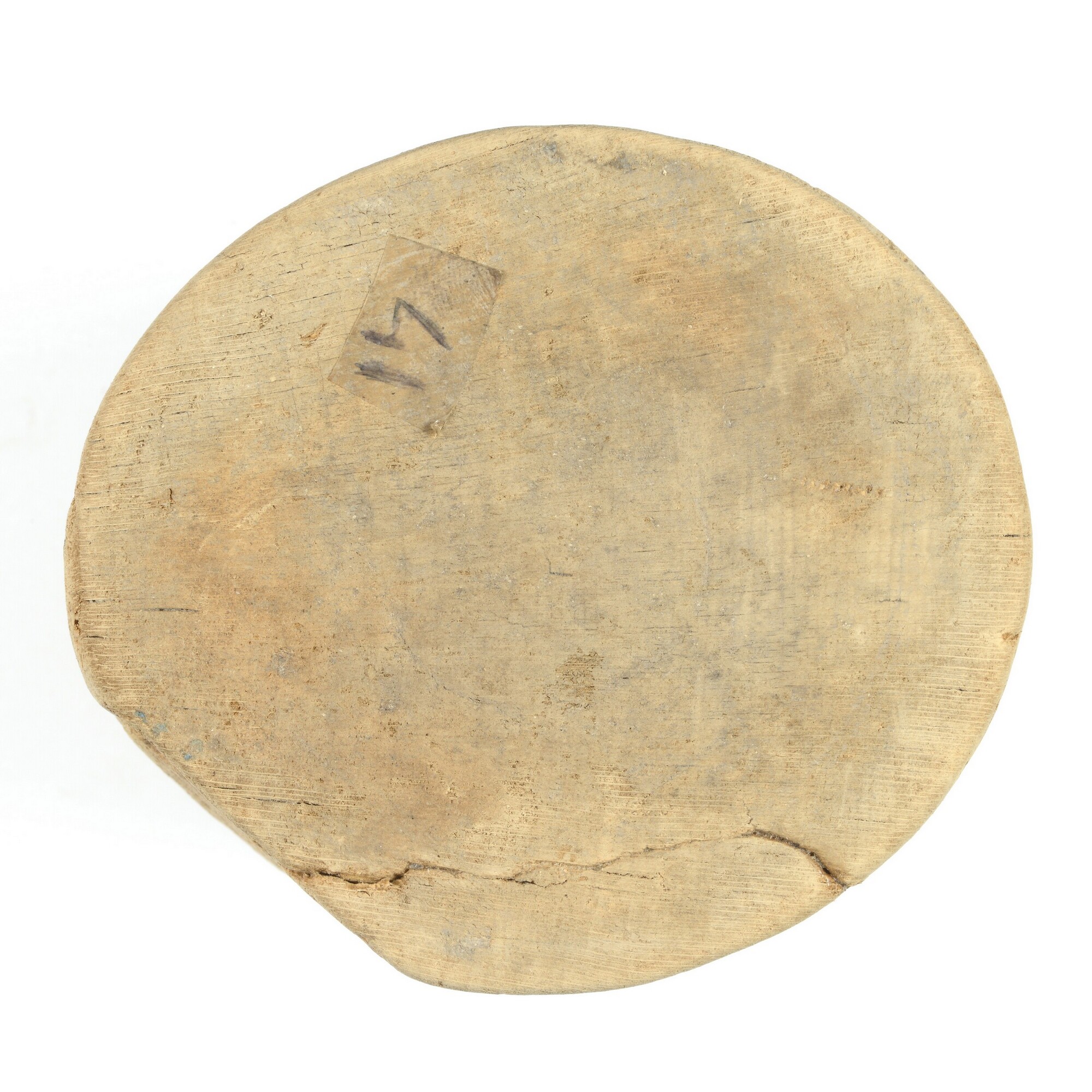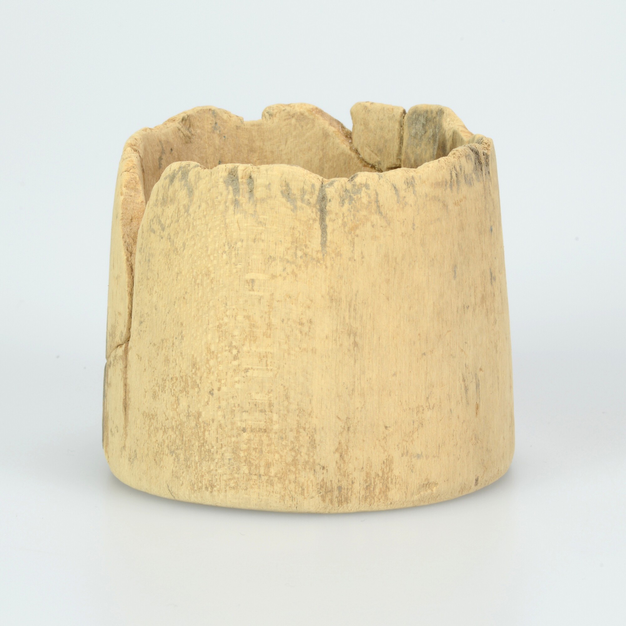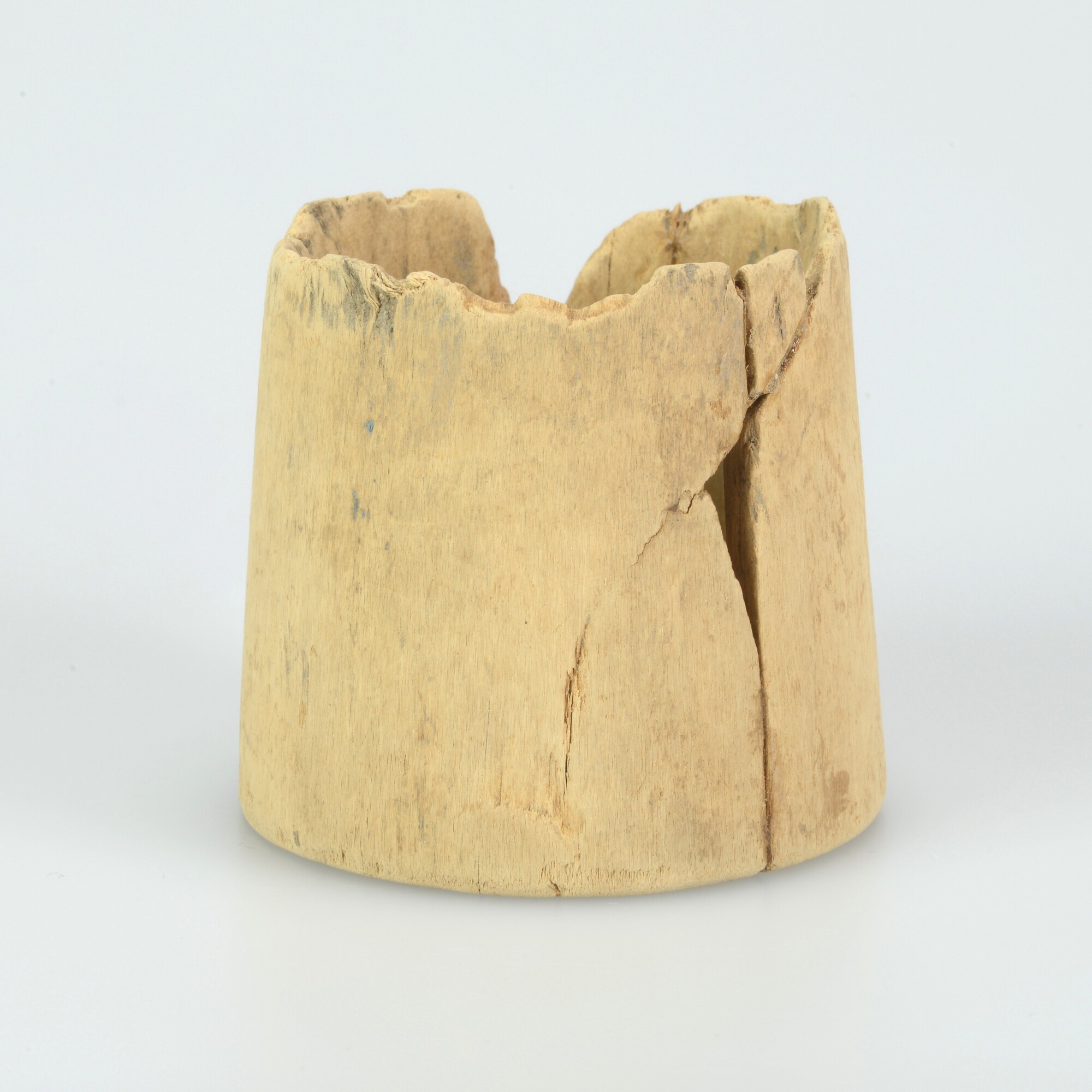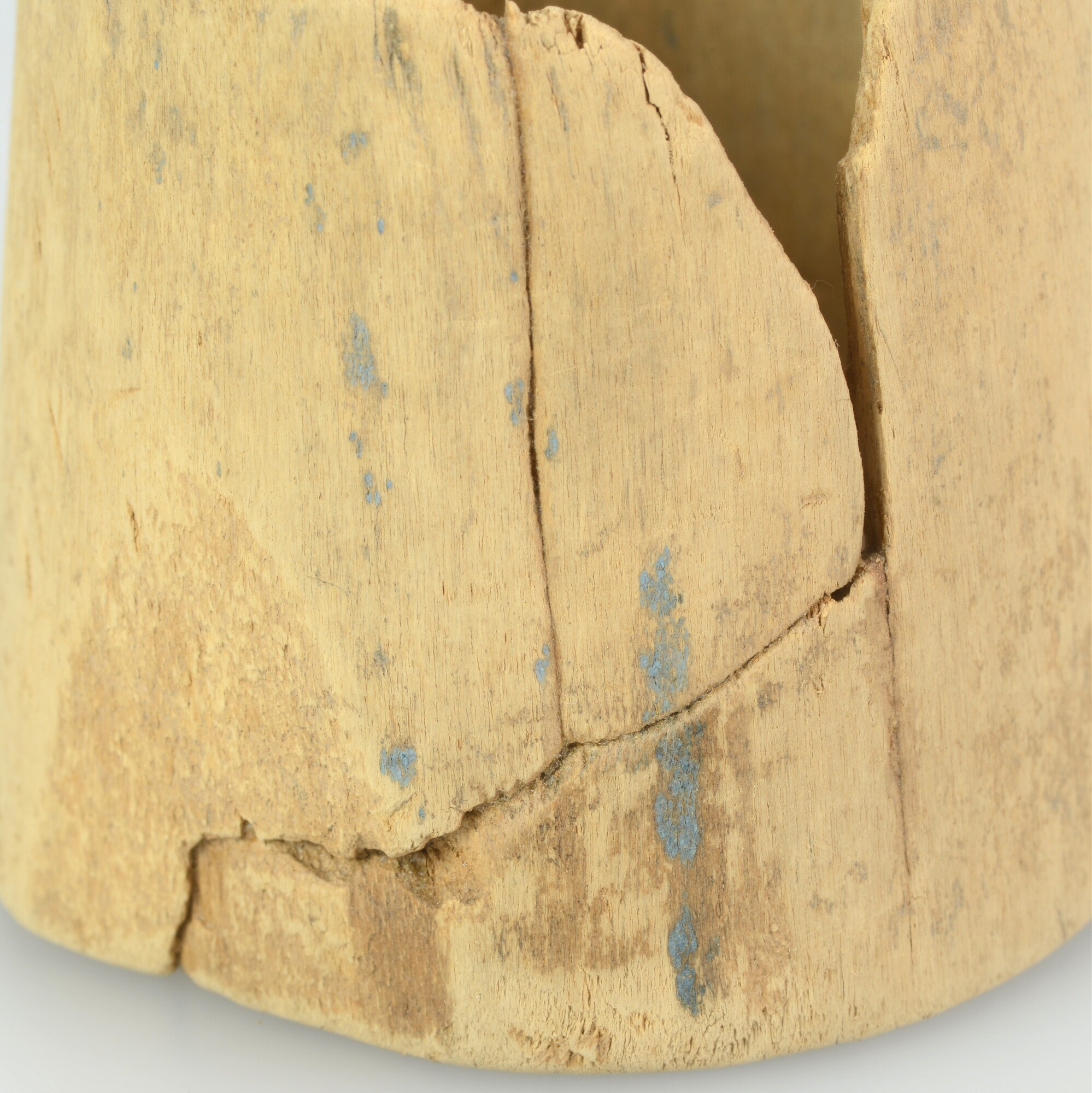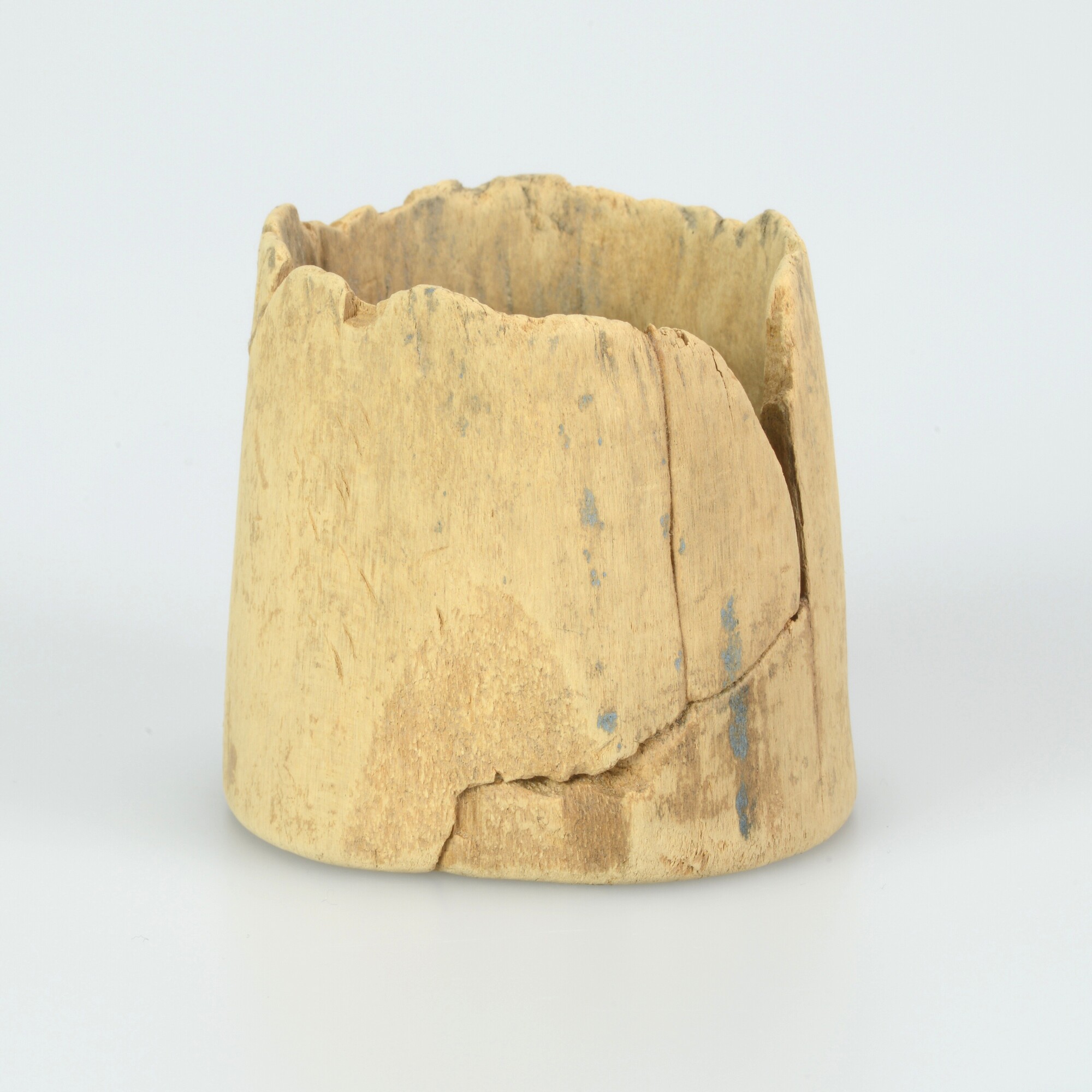 Pyxis; drinkbeker?; met rechte rand, op standvlak; resten beschildering van een blauwe verticale lijn