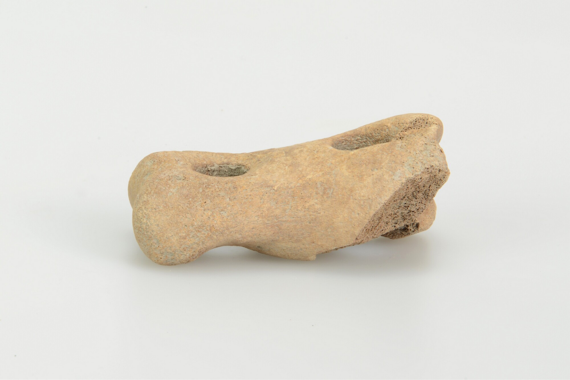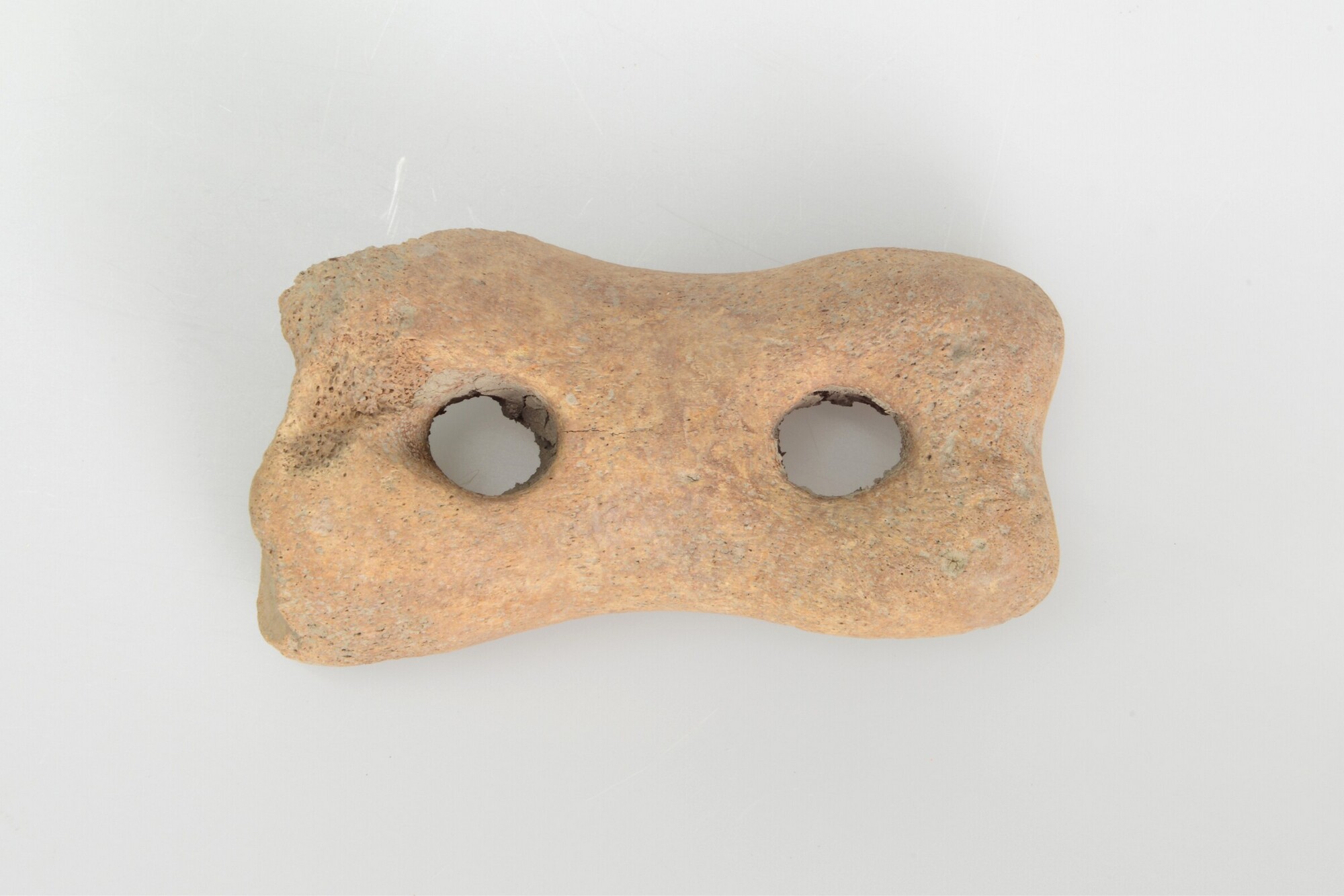 Touwspanner; twee doorboringen met slijtagesporen; vervaardigd uit een koot (phalanx 1, paard)