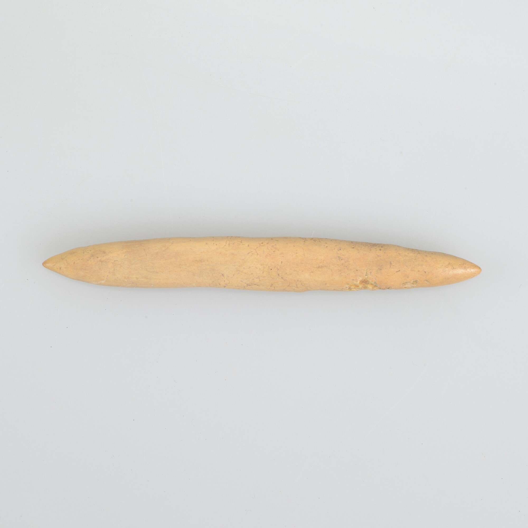 Staaf; vervaardigd uit een pijpbeen van een groot zoogdier; aangepunt aan beide uiteinden