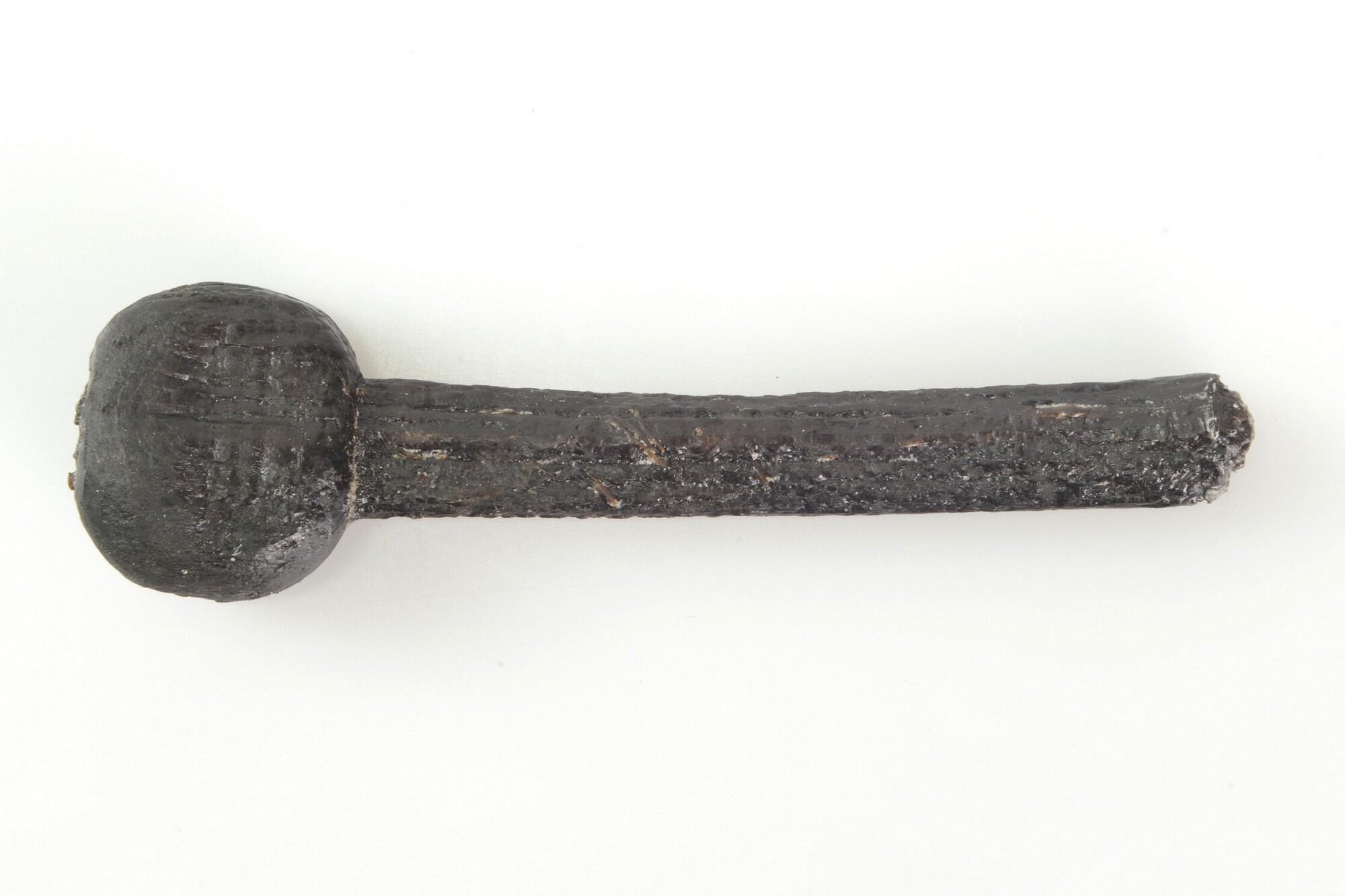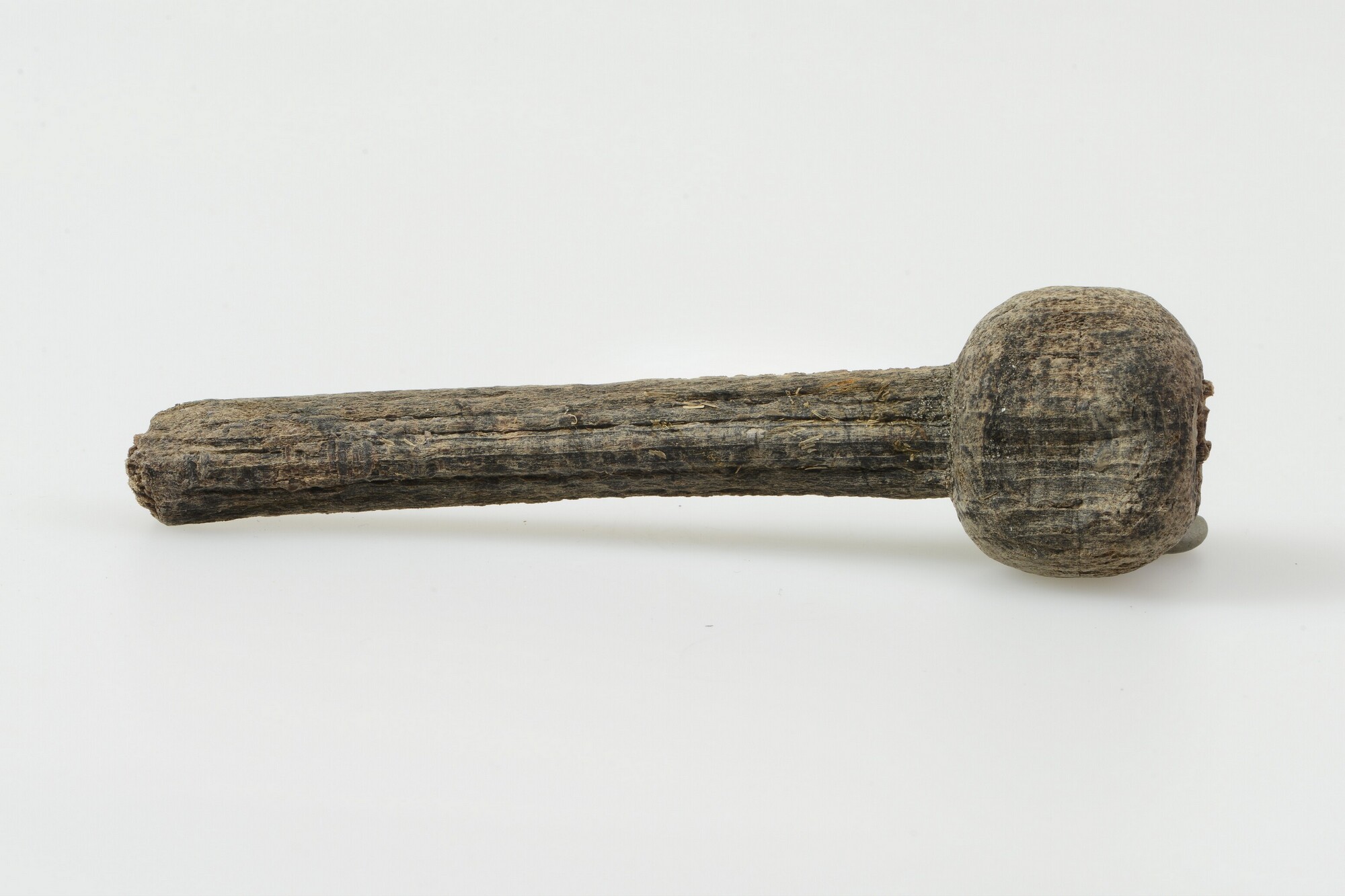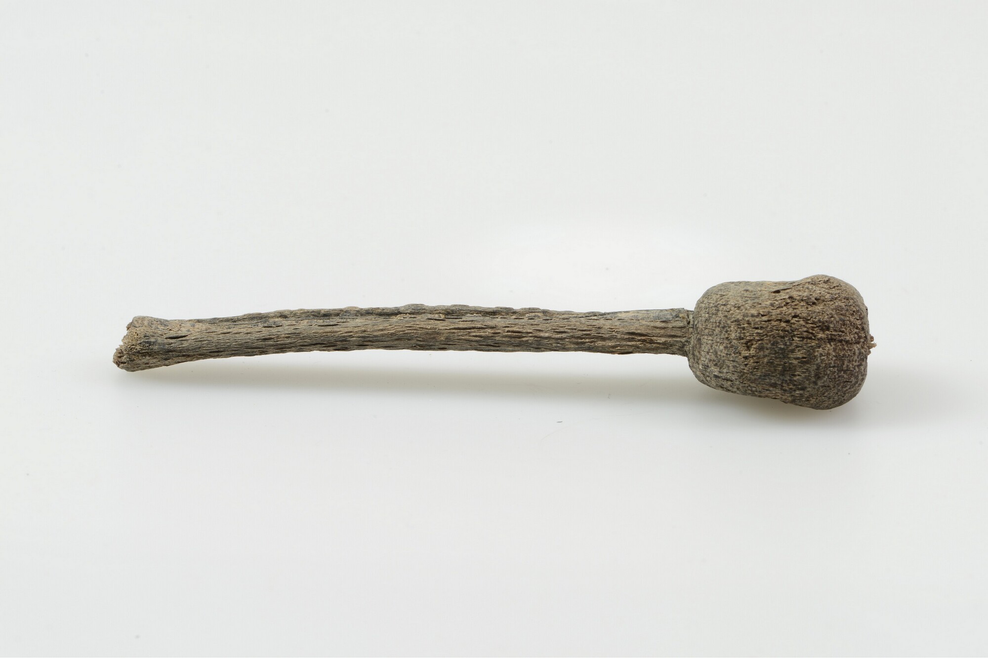 Lontstok; fragment; deel van het handvat; onversierd; uit gekliefd stamhout; gewicht: 22 gram