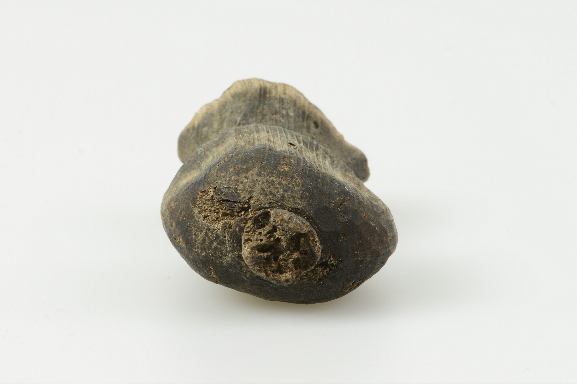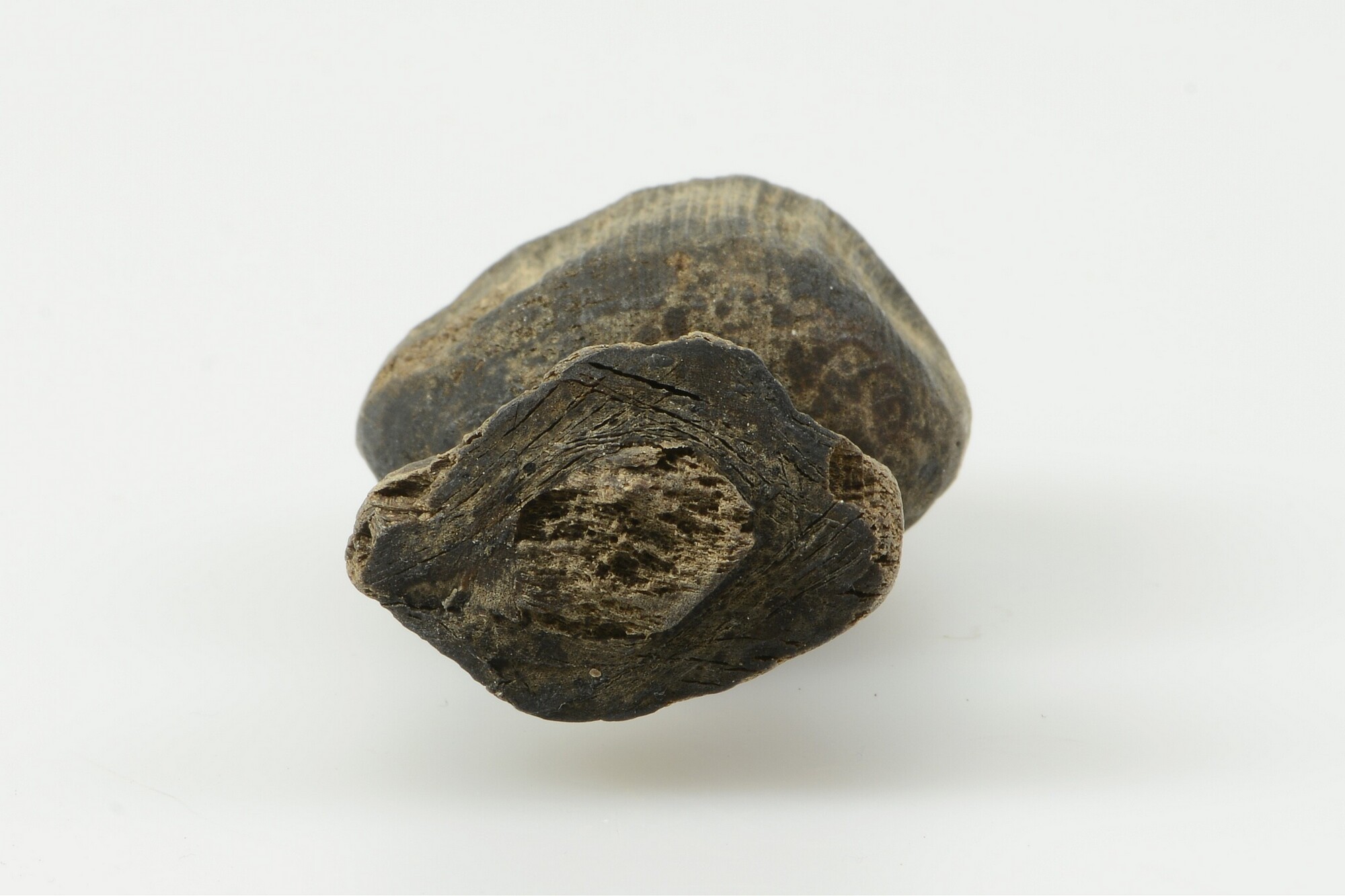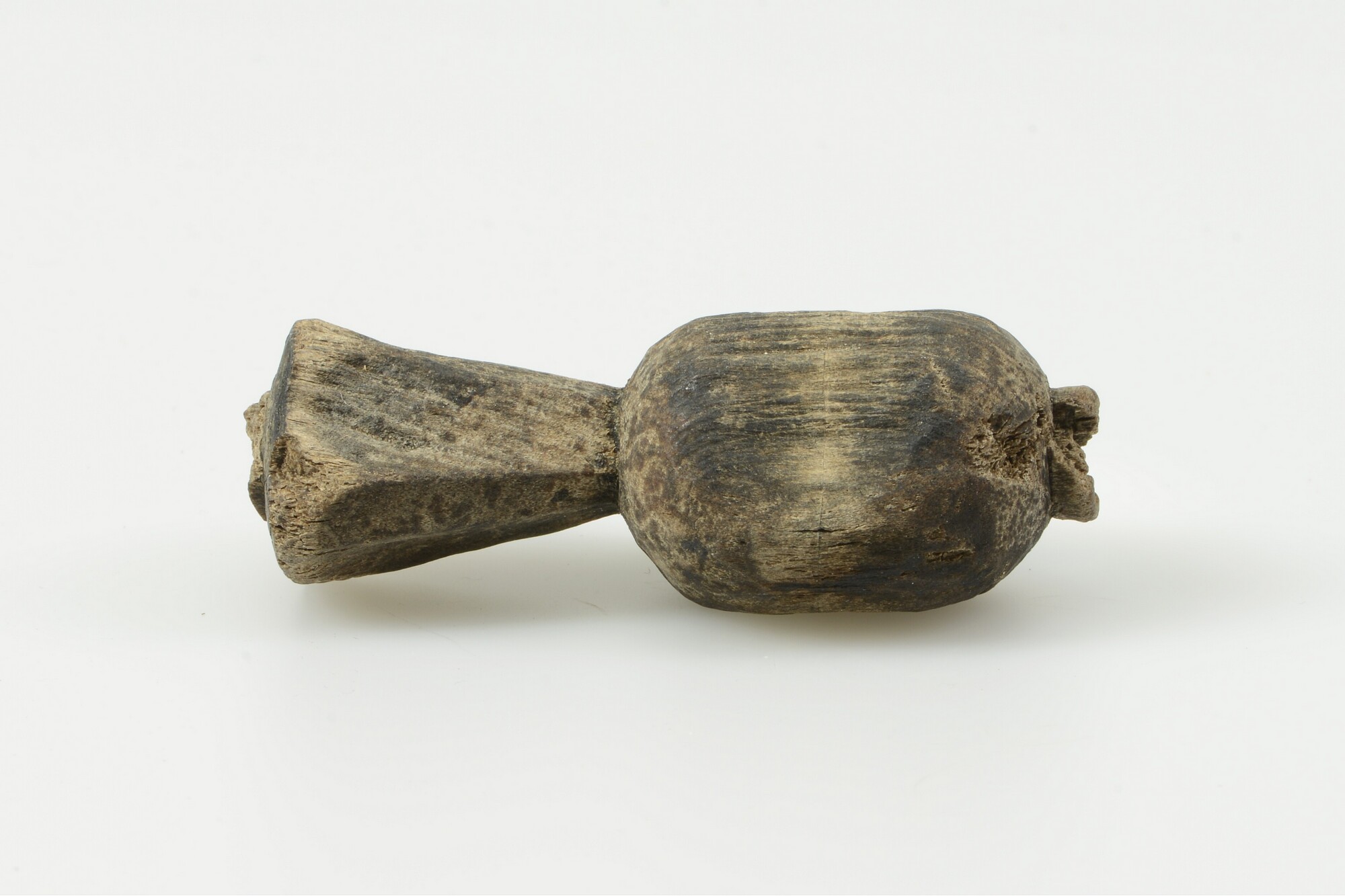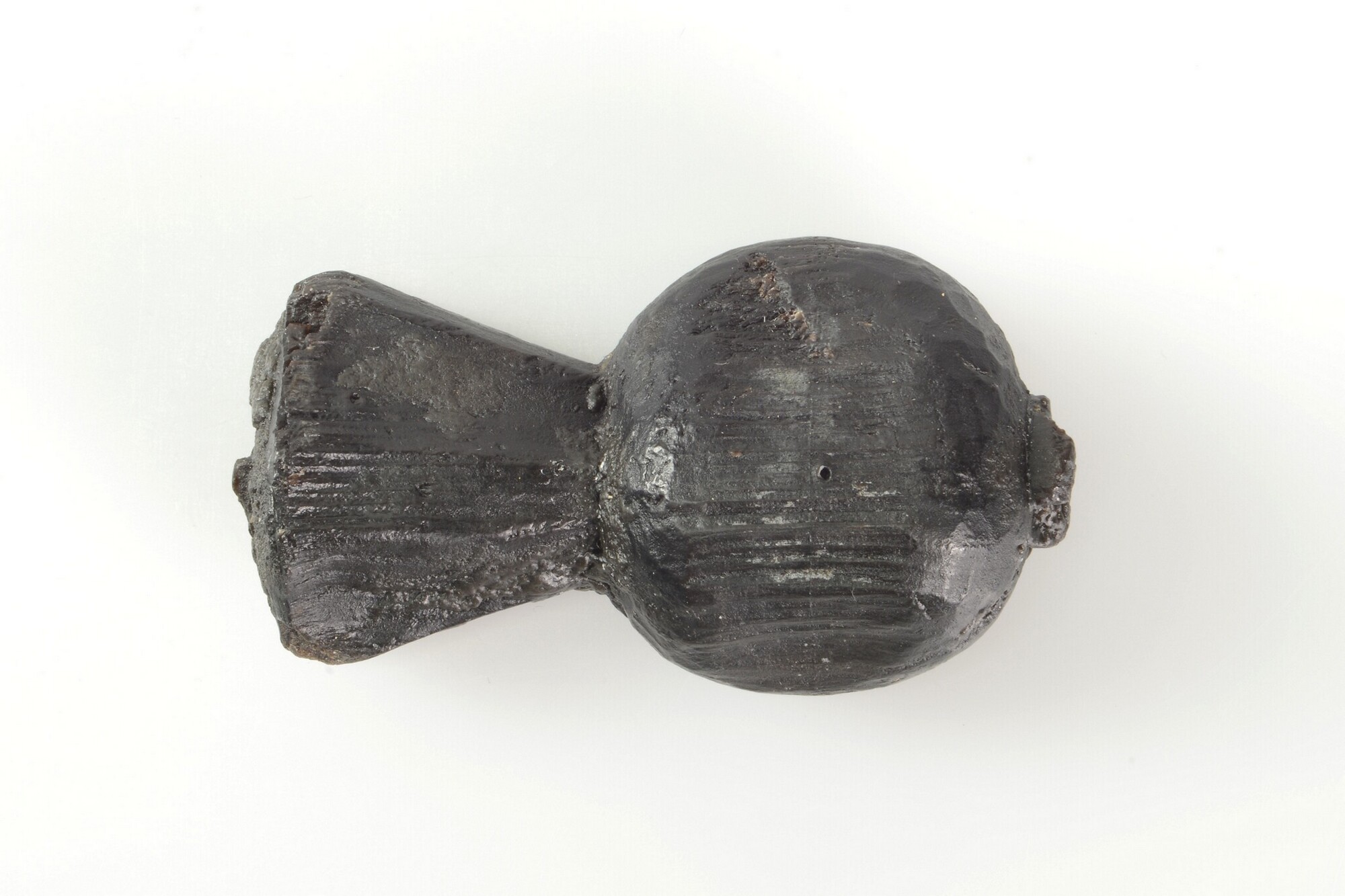 Lontstok; fragment; achterste knop van het handvat met achtkantig gefacetteerde uitloper naar de greep; onversierd; gewicht: 57 gram