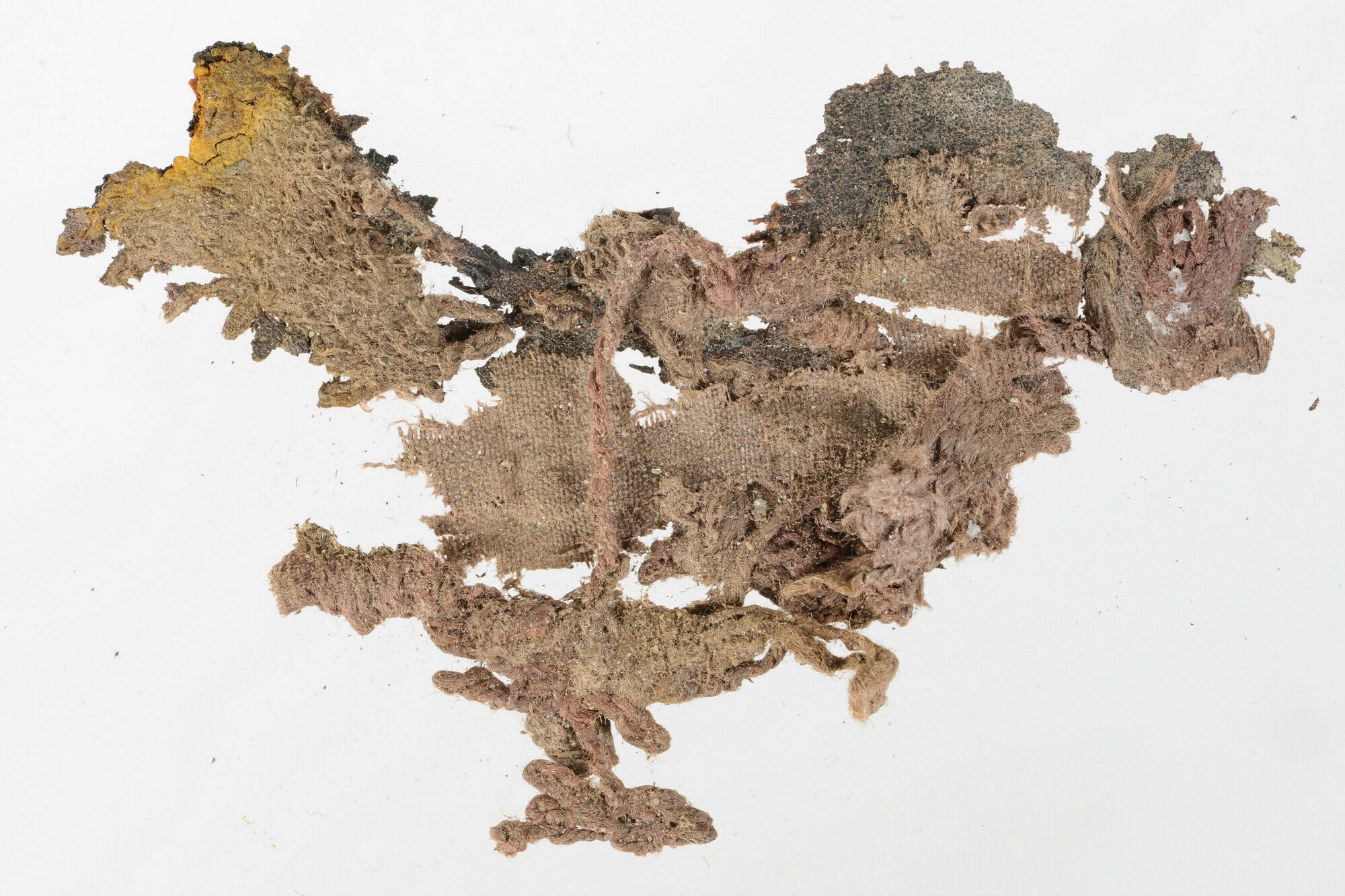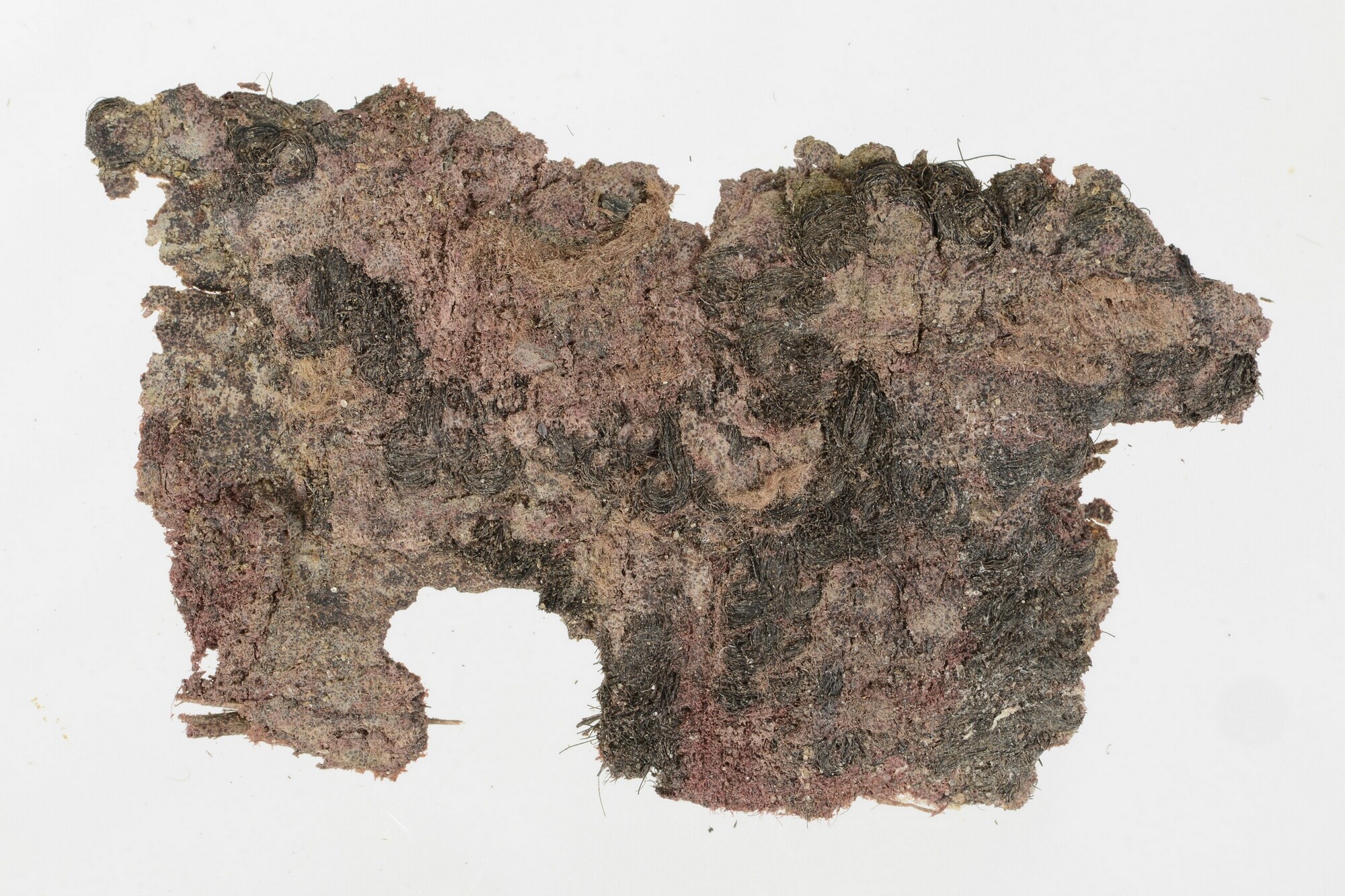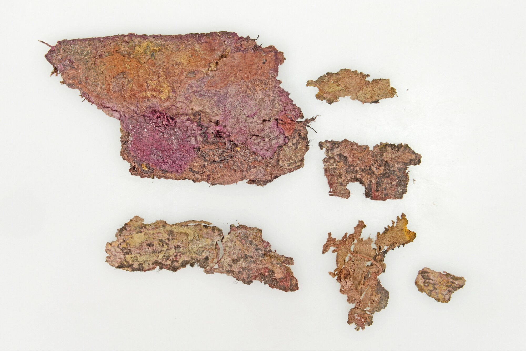 Tapijt; 6 fragmenten, die op plank 6284-233 vast zaten; restjes hout van de plank eraan