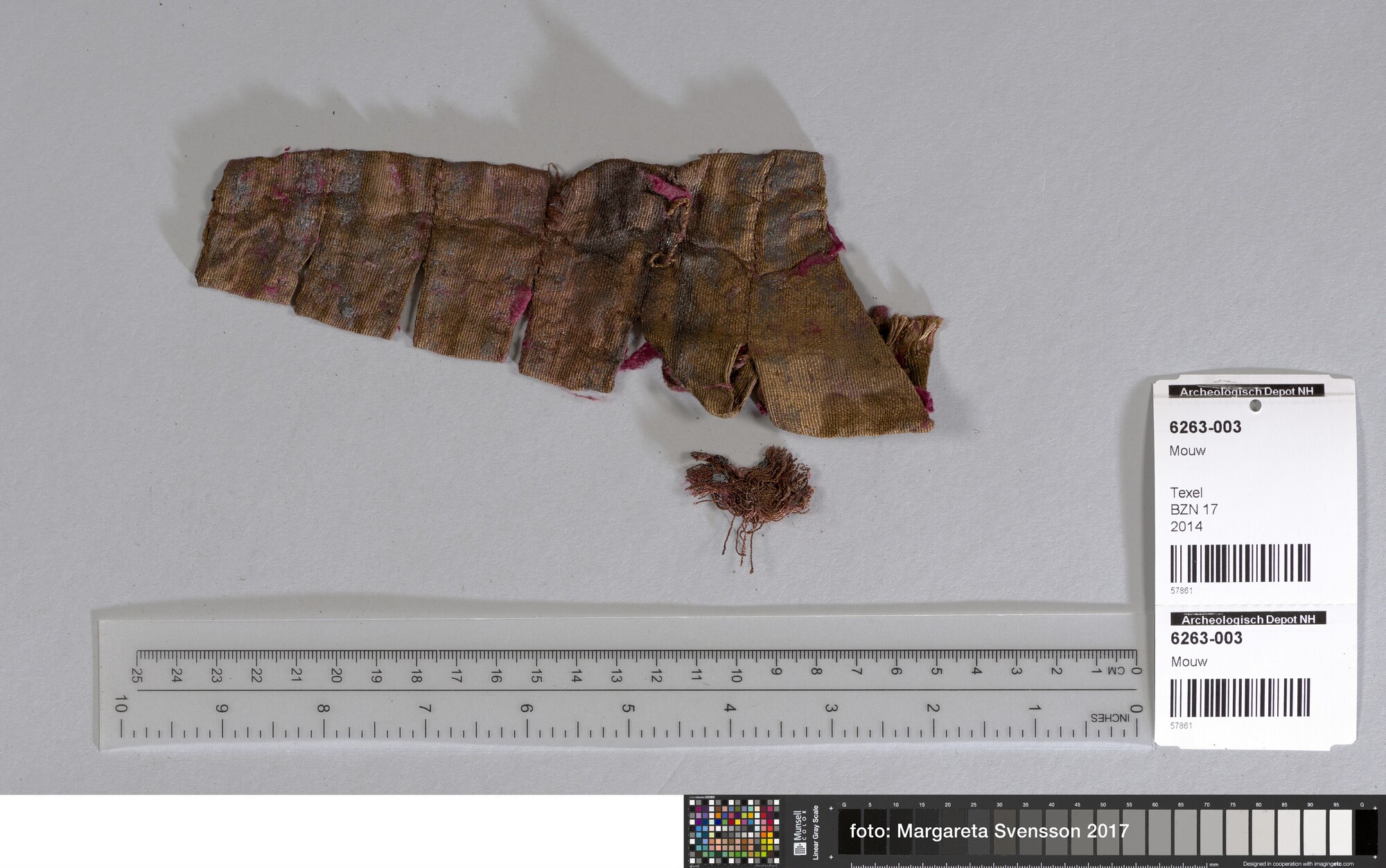 Fragment van een mouwkap (bragoen); ingeweven vlechtmotief van zilverlamellen; vormt één geheel met 6263-021B