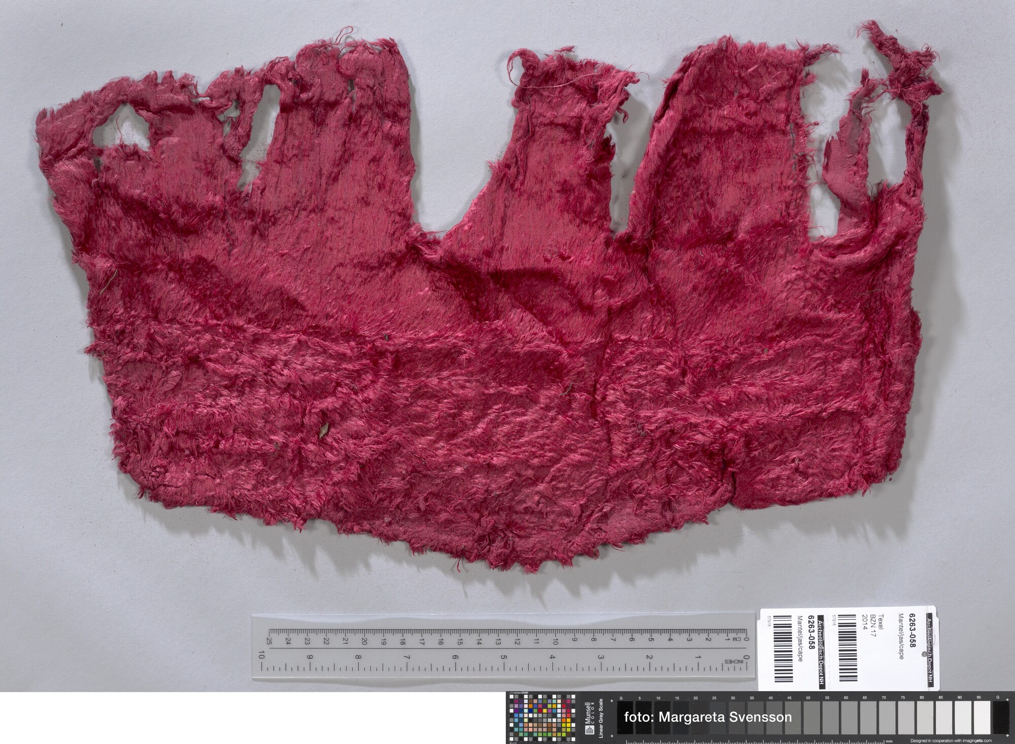 Fragment; langpolig velours; mogelijk onderdeel van cape of voering daarvan