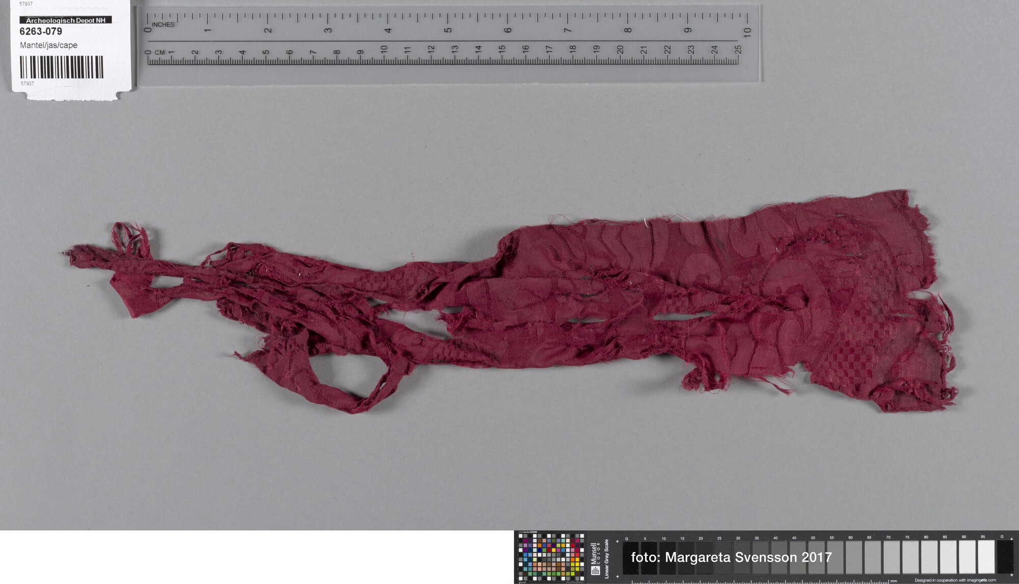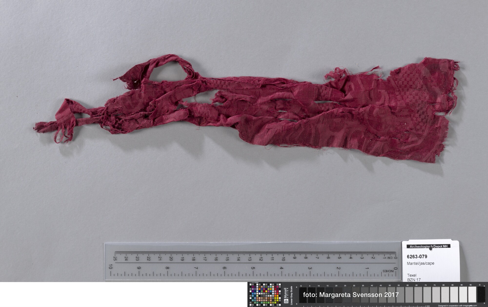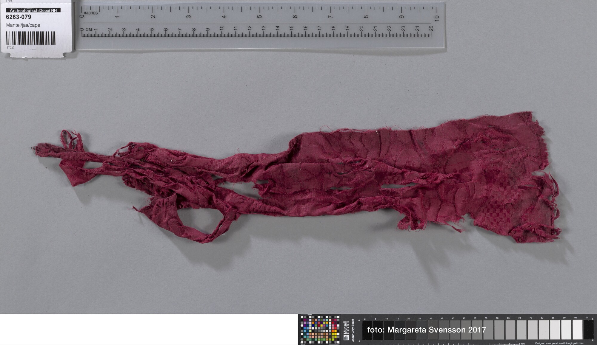 Fragment; damast geweven zijde met geometrisch en floraal motief