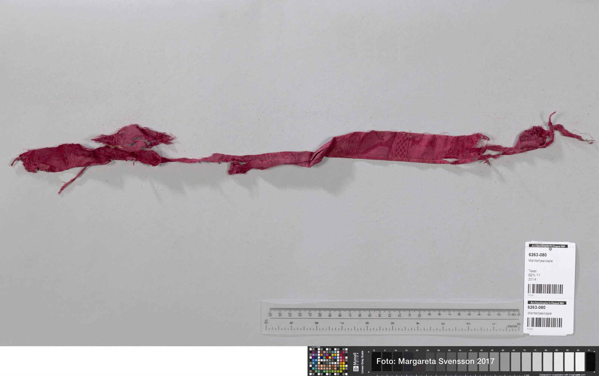 Fragment; damast geweven zijde met geometrisch en floraal motief