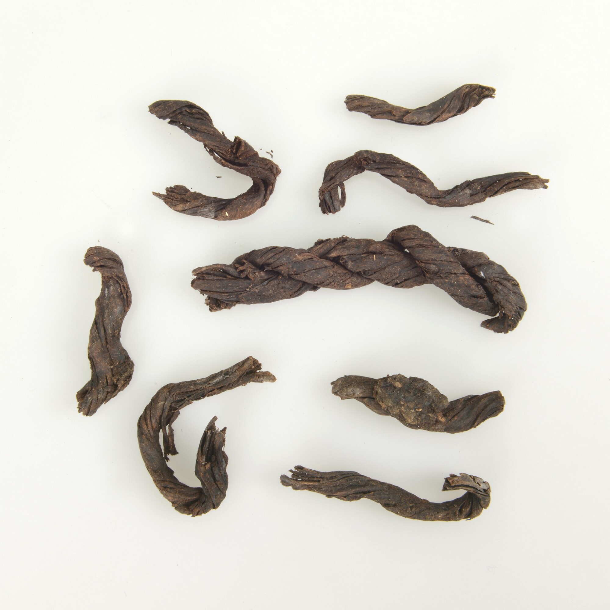 Touw; plantenvezels; meerdere fragmenten van getwijnde bundels plantenvezels