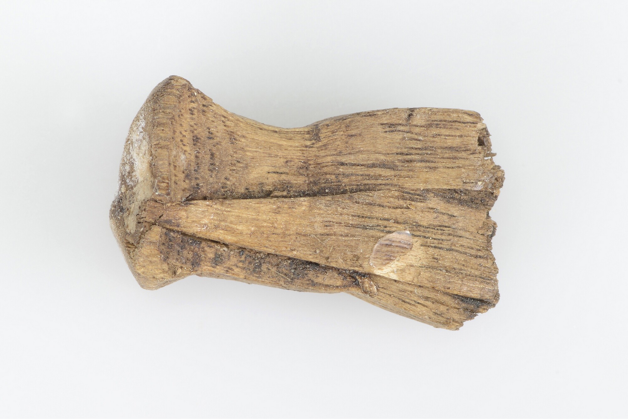 5 fragmenten van een hoepel van een waterput (zilverspar) en 4 vierkantige deuvels uit essenhout