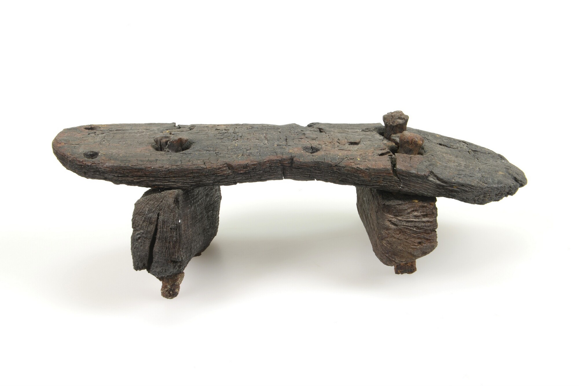 Trip; zool met gaten voor bovenleer, twee dwarse latten met ijzeren nagels bevestigd aan zool
