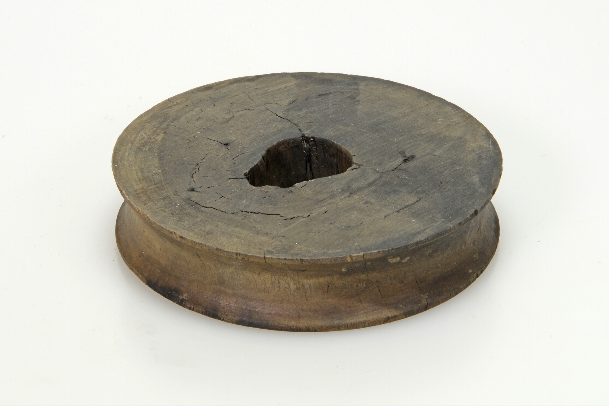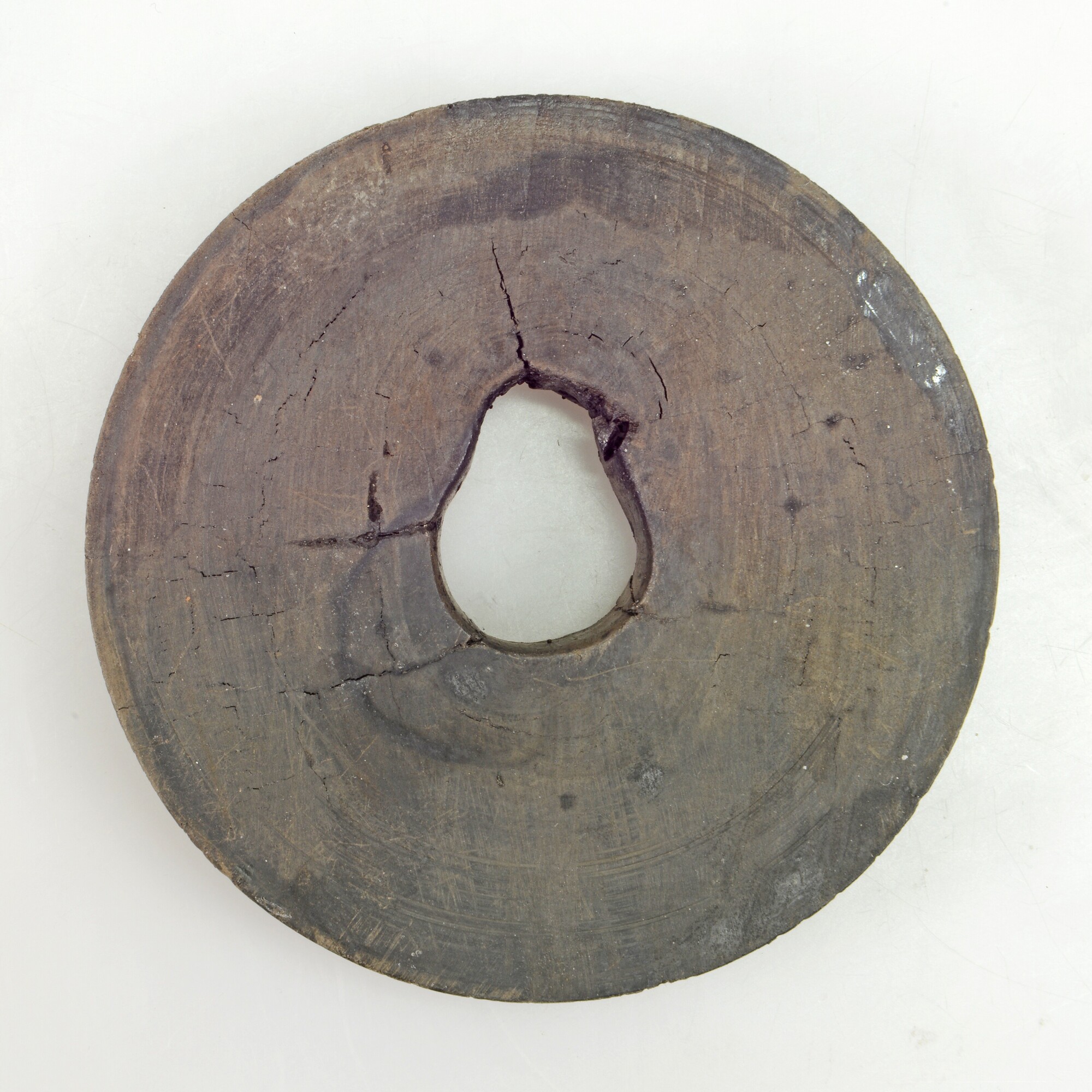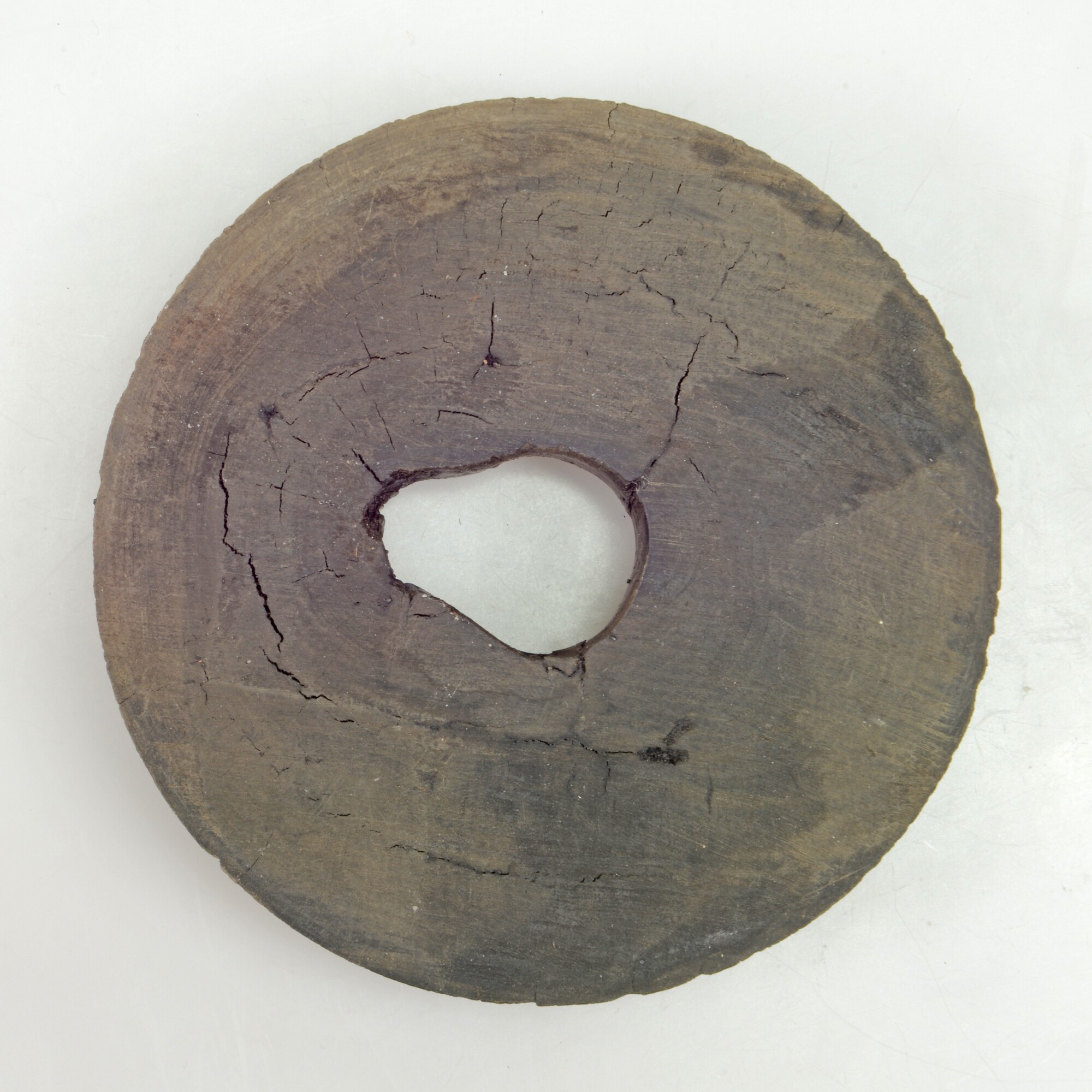 Blok fragment, schijf; het gat van de as is uitgesleten
