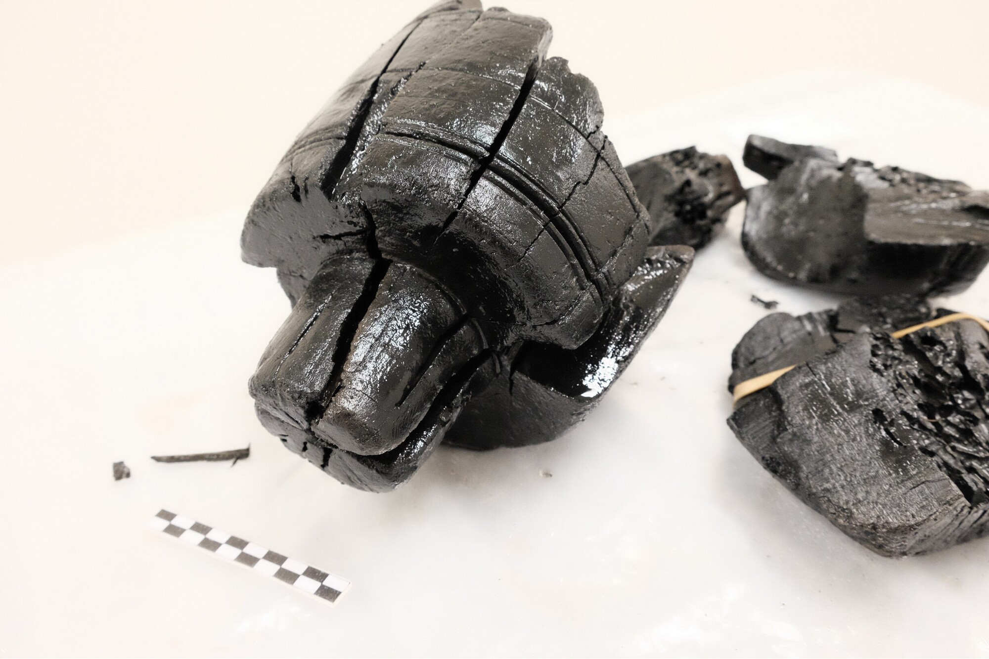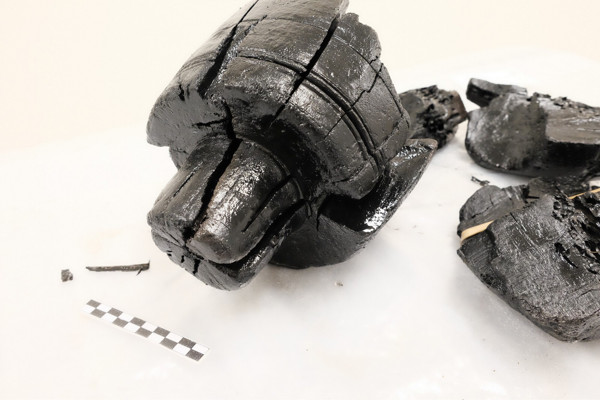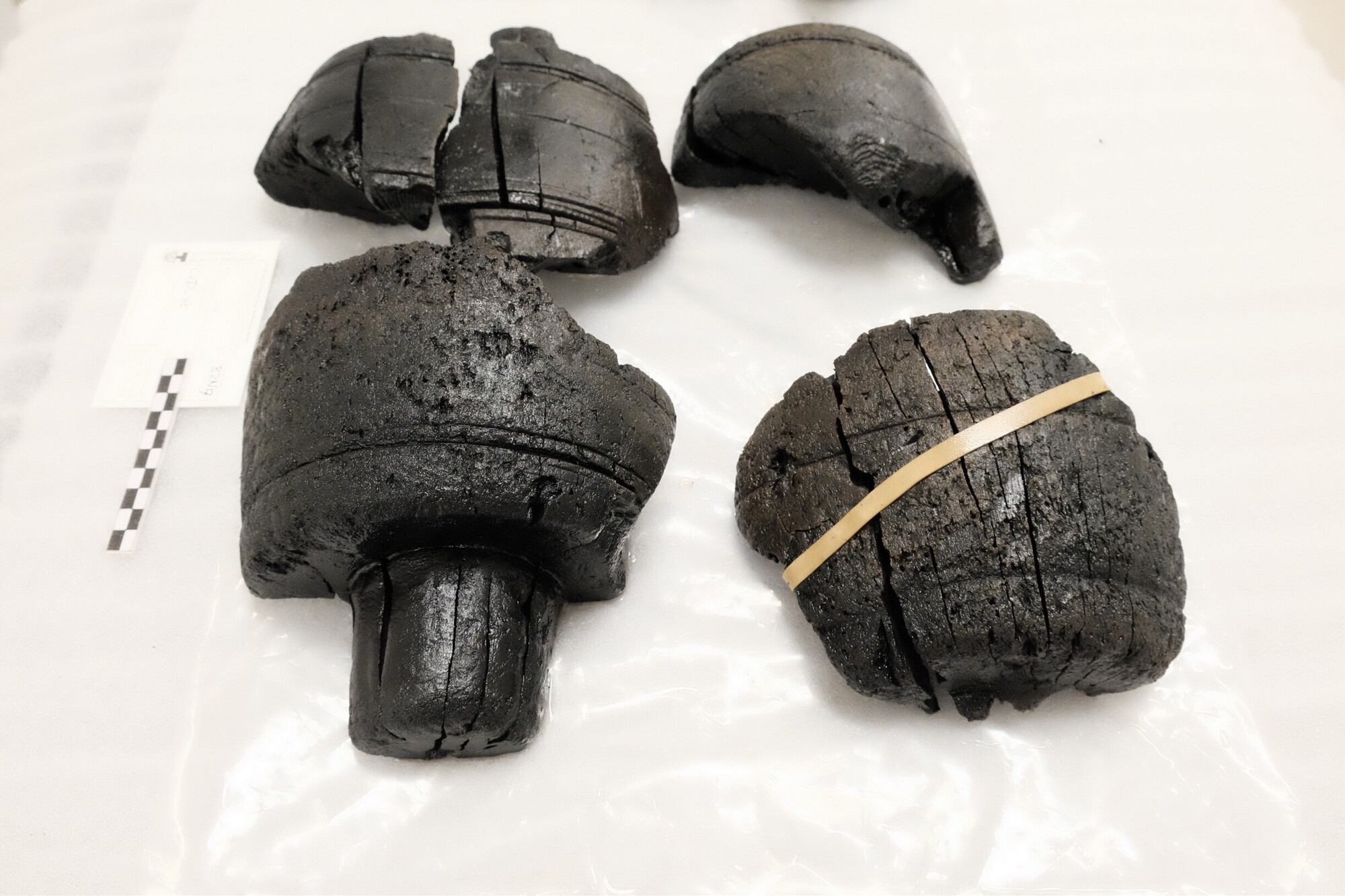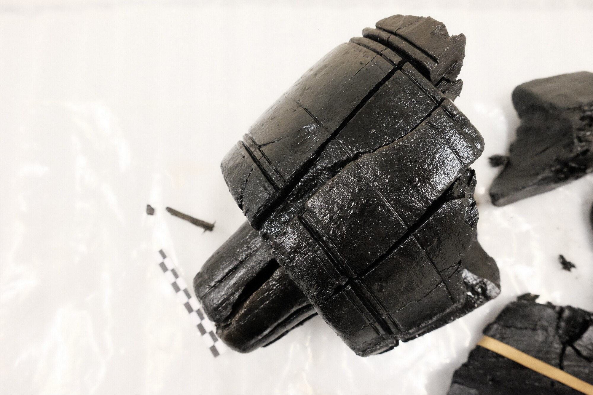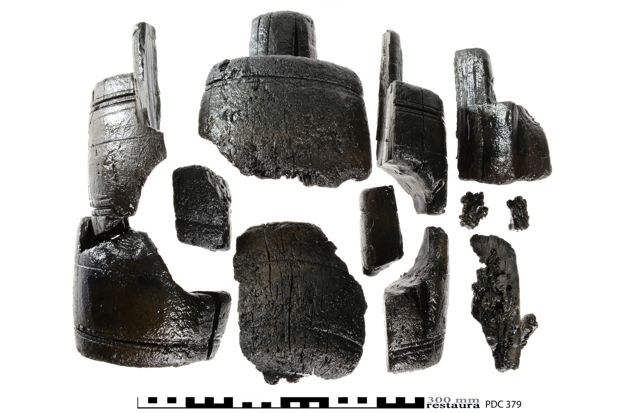 Bril; ronde klos (gerestaureerd uit meerdere onderdelen), waardoorheen de kolderstok stak vanaf bovendeks de stuurplecht, naar benedendeks naar het vooruiteinde van de helmstok op het roer. Deze klos kon draaien in het dek en maakte het bedienen van het roer via de kolderstok en helmstok mogelijk. Deze klos heette de ‘bril’ (Witsen 1670). Houtworm.