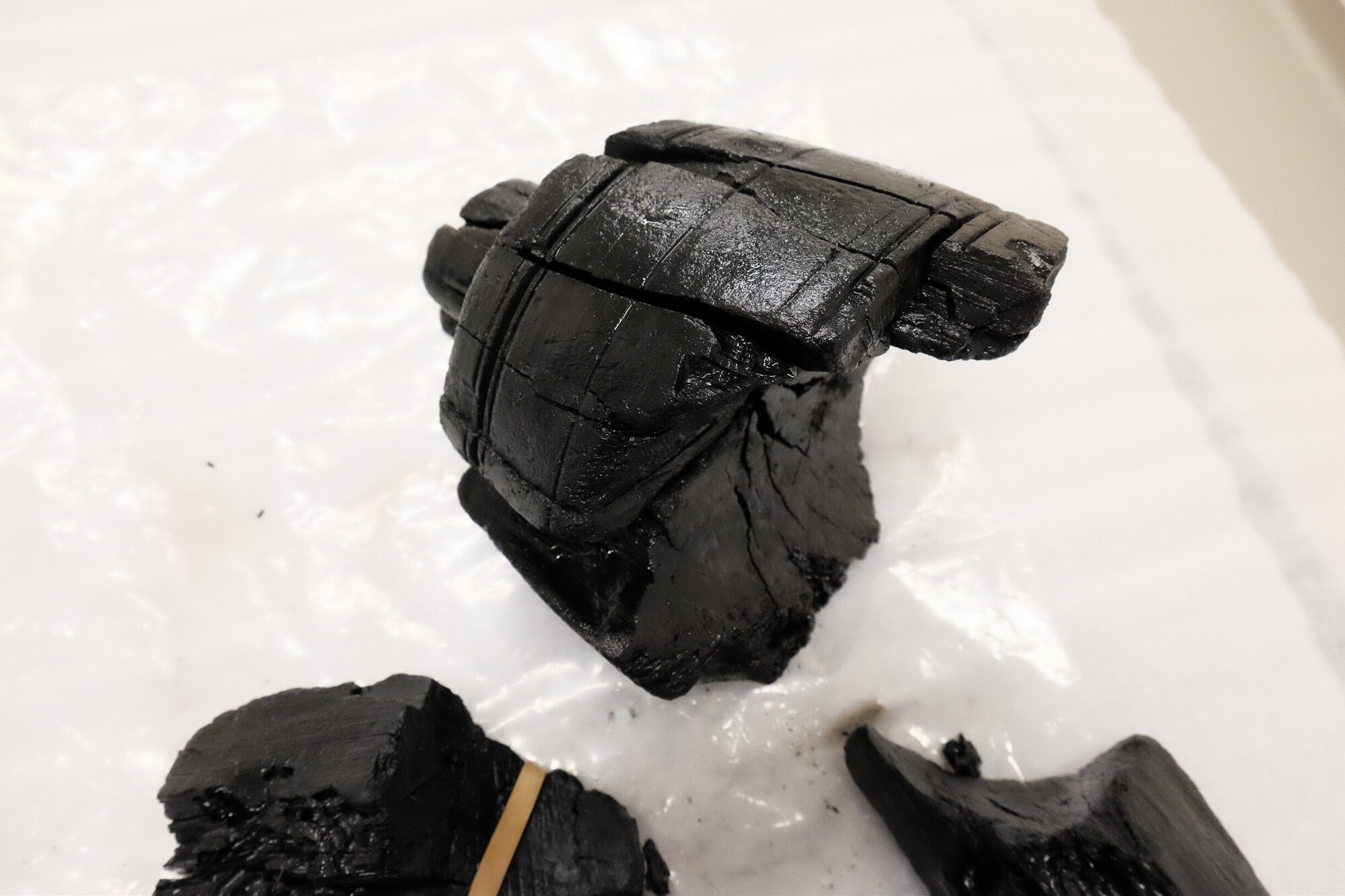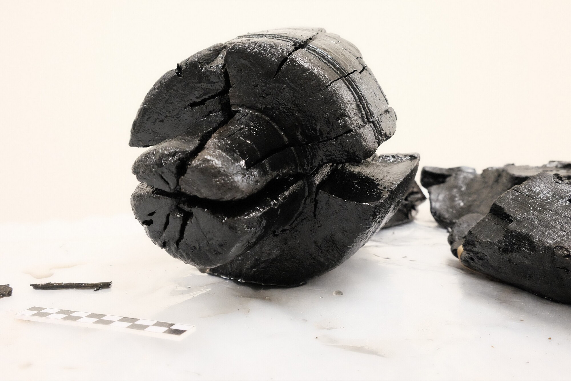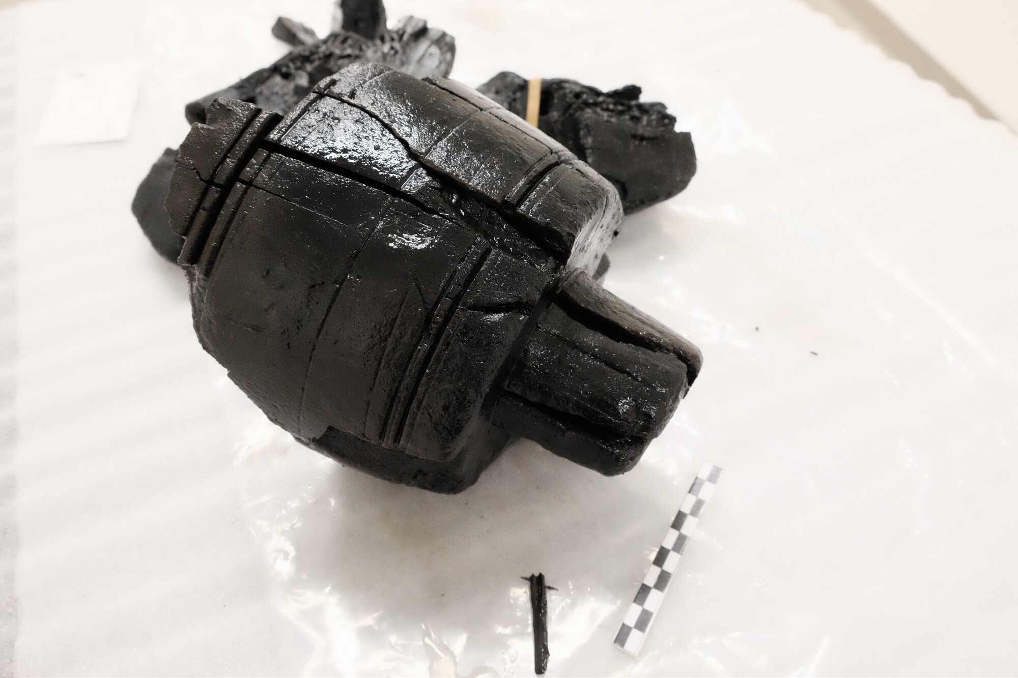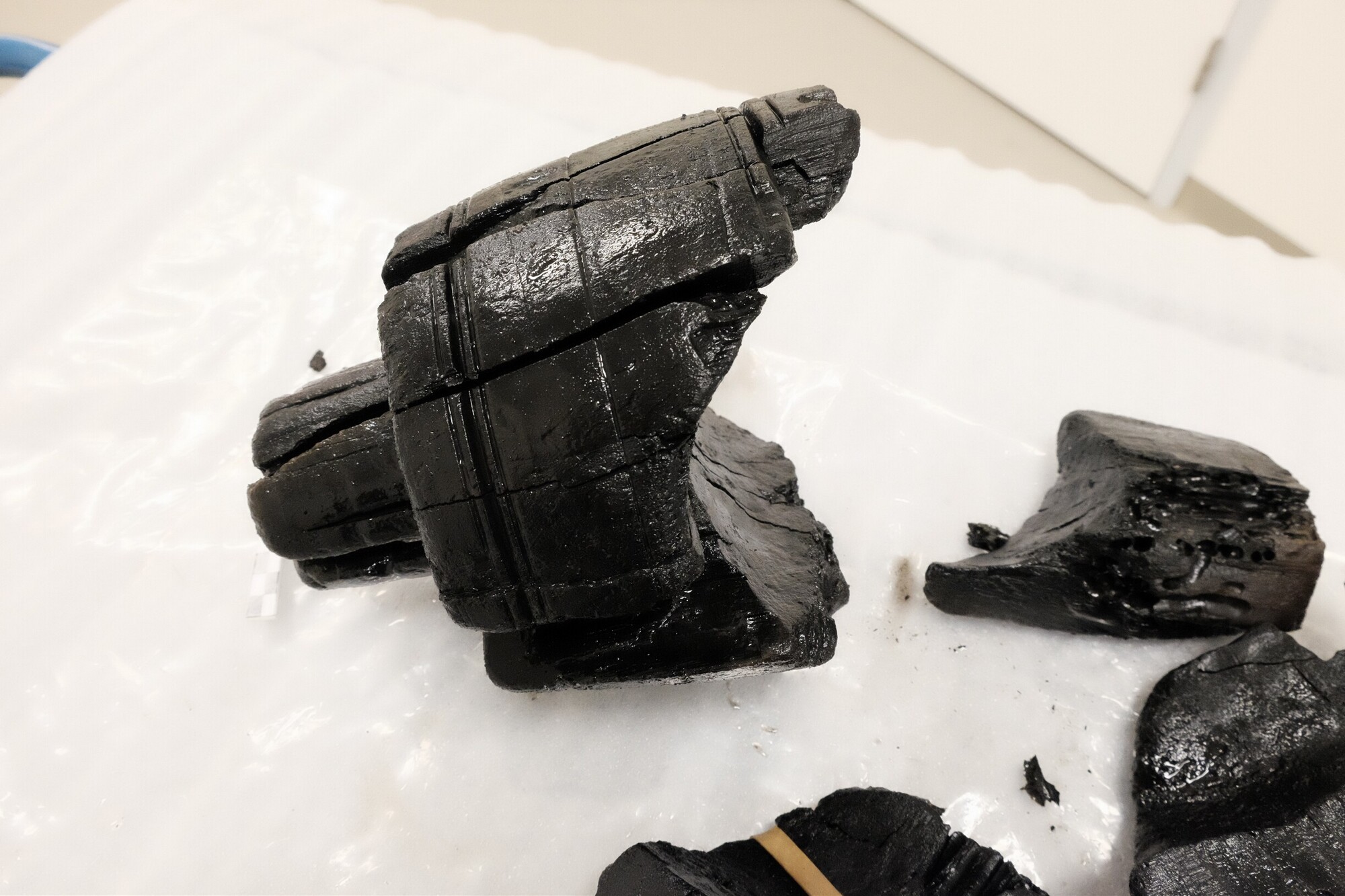 Bril; ronde klos (gerestaureerd uit meerdere onderdelen), waardoorheen de kolderstok stak vanaf bovendeks de stuurplecht, naar benedendeks naar het vooruiteinde van de helmstok op het roer. Deze klos kon draaien in het dek en maakte het bedienen van het roer via de kolderstok en helmstok mogelijk. Deze klos heette de ‘bril’ (Witsen 1670). Houtworm.